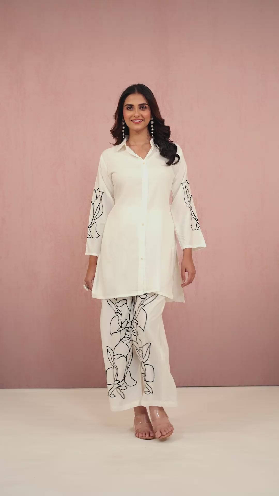 The White Embroidery Rayon Coord Set by Shreyshree combines breathable rayon fabric with delicate white embroidery, creating an elegant and comfortable ensemble. This coordinated set offers a smooth drape and refined detailing, ideal for both casual outings and semi-formal occasions. Expertly crafted, it reflects a harmonious blend of traditional artistry and contemporary style.