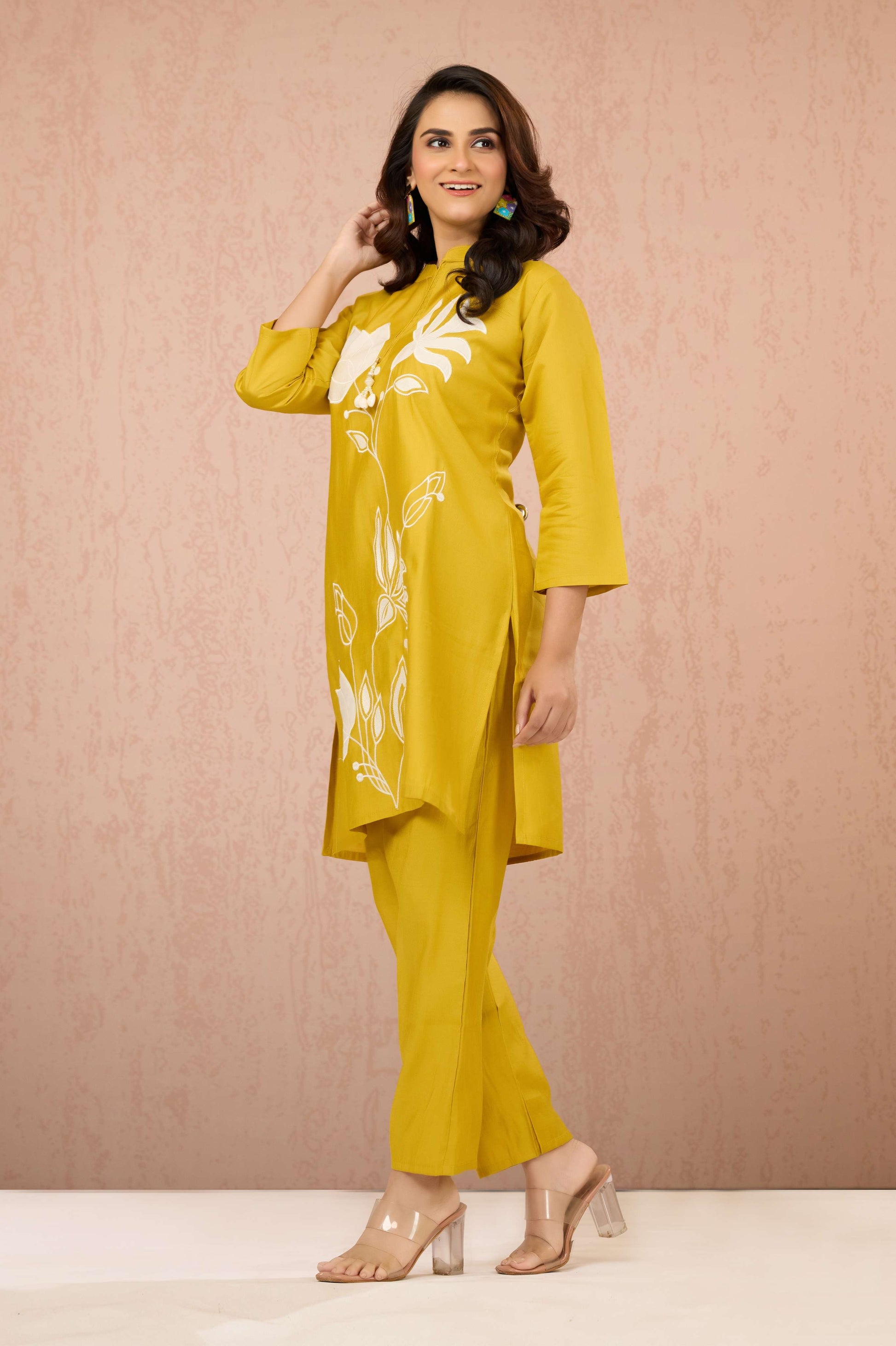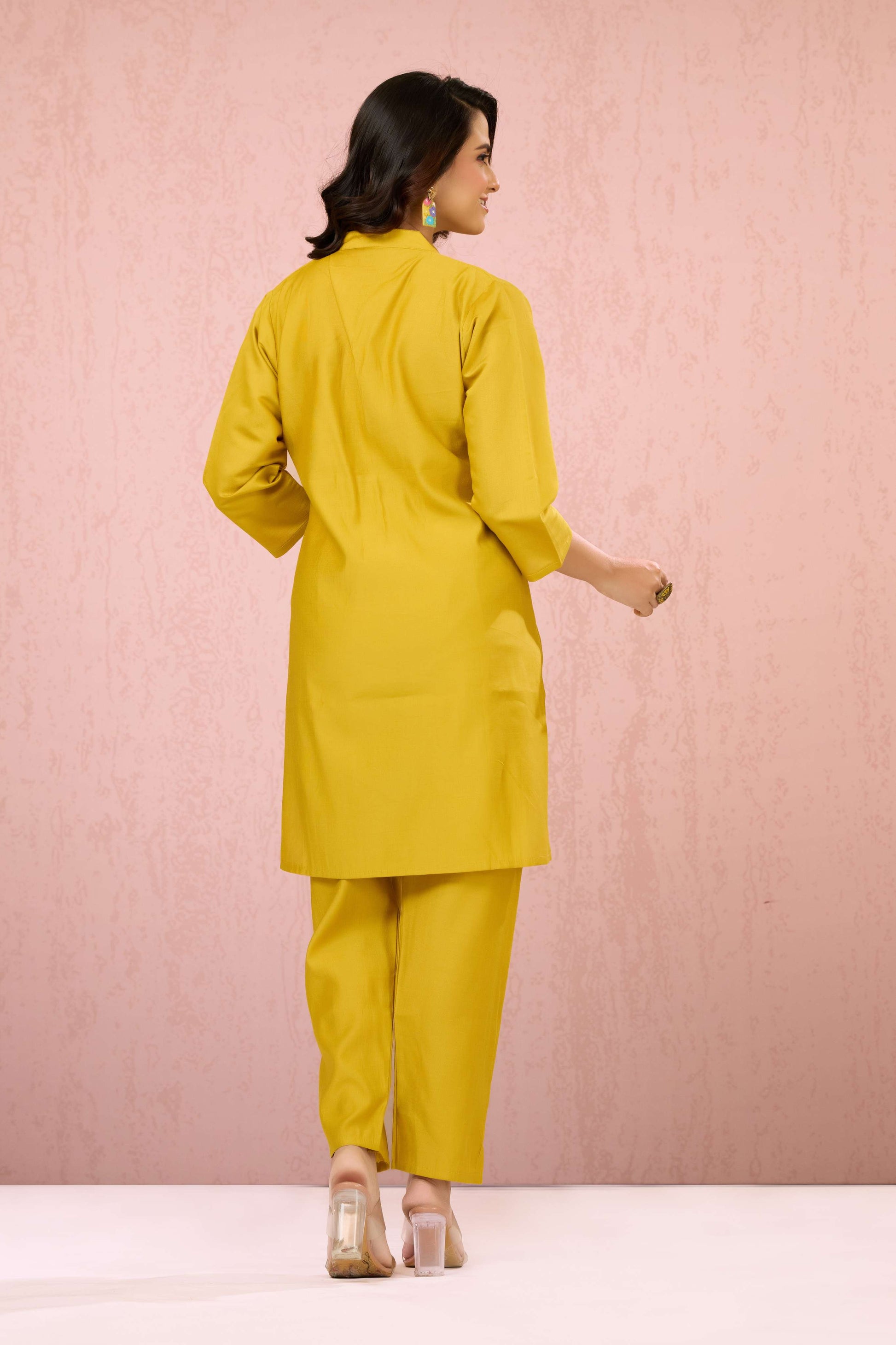 Yellow Embroidery Rayon Coord Set 1013-10057