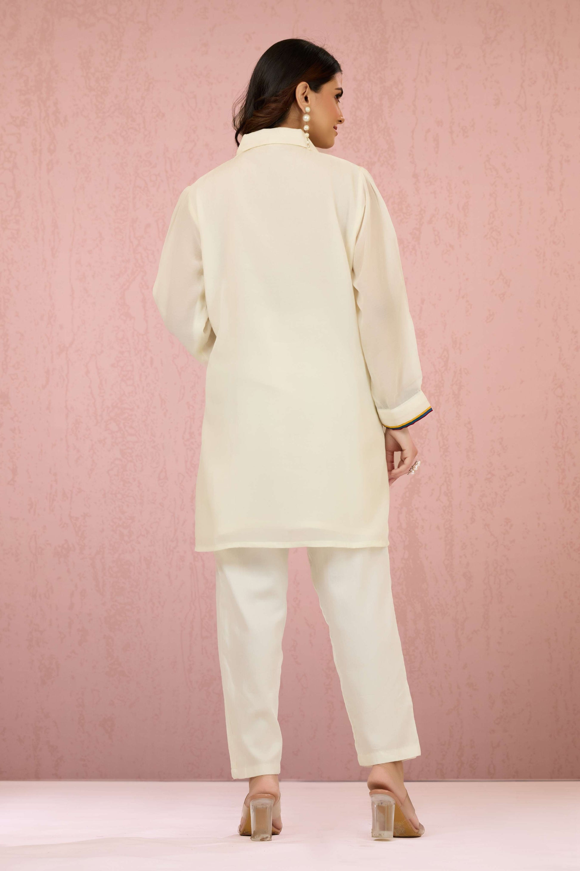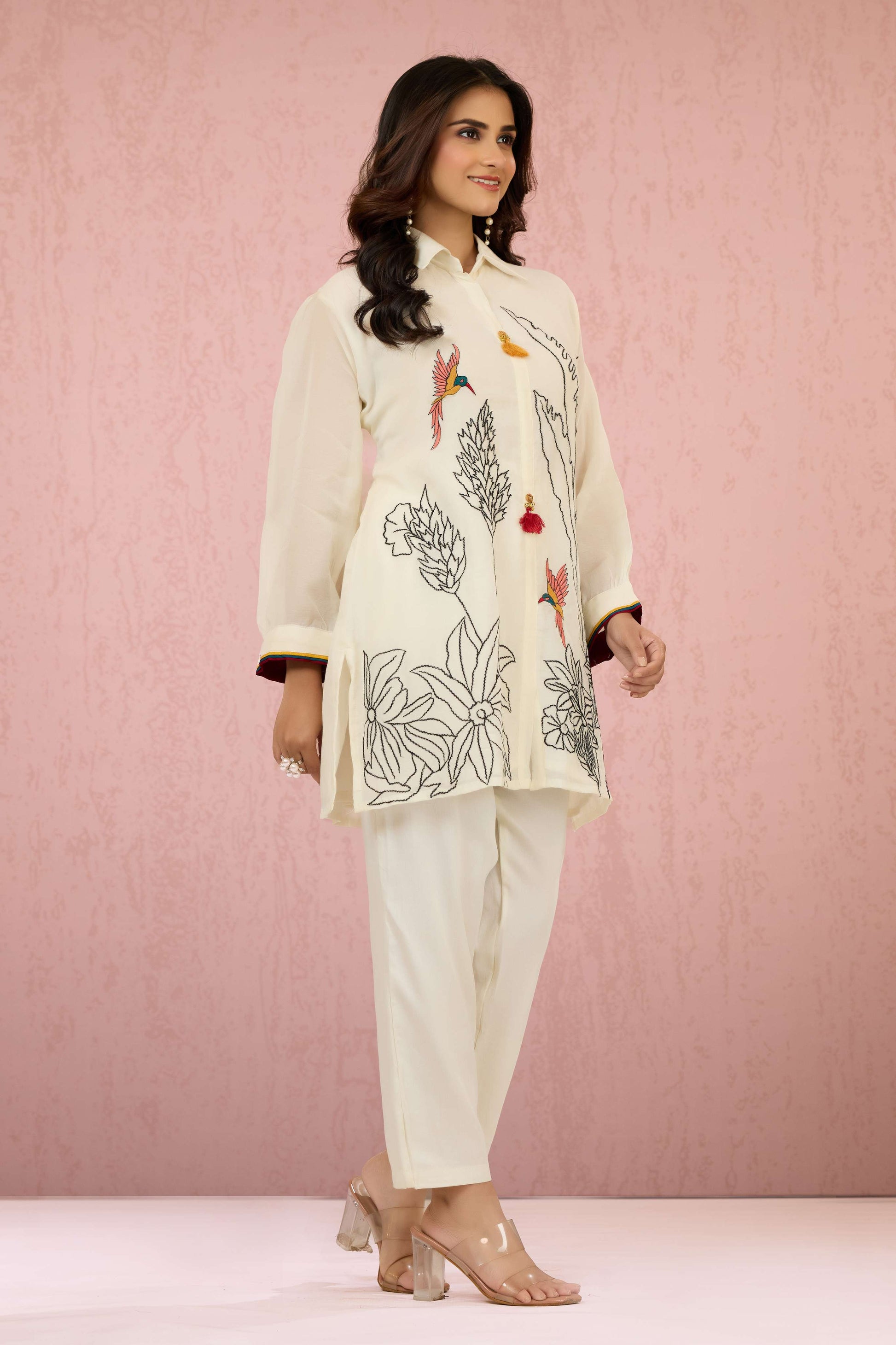 White Embroidery Mul Chanderi Coord Set 1014-10043