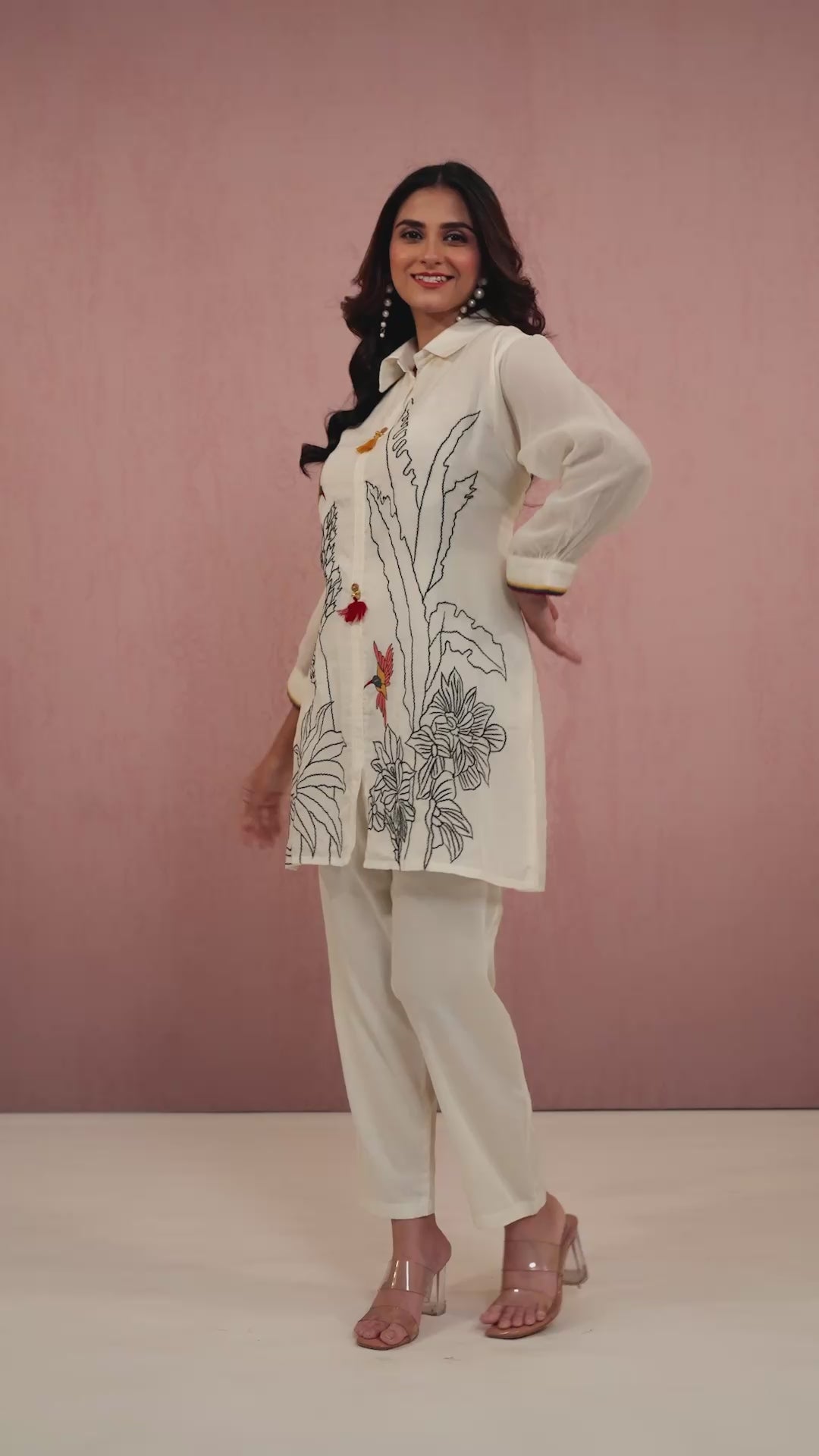 The White Embroidery Mul Chanderi Coord Set by Shreyshree showcases the lightweight elegance of mul chanderi fabric enhanced with intricate white embroidery. This coordinated ensemble offers a delicate sheen and breathable comfort, making it ideal for formal events and daytime occasions. Expertly crafted, it balances traditional craftsmanship with modern sophistication for a timeless, graceful appearance.