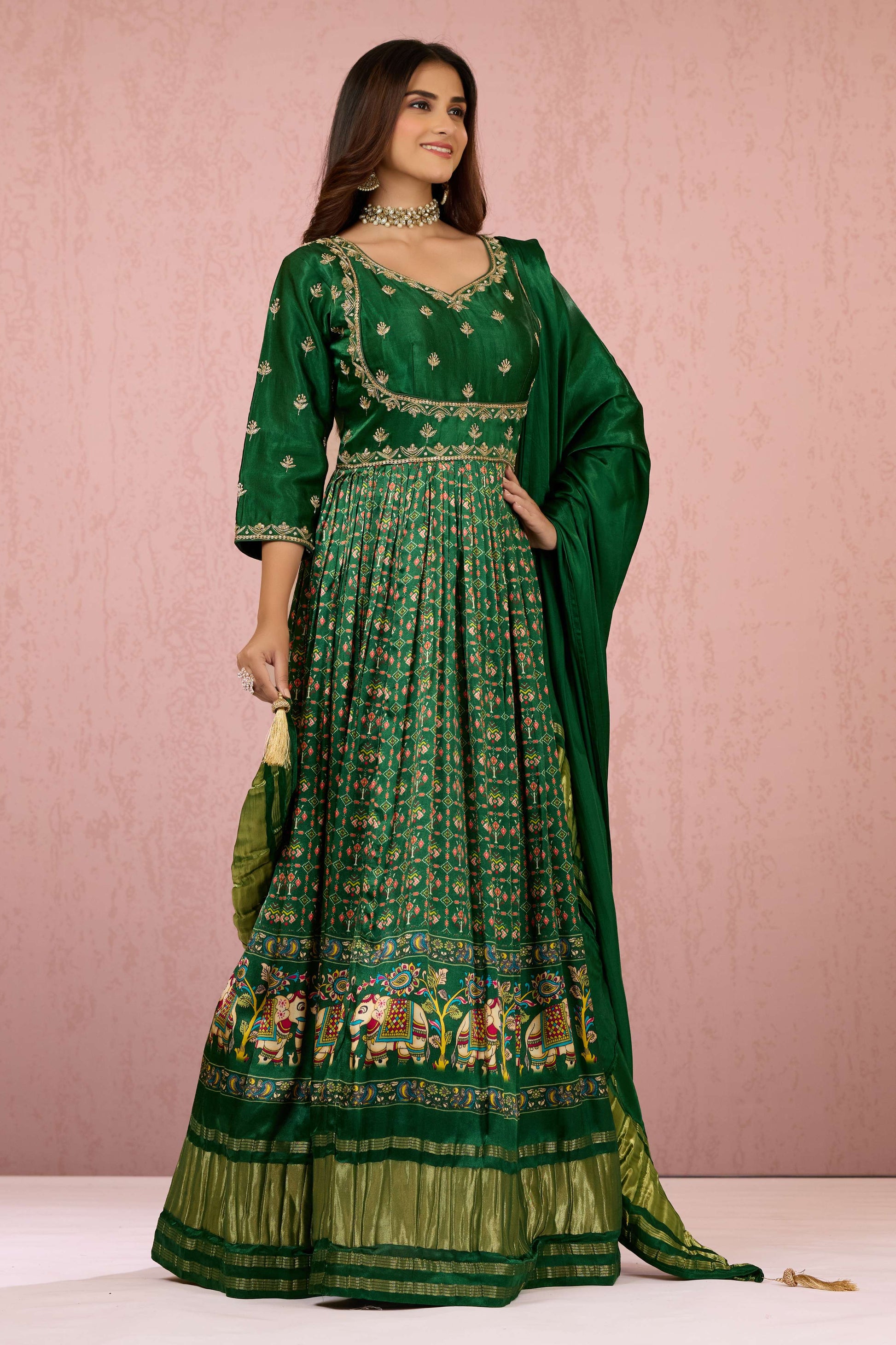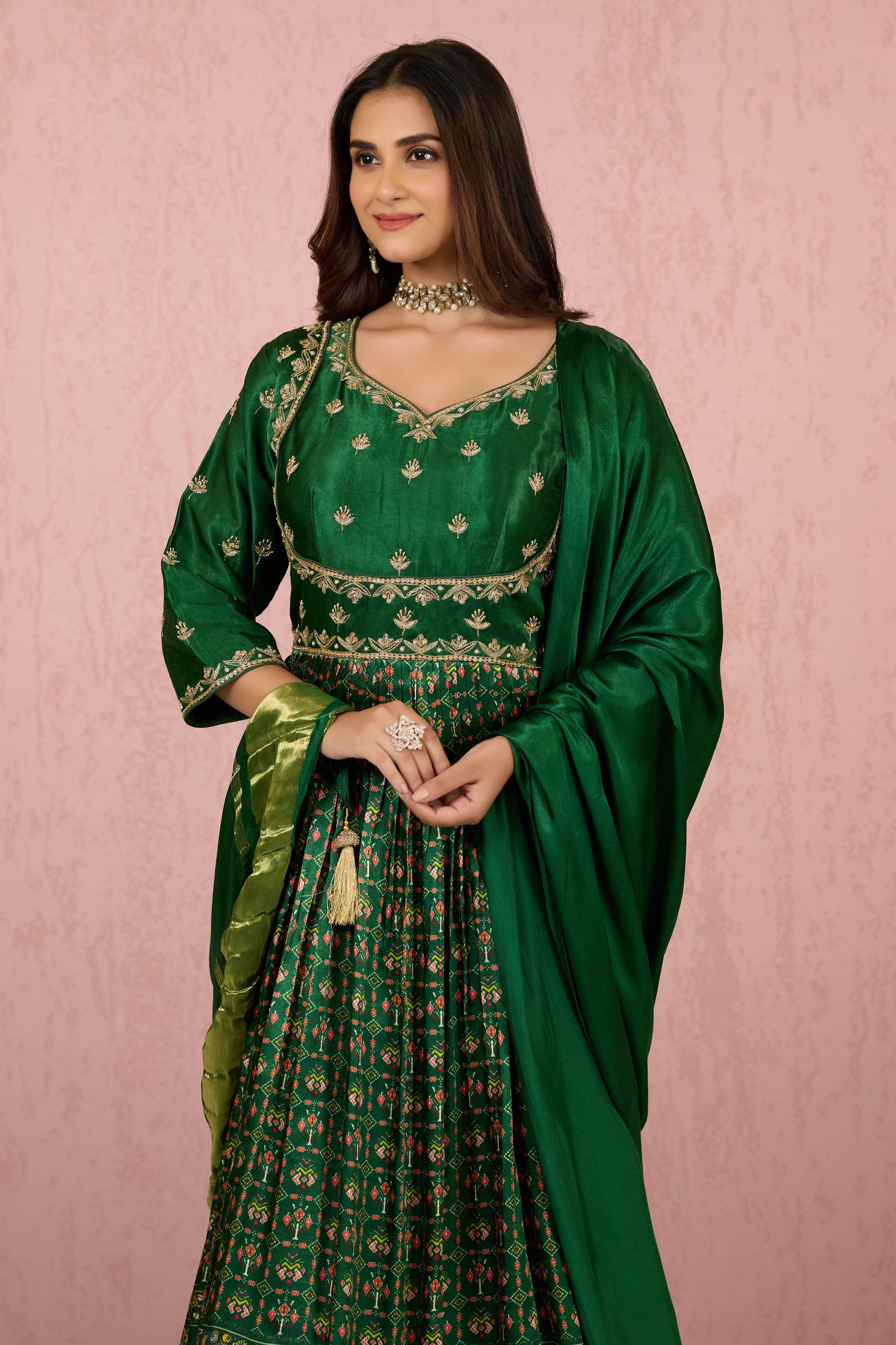 Crafted from soft, breathable modal fabric, the Green Boolean Work Dress by Shreyshree combines comfort with refined style. Expertly embroidered with intricate Boolean patterns, this dress offers a vibrant green shade that enhances its elegant appeal. Designed for a flattering fit, it provides ease of movement while maintaining a polished look, making it ideal for both formal gatherings and festive occasions.