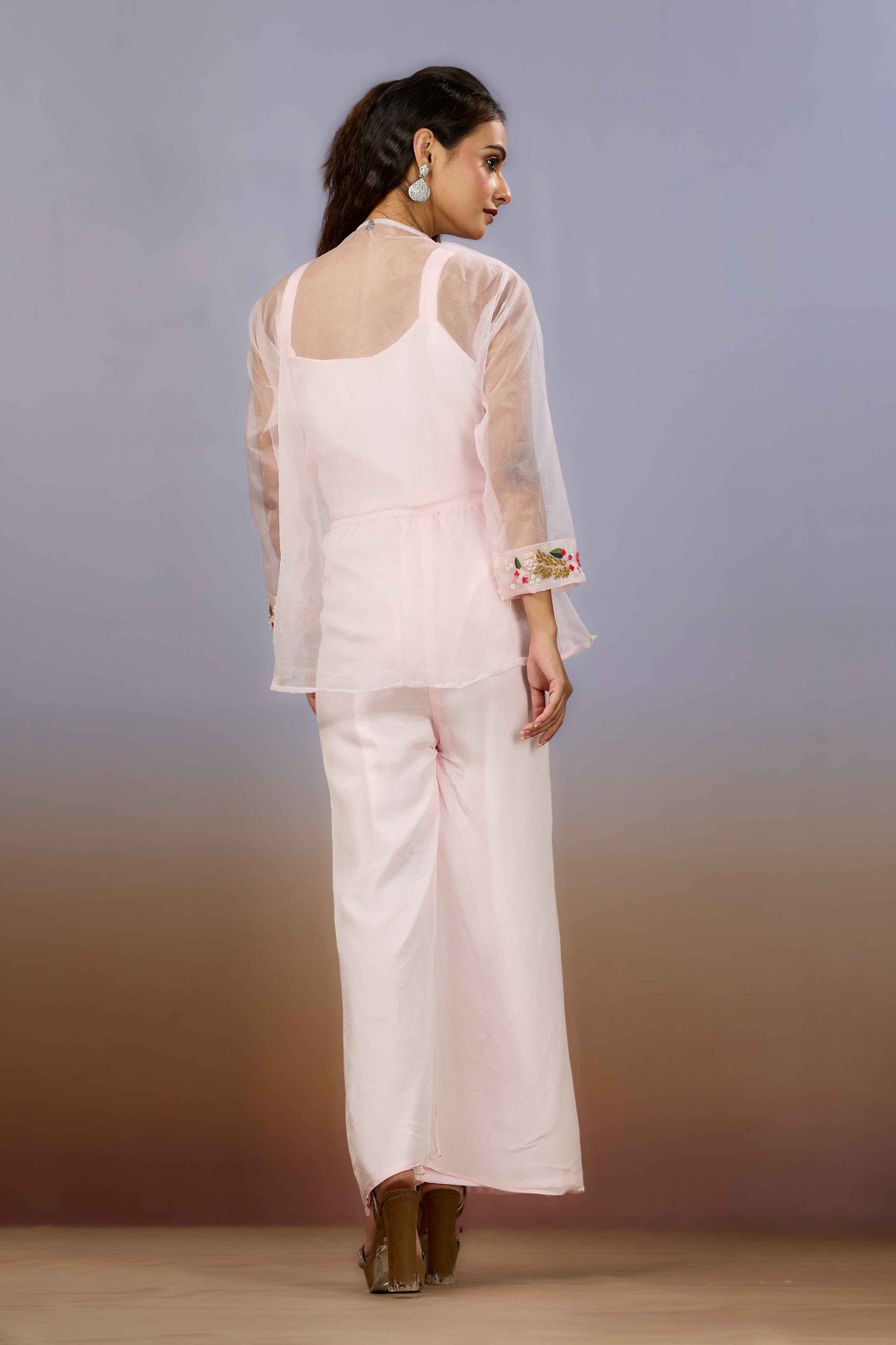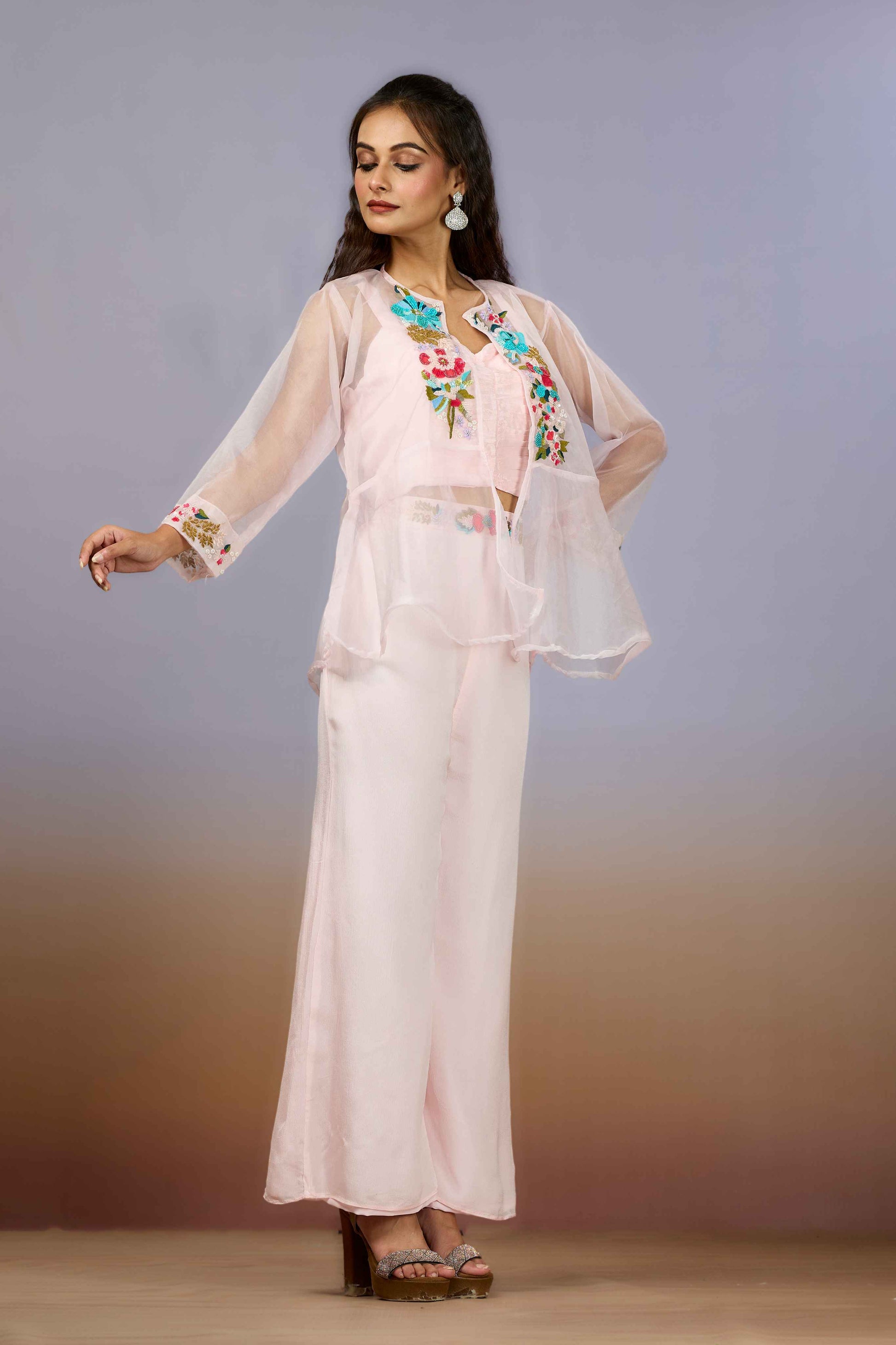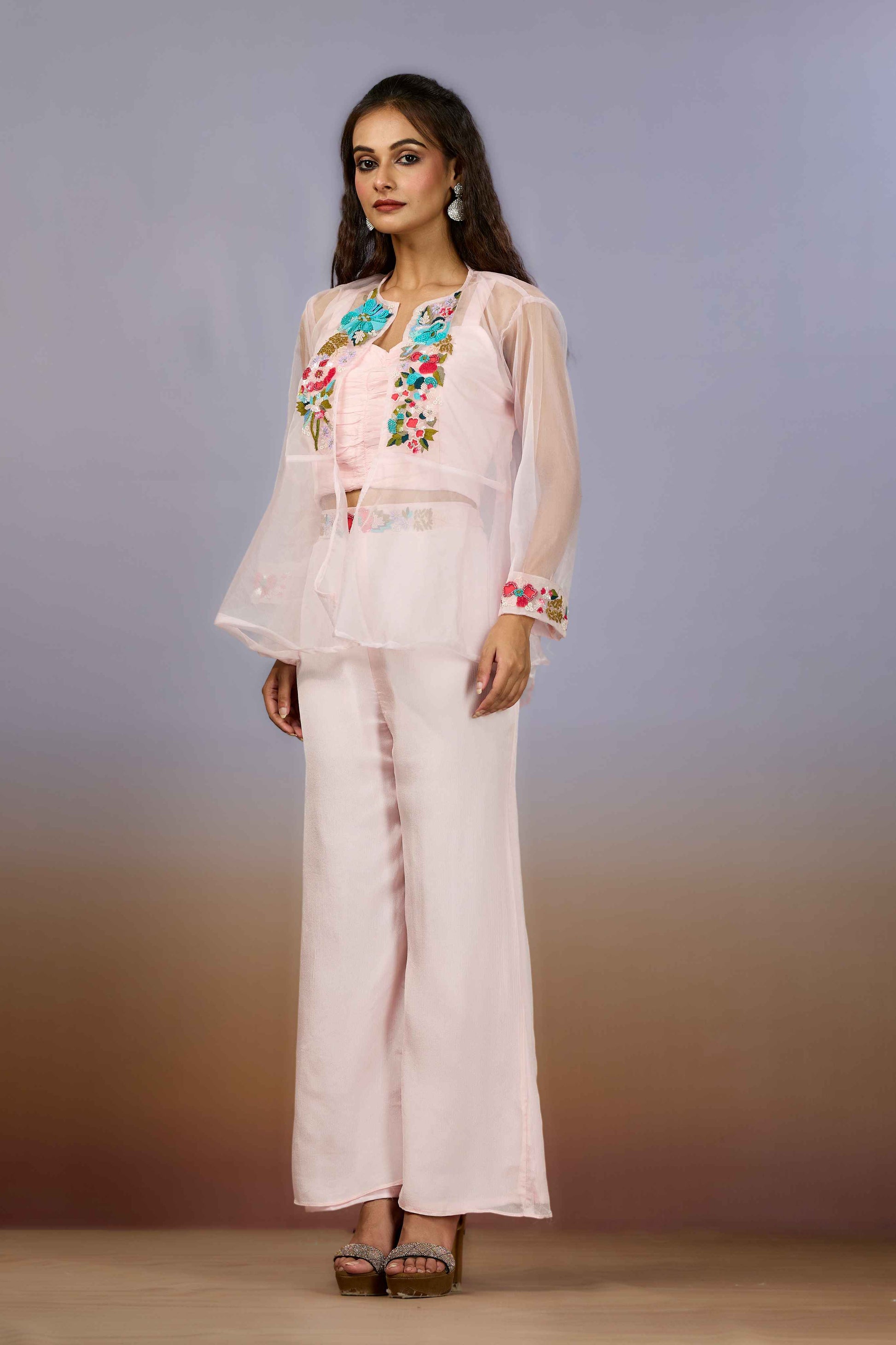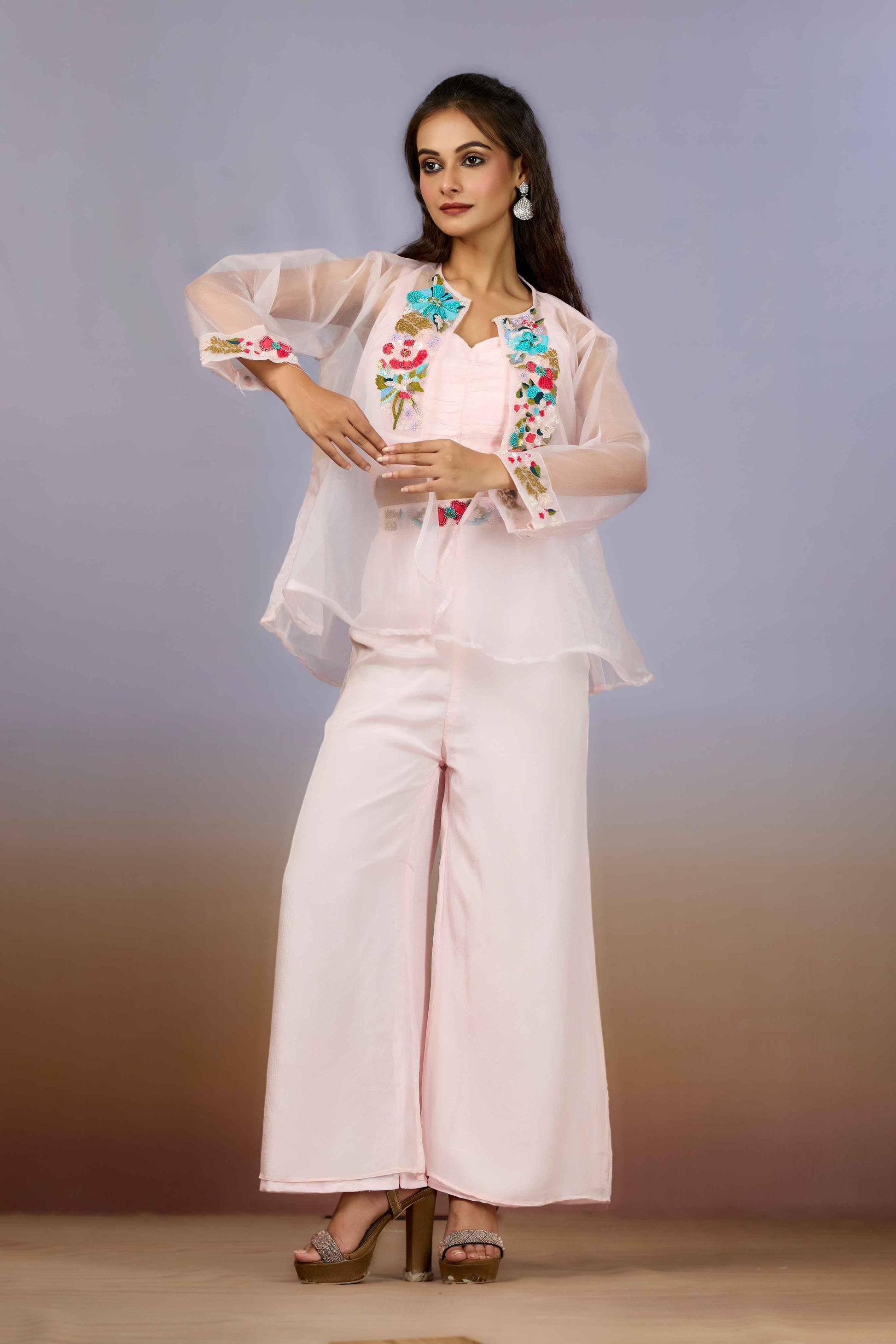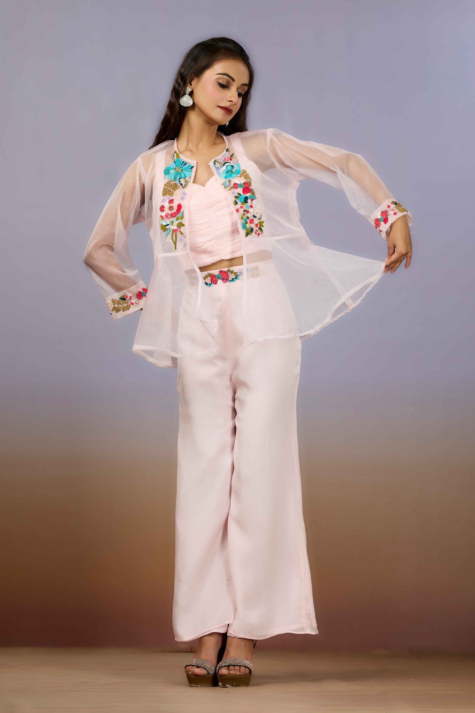 The Pink Embroidery Organza Indo Western by Shreyshree is crafted from delicate organza fabric featuring intricate embroidery work. This expertly designed piece blends traditional craftsmanship with modern silhouettes, offering a graceful and stylish option for formal events and celebrations. Its lightweight texture ensures comfort without compromising elegance.