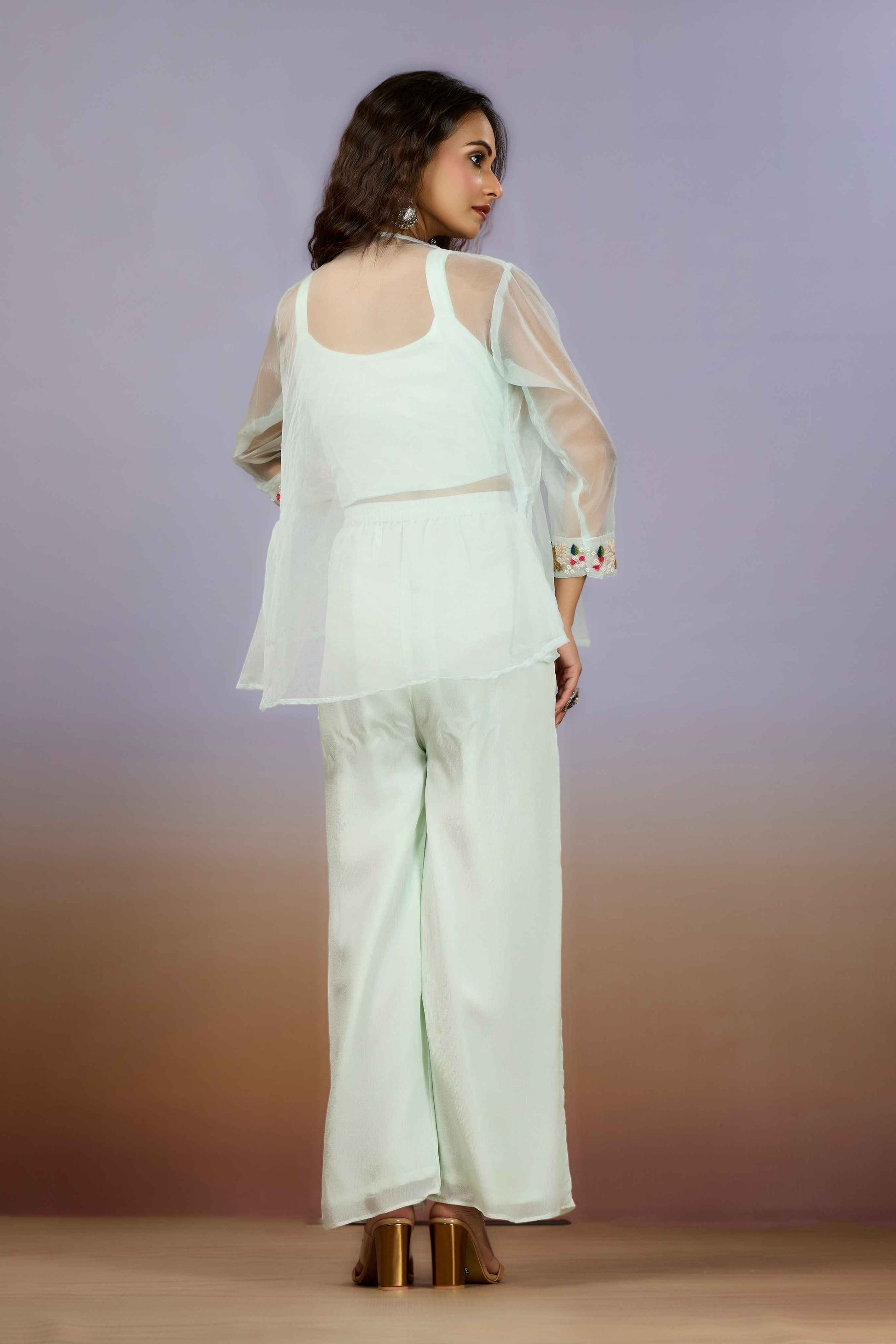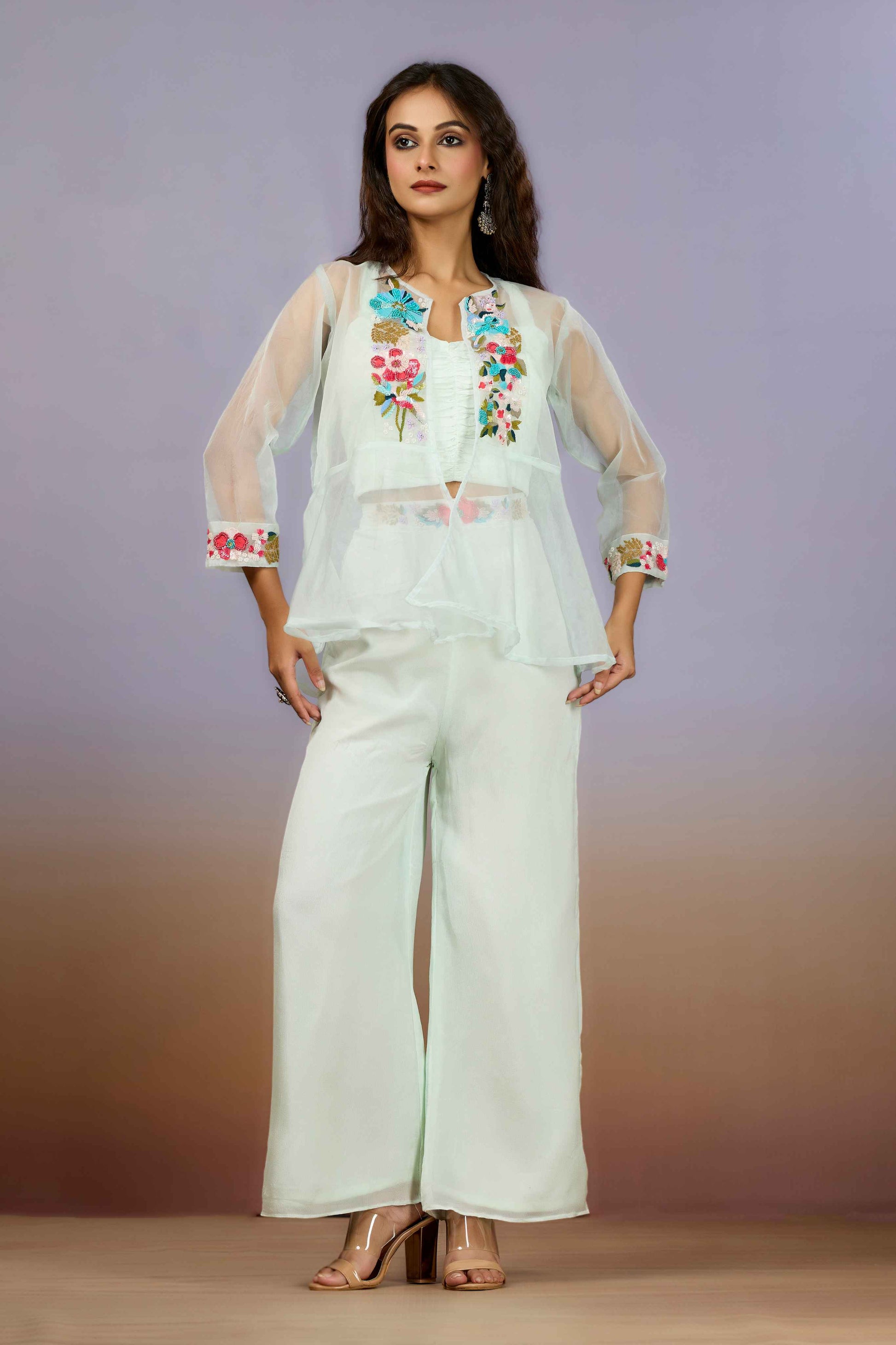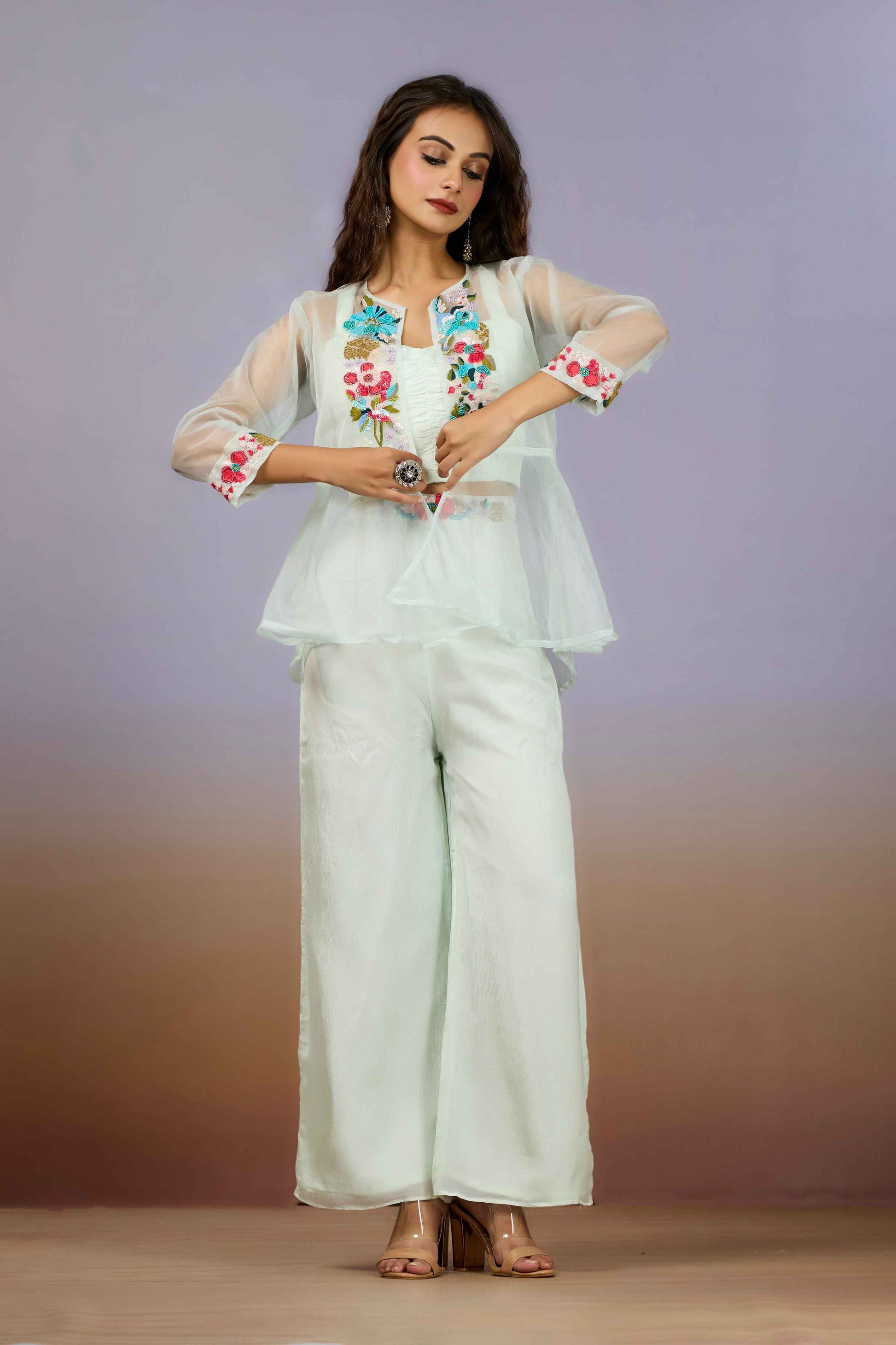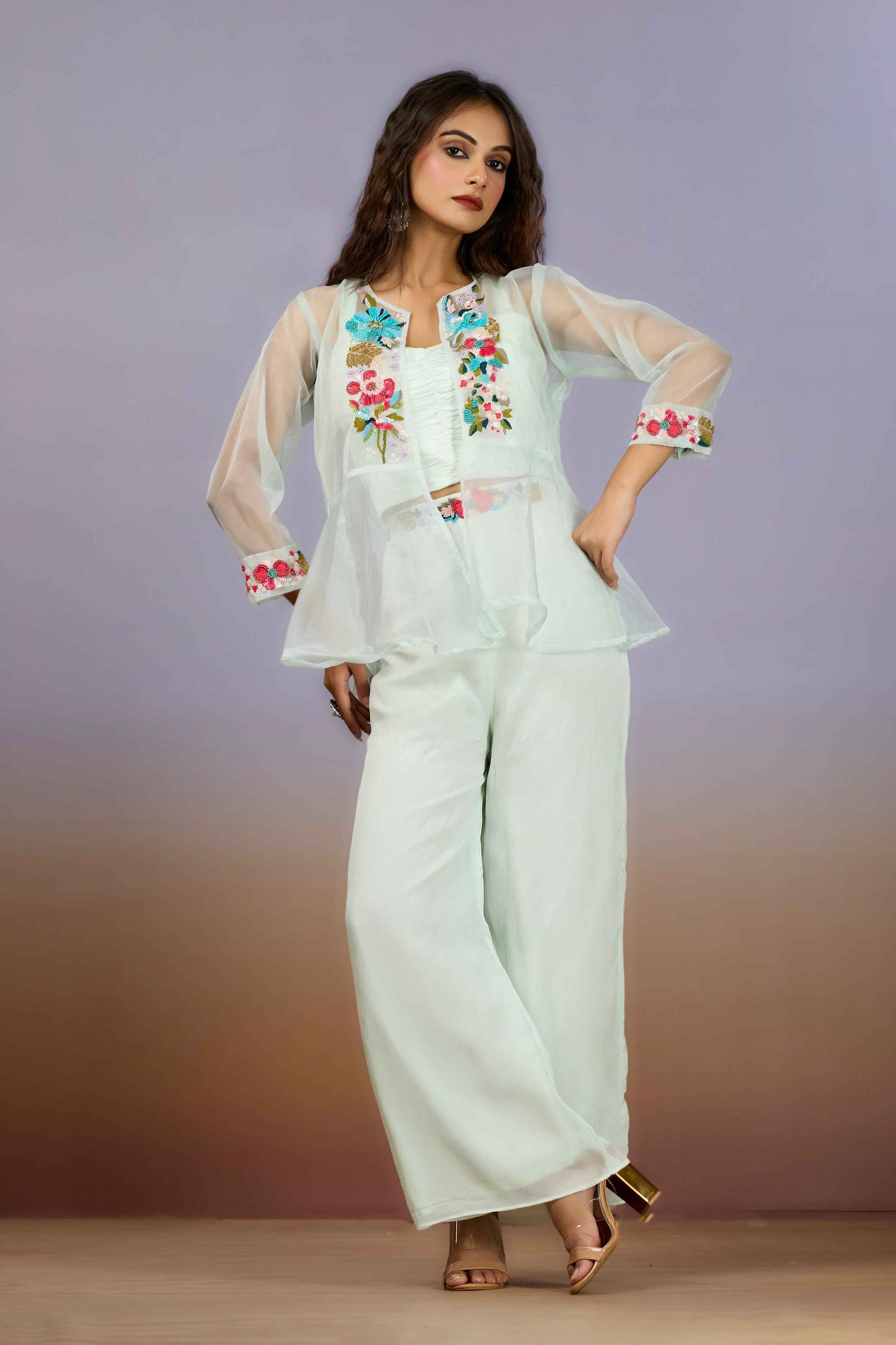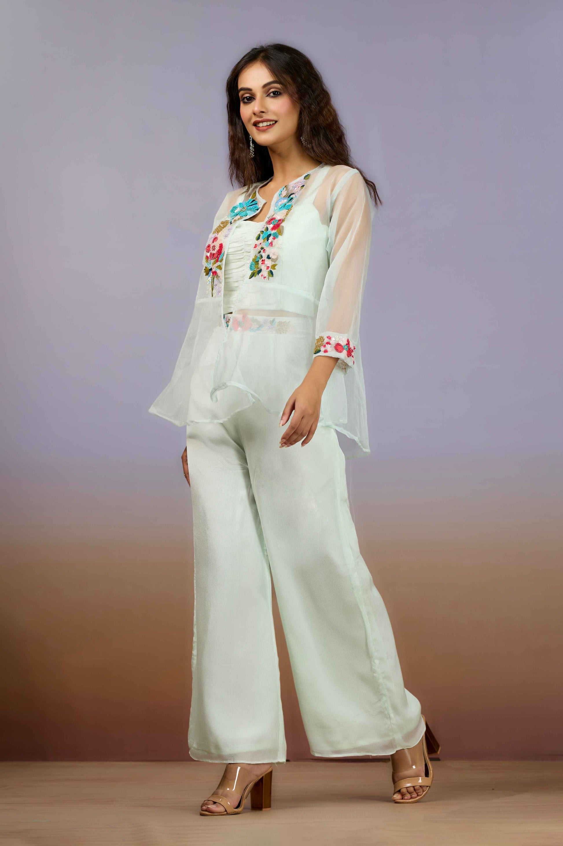 The Pink Embroidery Organza Indo Western by Shreyshree is crafted from delicate organza fabric featuring intricate embroidery work. This expertly designed piece blends traditional craftsmanship with modern silhouettes, offering a graceful and stylish option for formal events and celebrations. Its lightweight texture ensures comfort without compromising elegance.