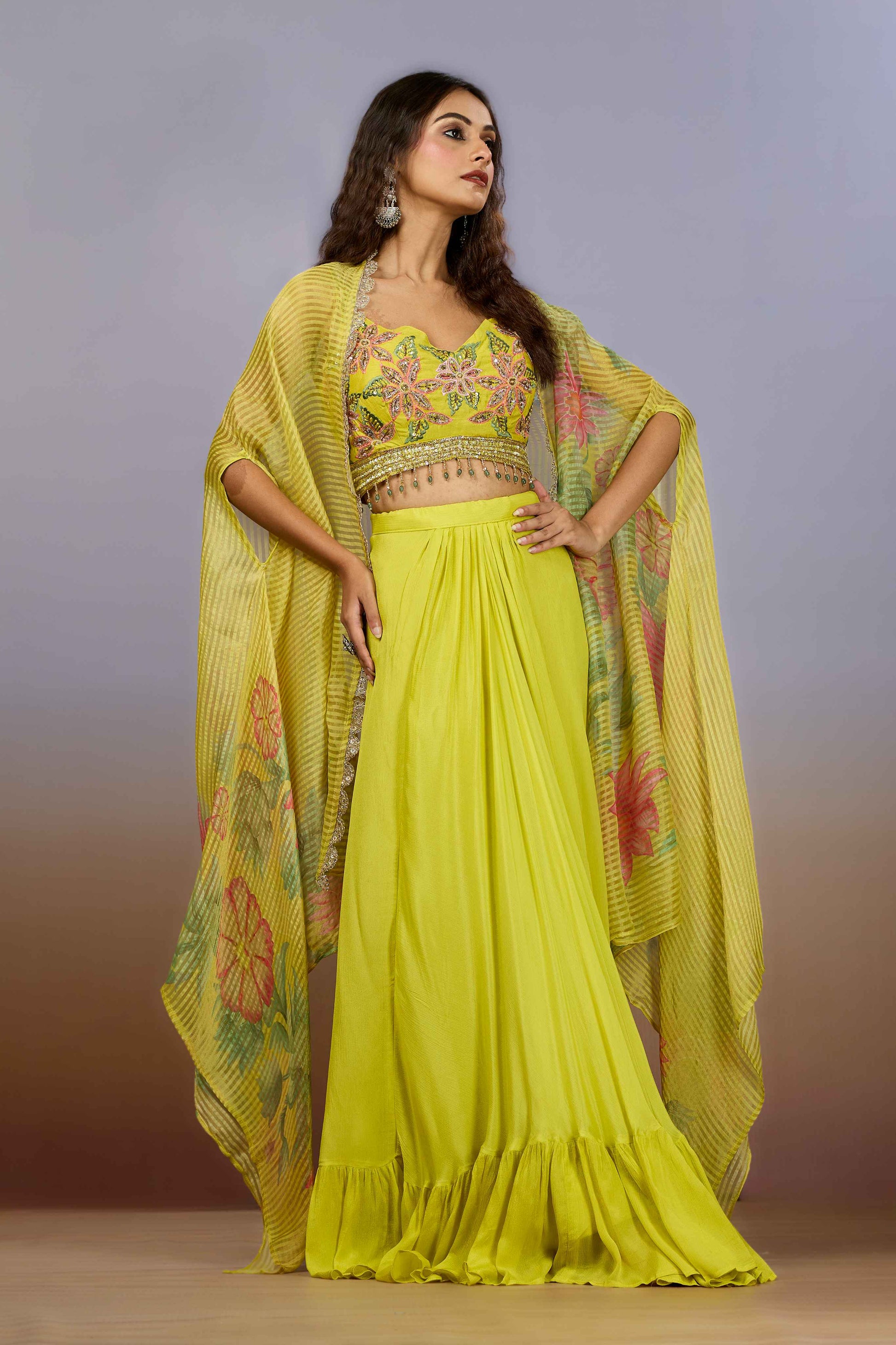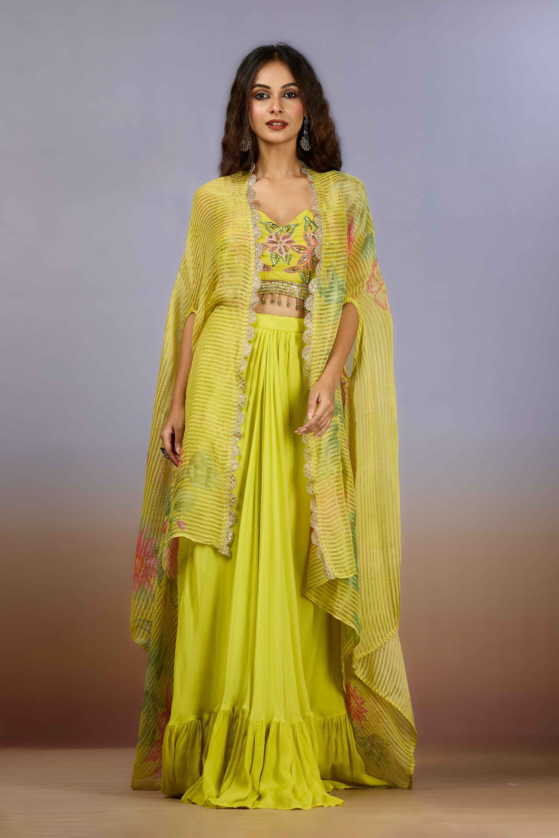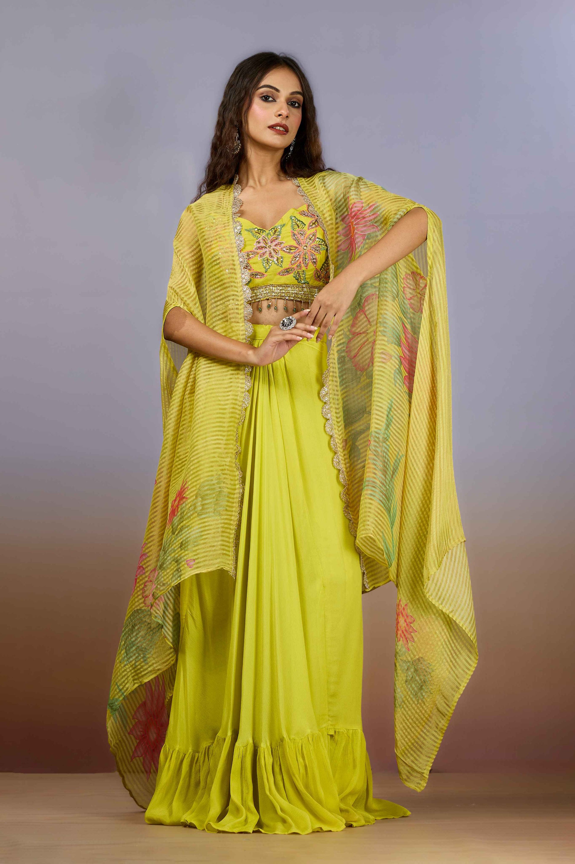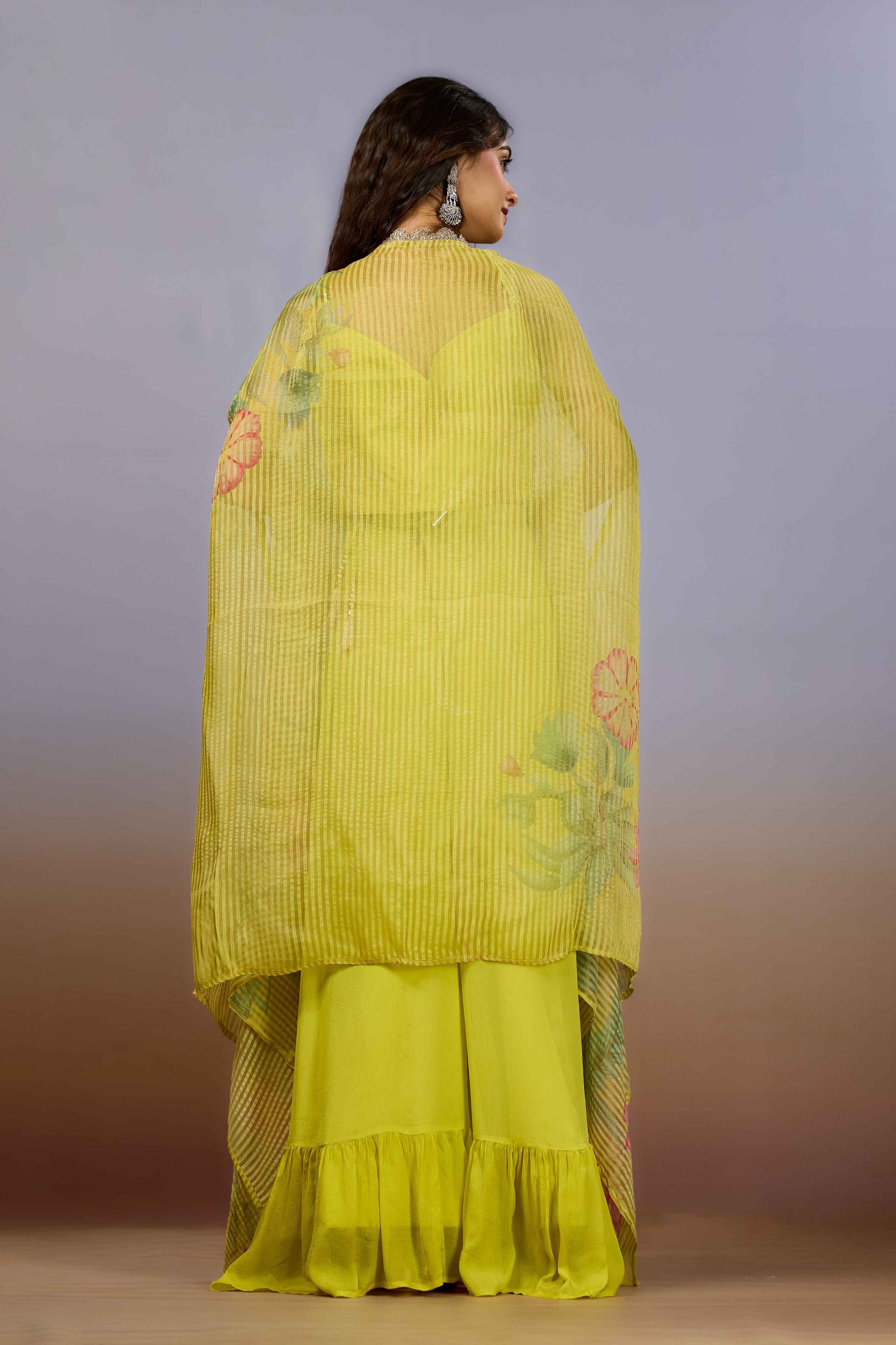 Elevate your ethnic wardrobe with the Yellow Sequins Chinon Indo Western by Shreyshree. Crafted from premium Chinon fabric, this piece features intricate yellow sequin embellishments that add a subtle shimmer and sophistication. Its Indo-Western design perfectly balances traditional motifs with modern tailoring, making it ideal for festive occasions and upscale events. The lightweight fabric ensures comfortable wear while maintaining an elegant silhouette. Ideal for those who appreciate refined craftsmanship and contemporary ethnic fashion.
