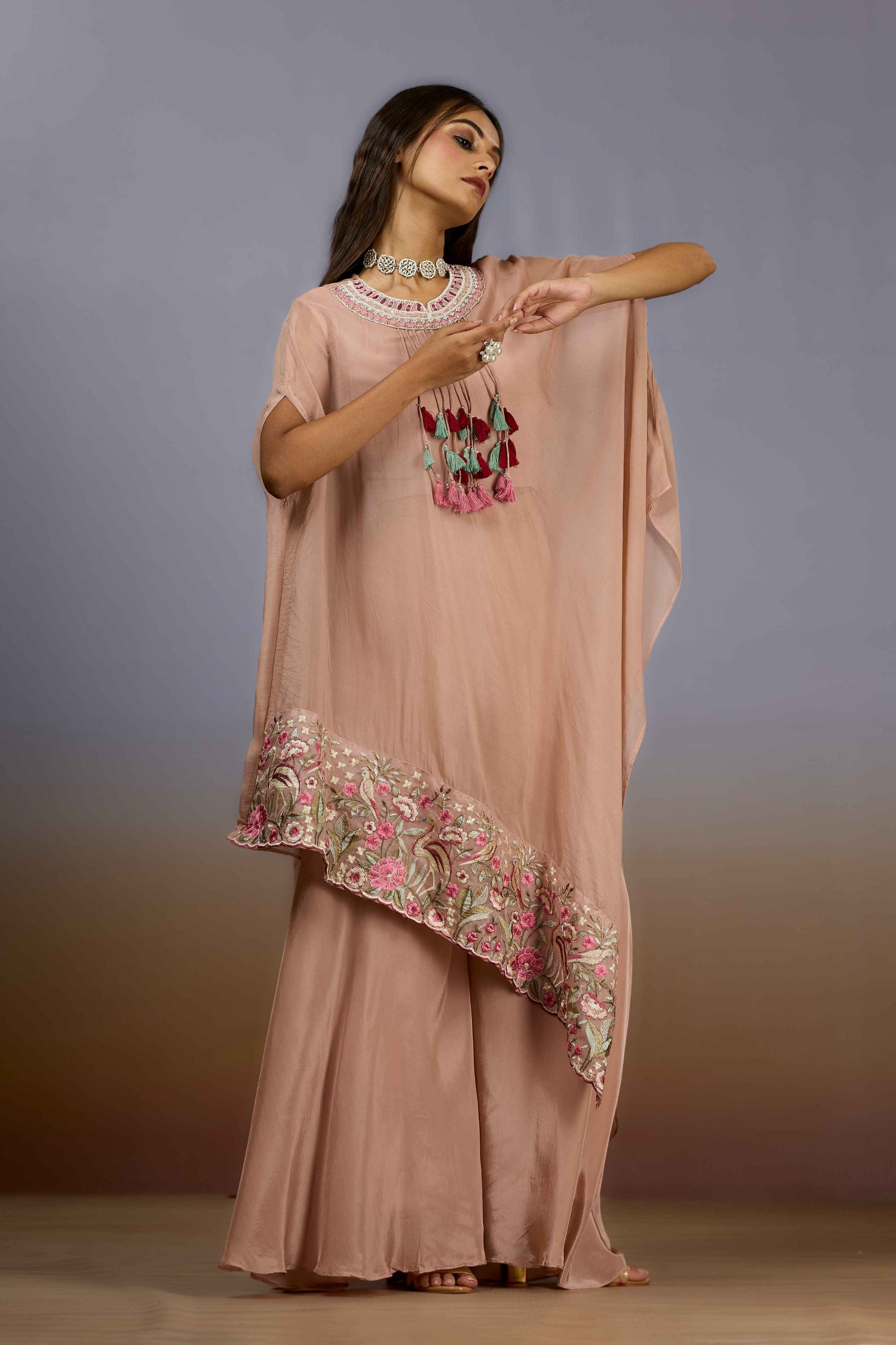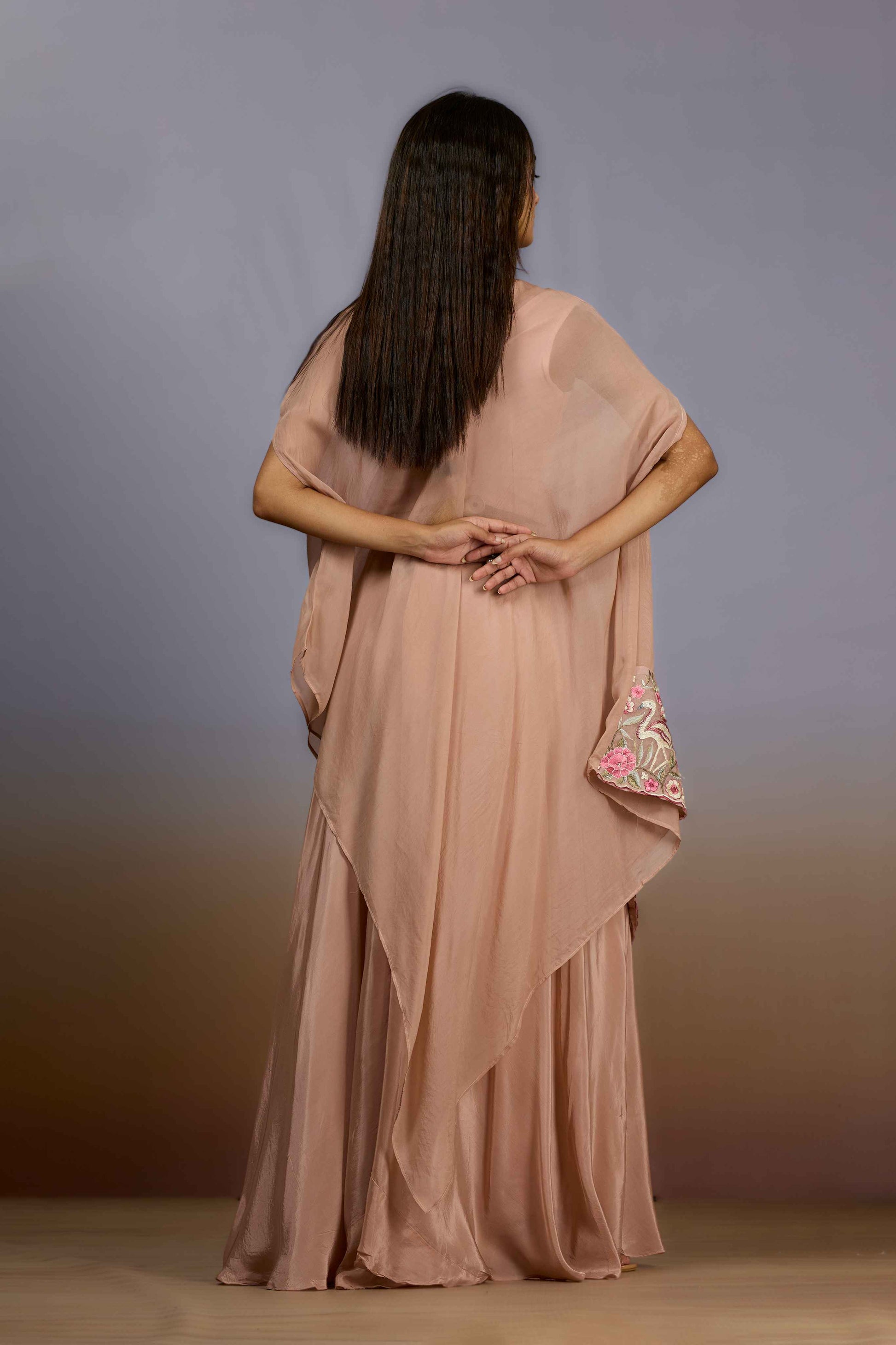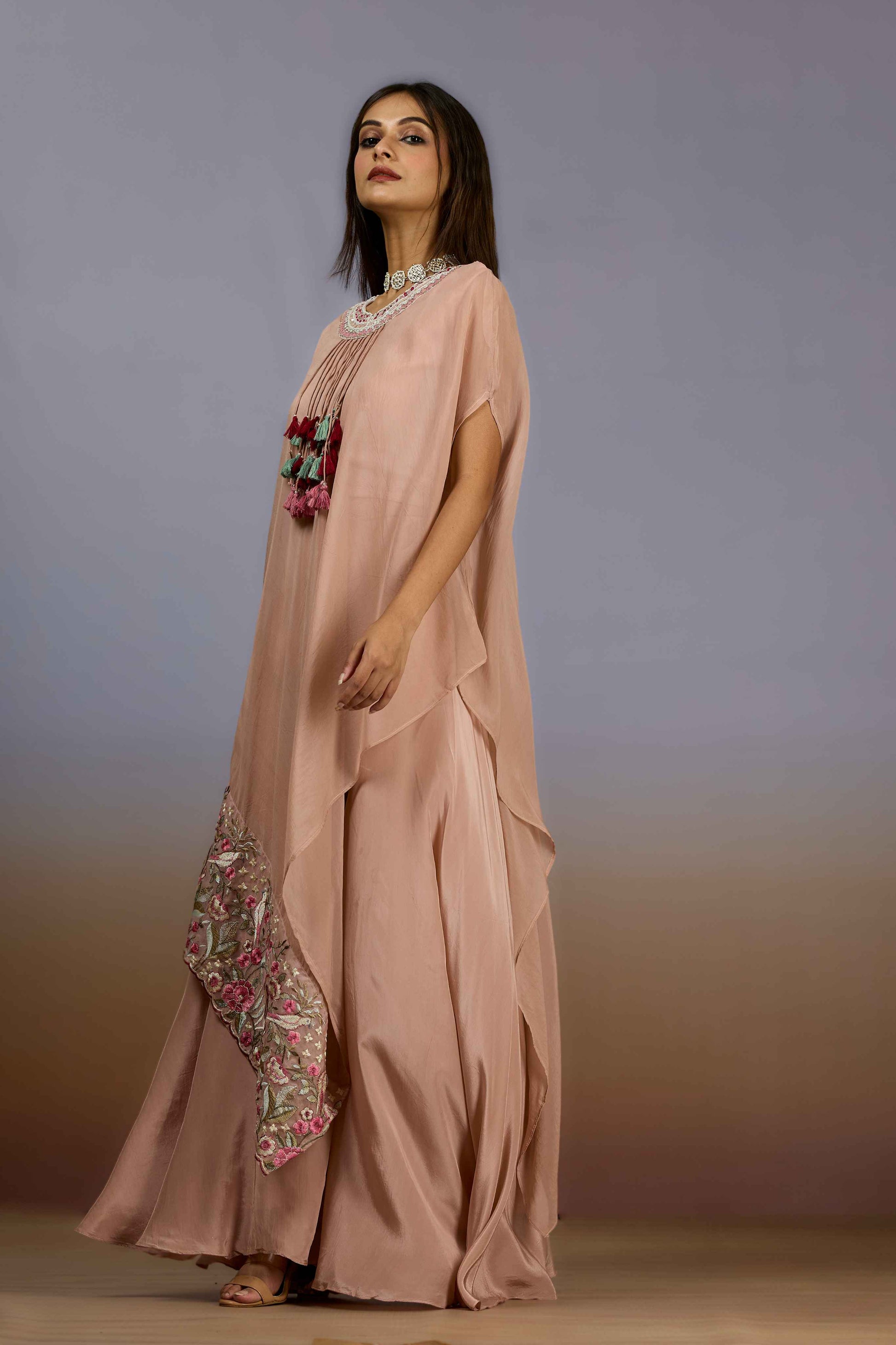 Peach Pearlwork Crepe Indo Western 1017-10091