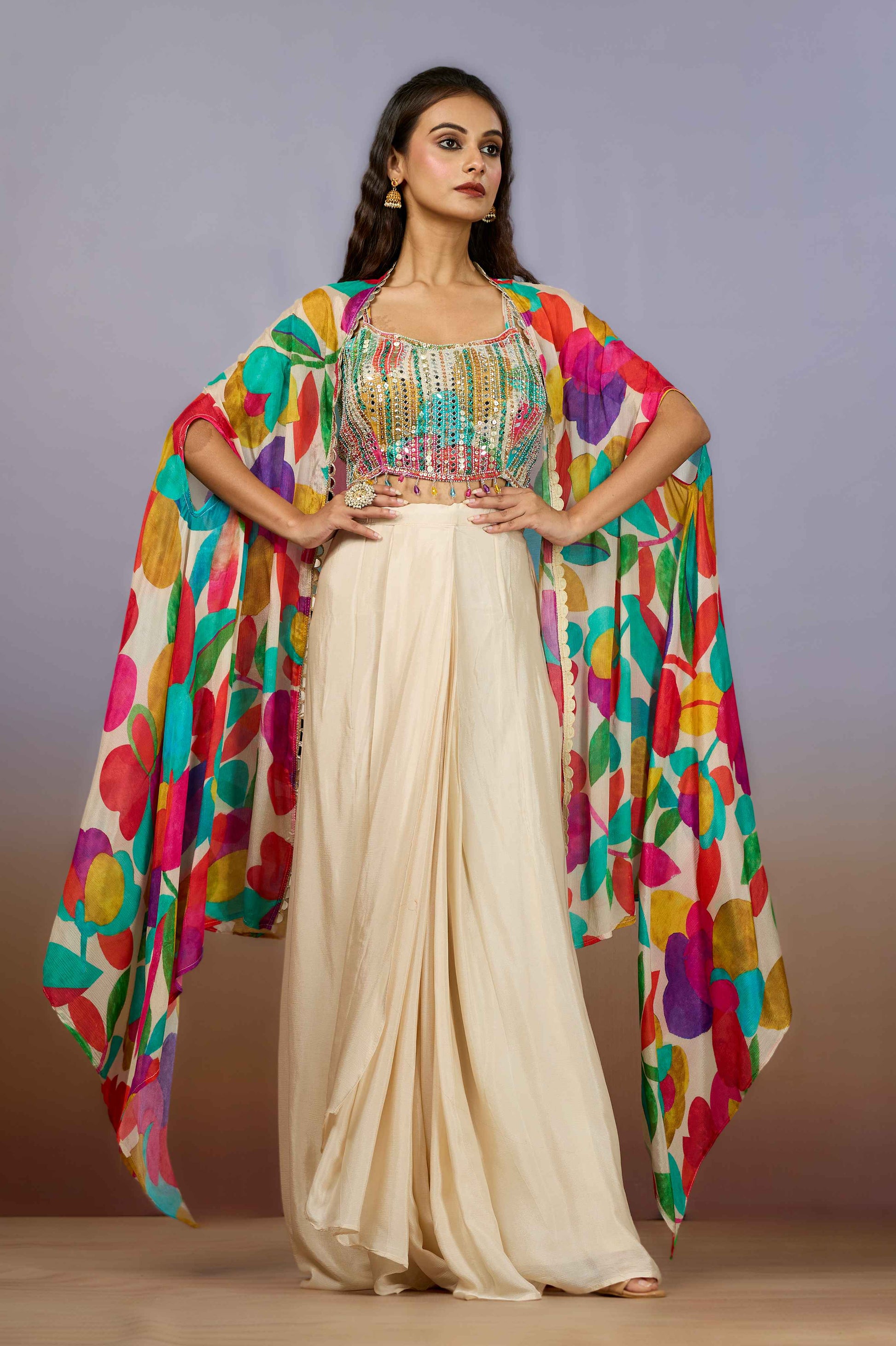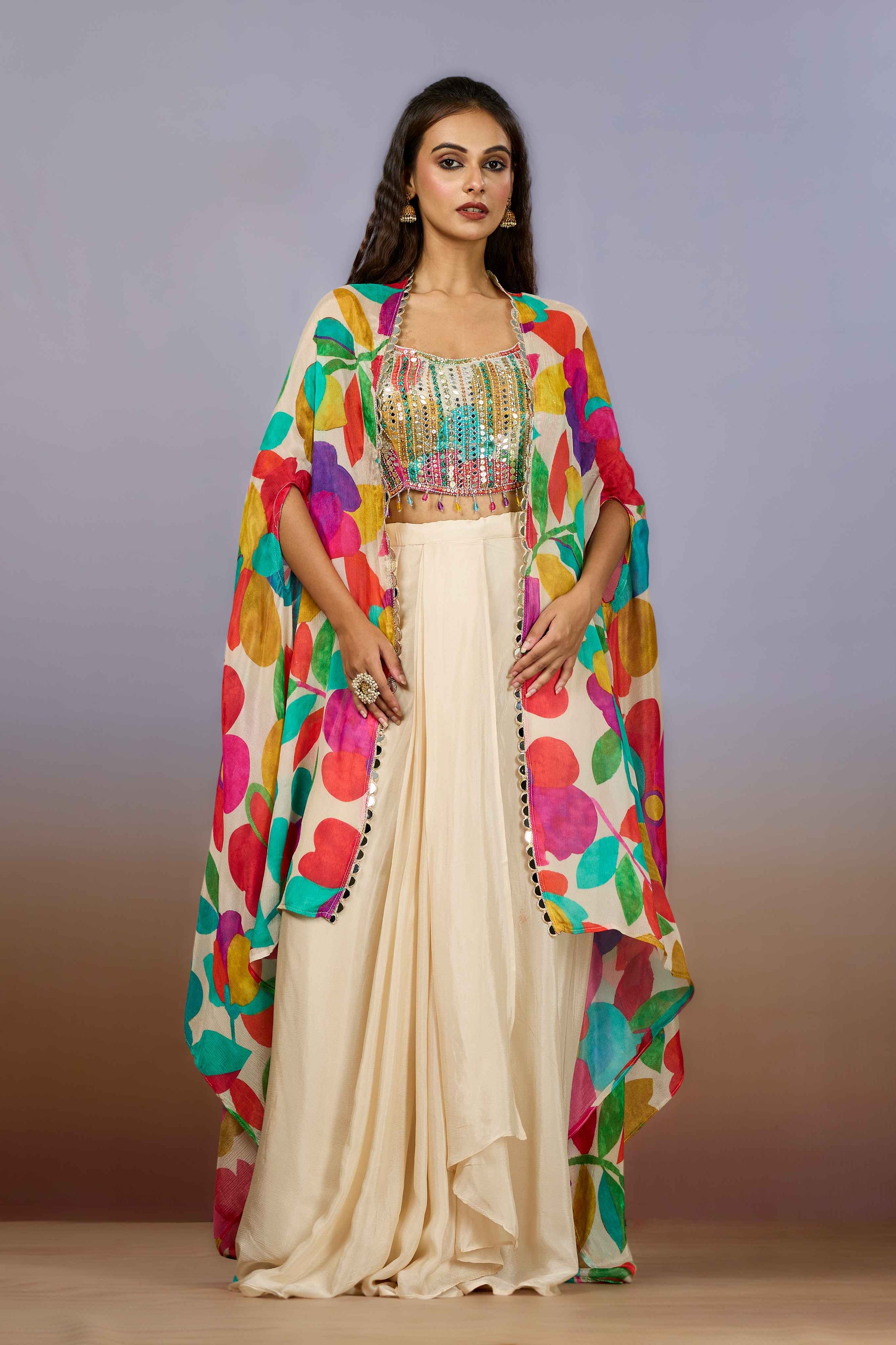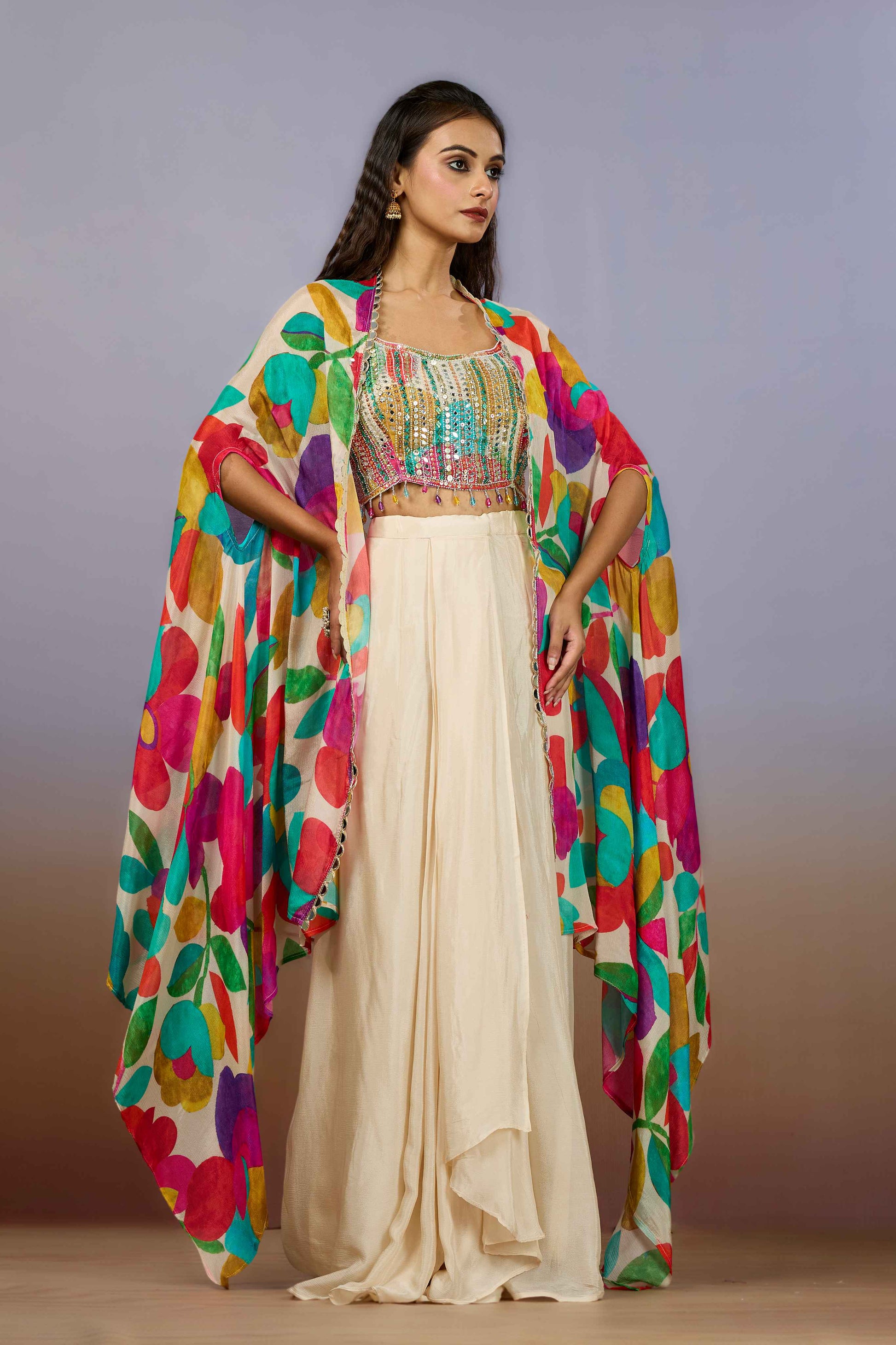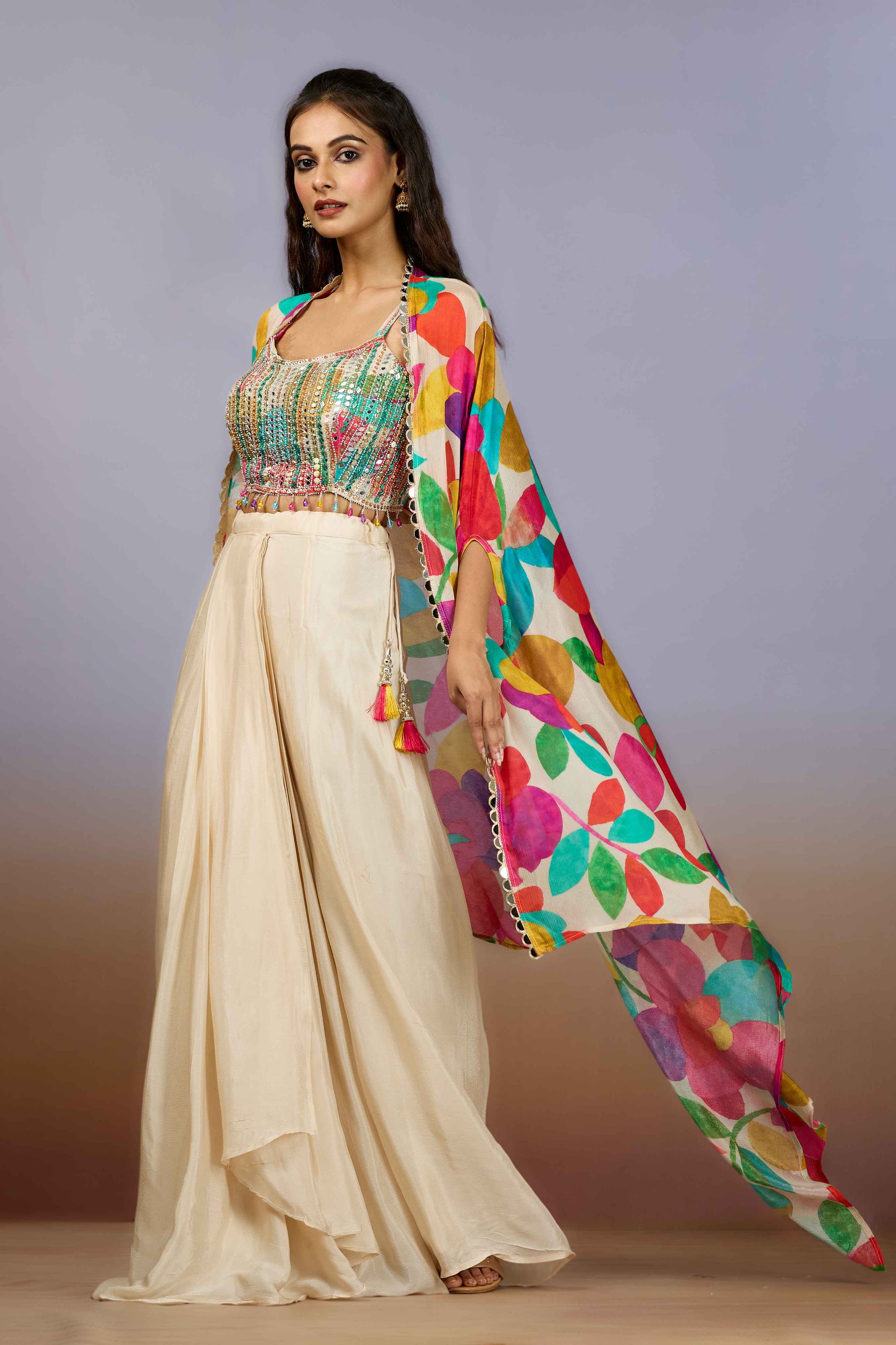 Cream Pearlwork Chinon Indo Western 1017-10096