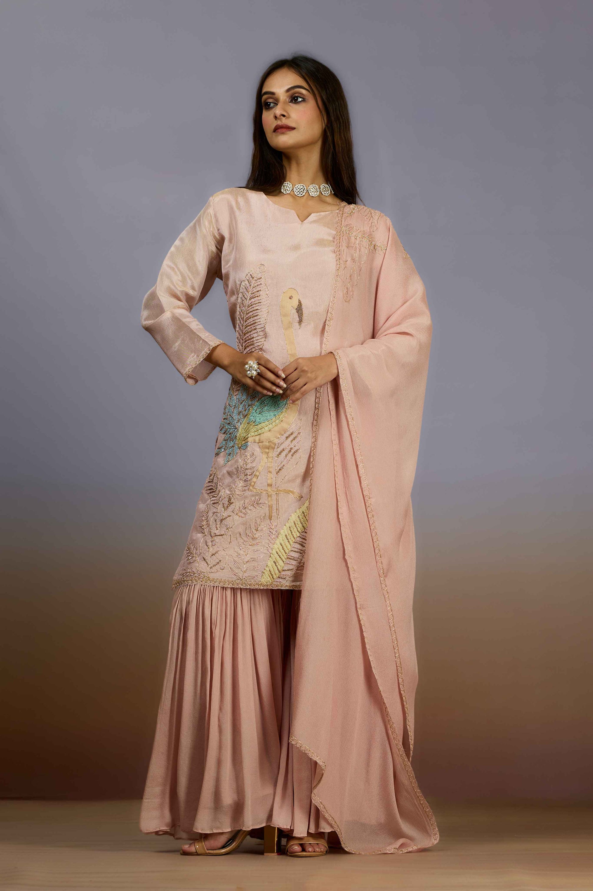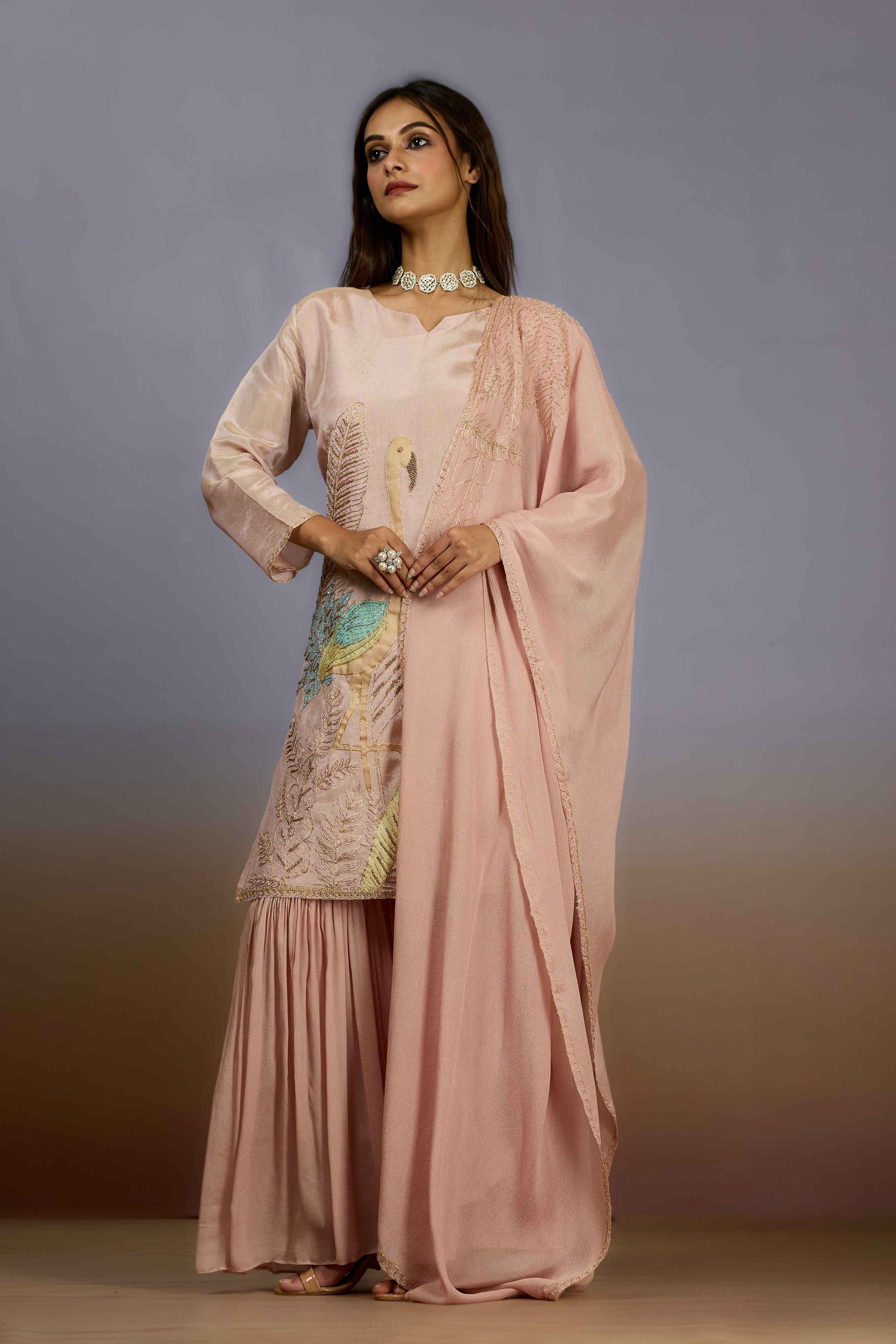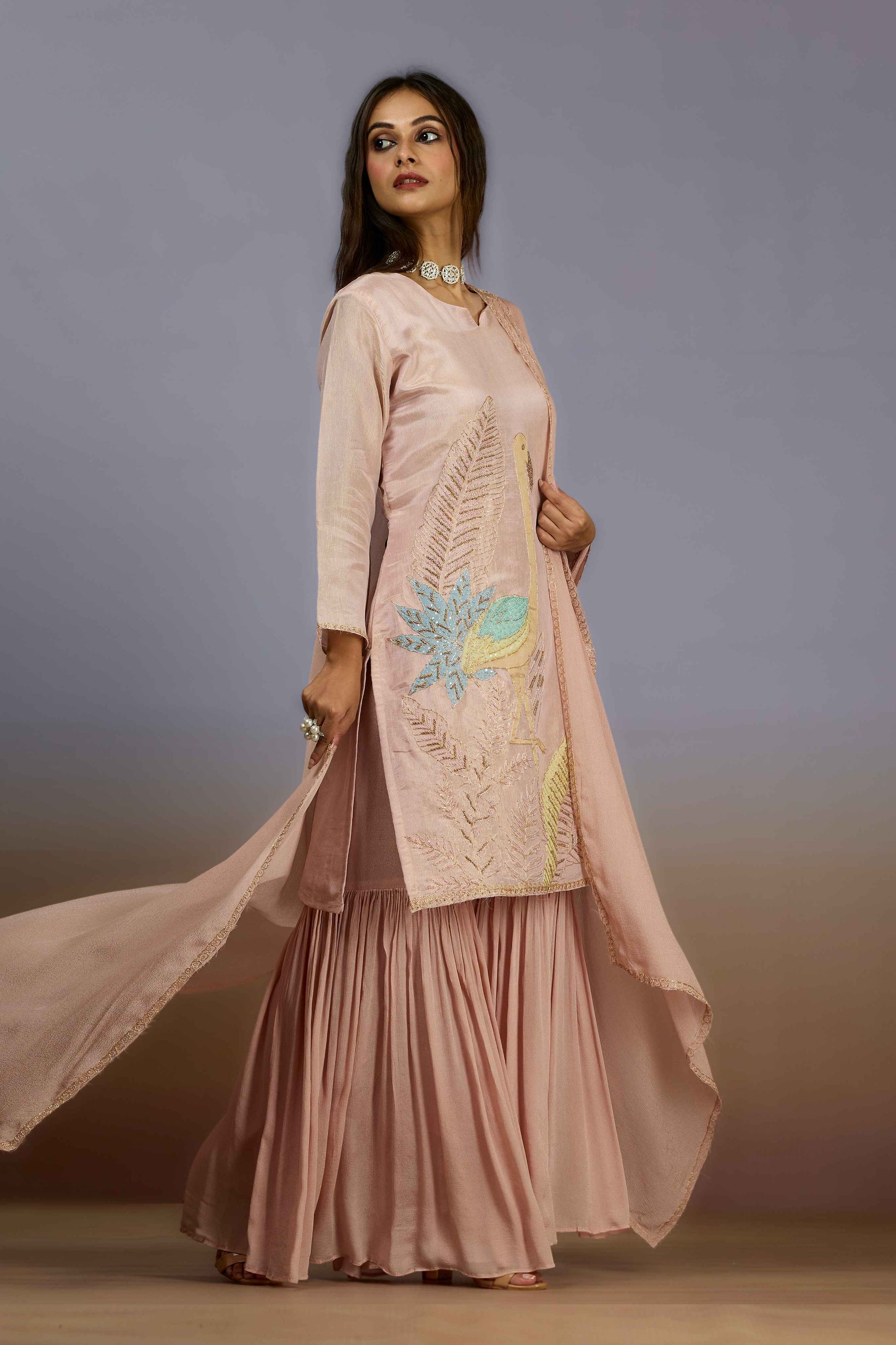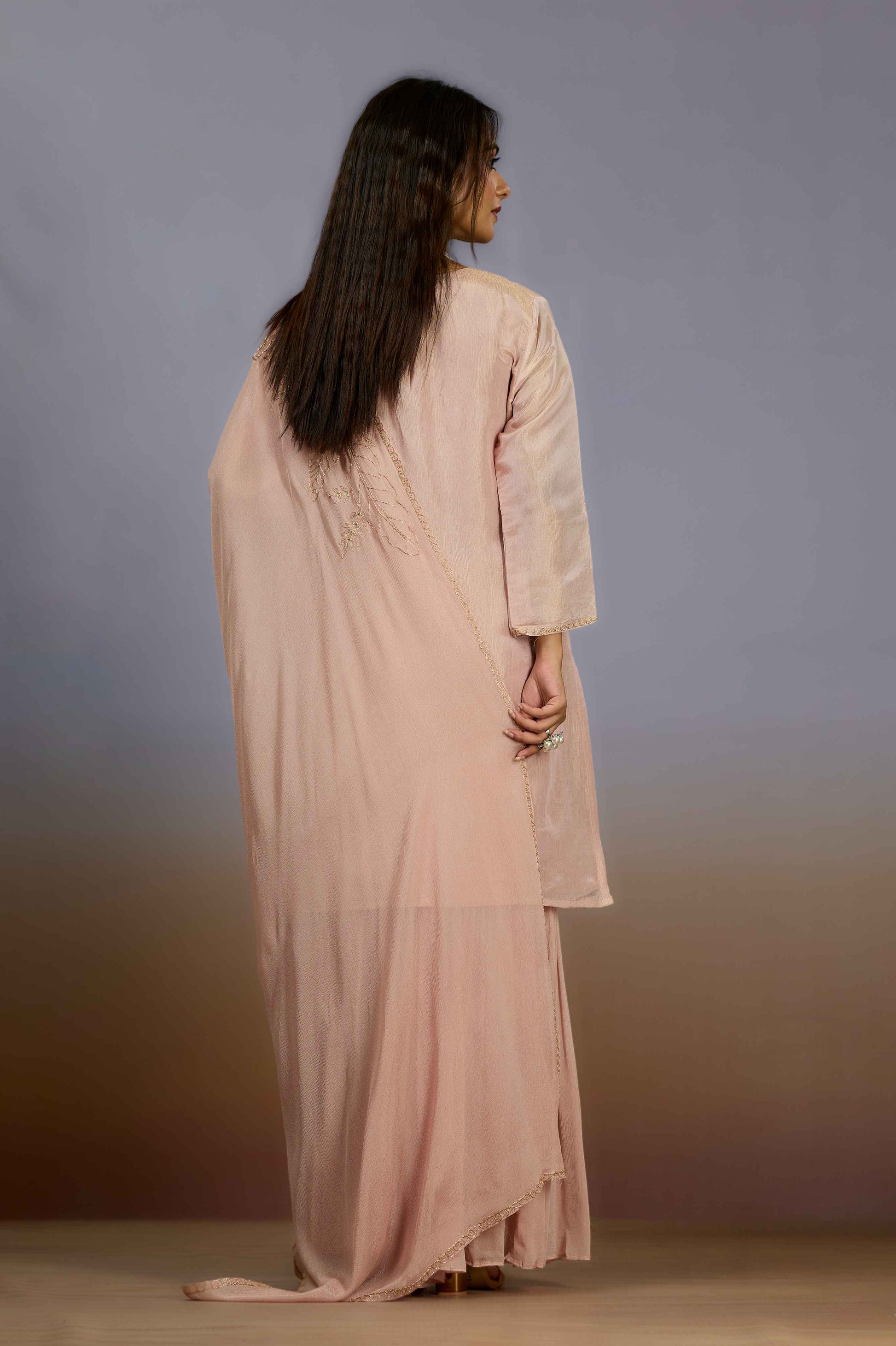 Peach Pearlwork Chinon Indo Western 1018-10079