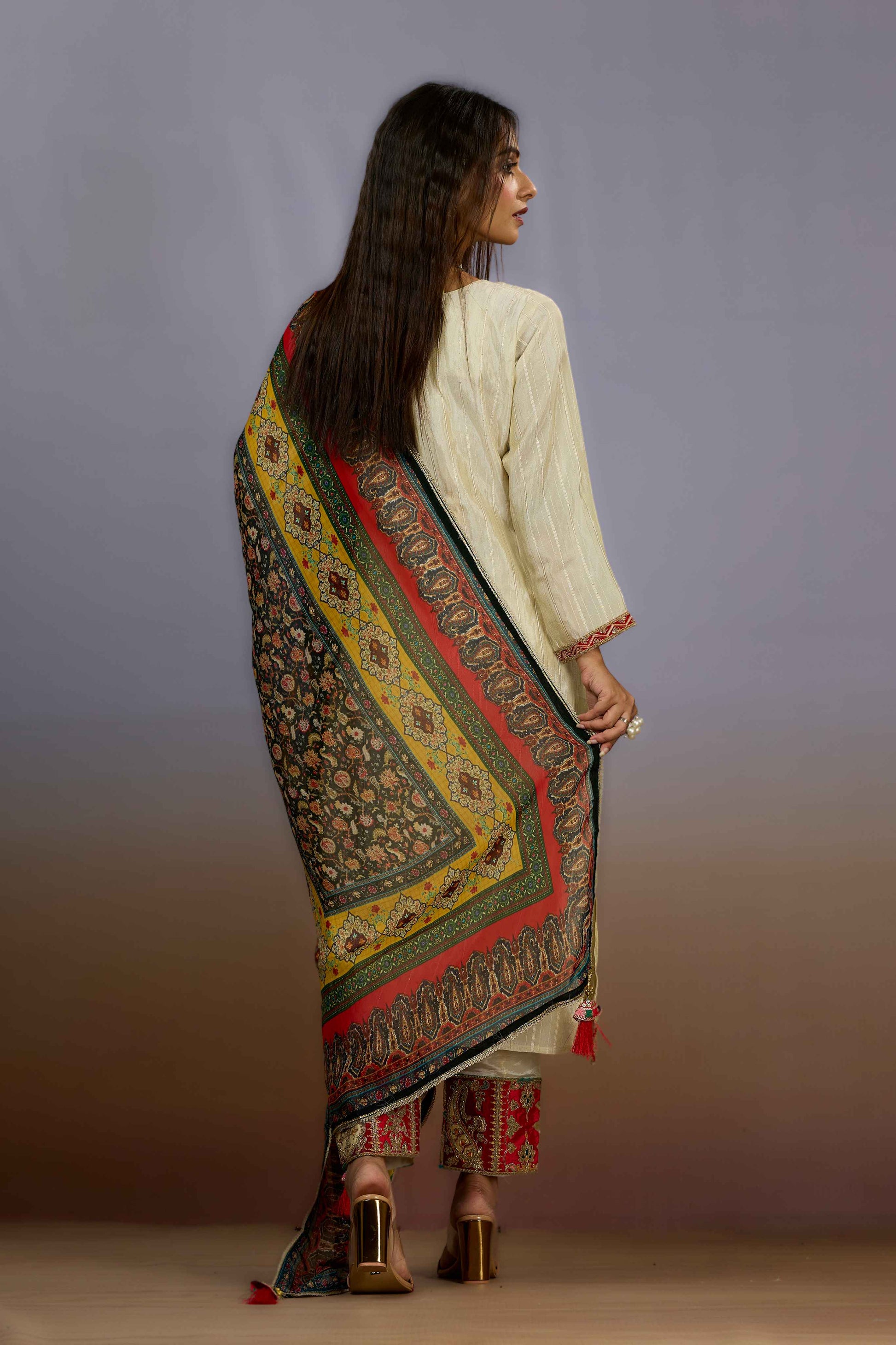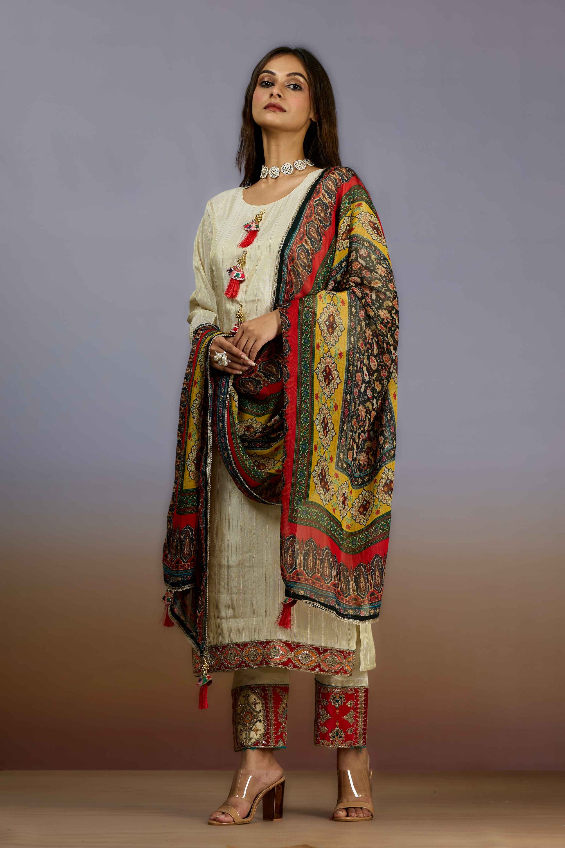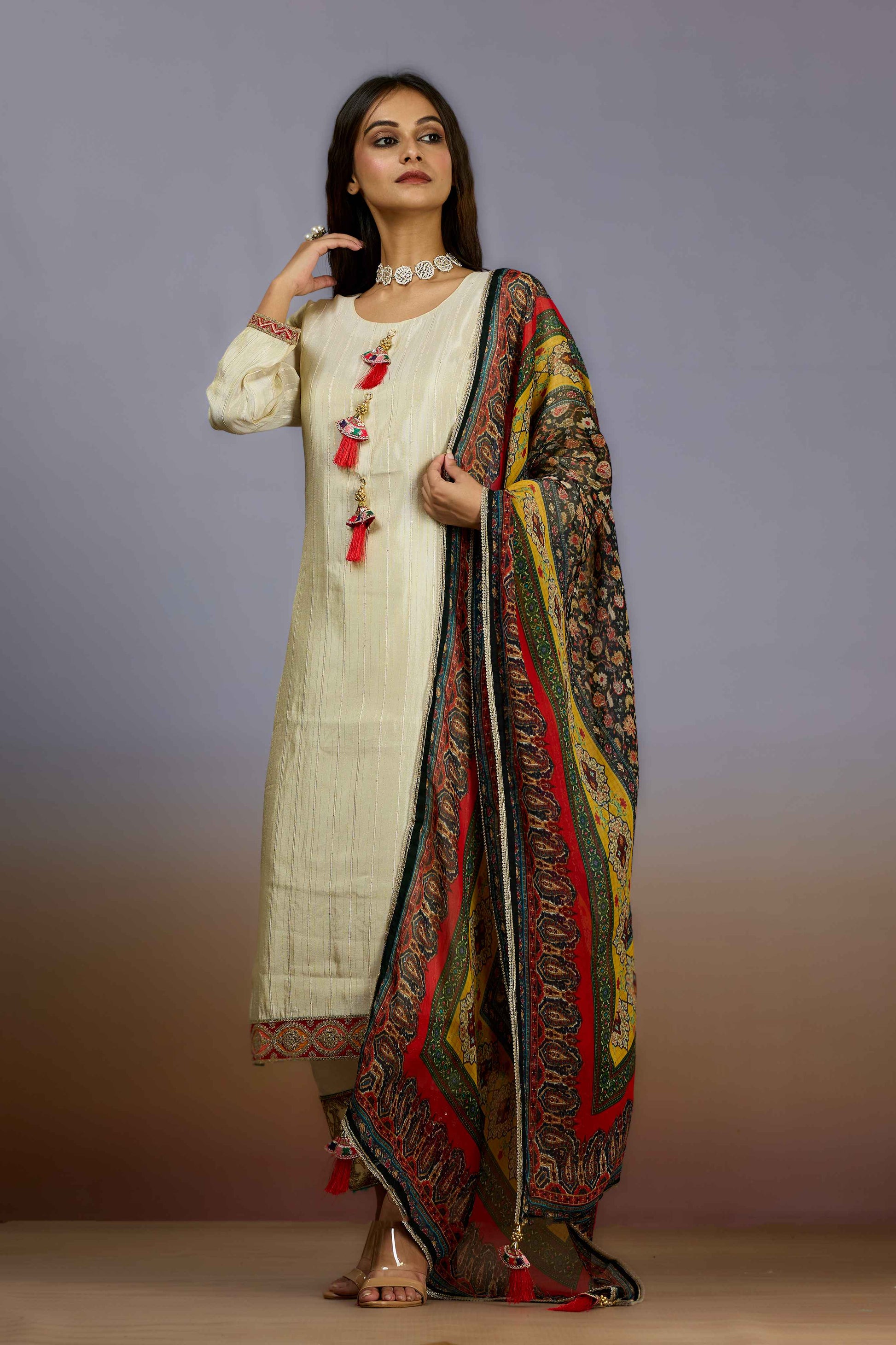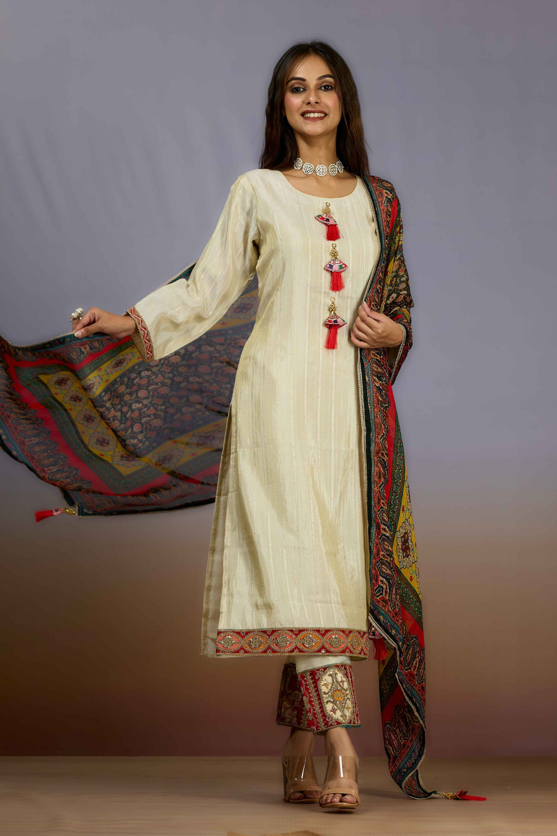 Cream Sequins Tissue Salwar Suits 1019-10084