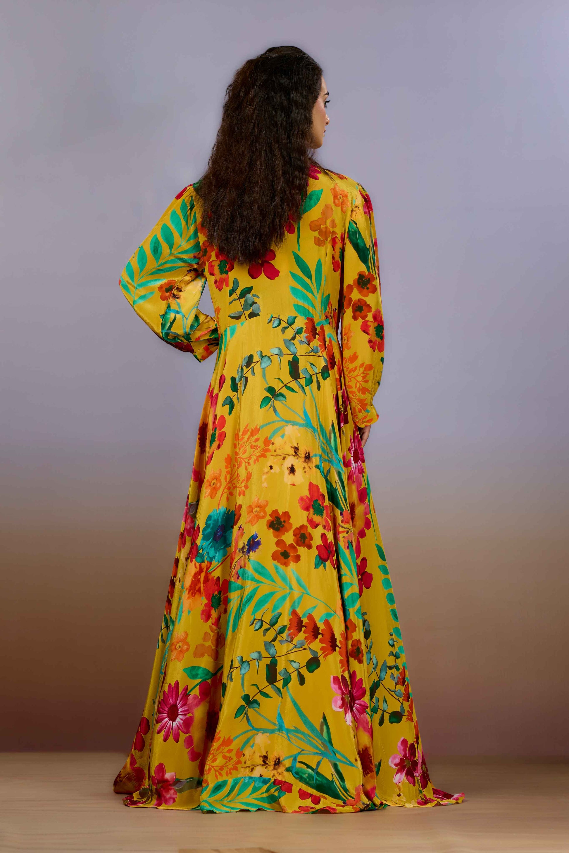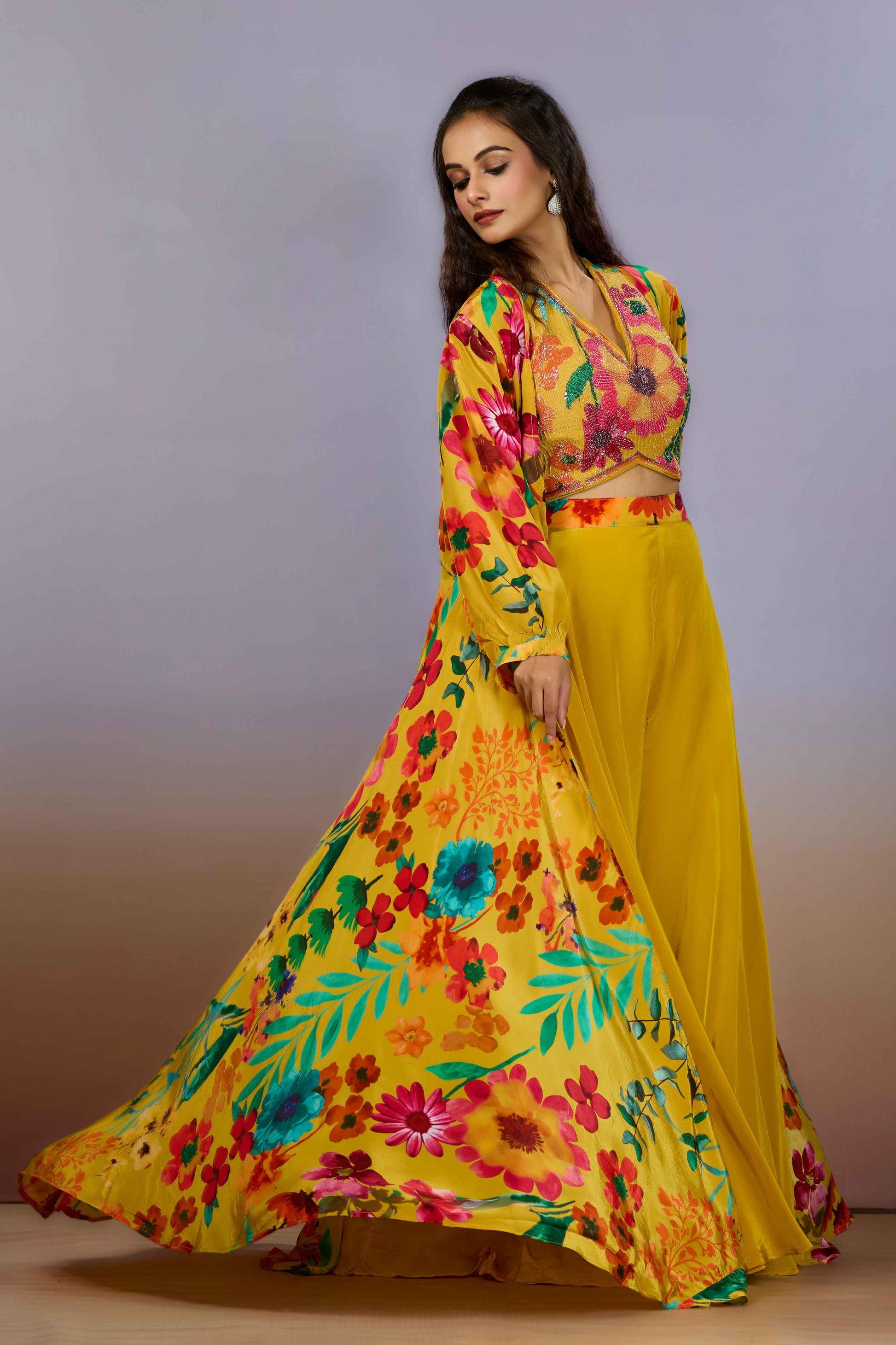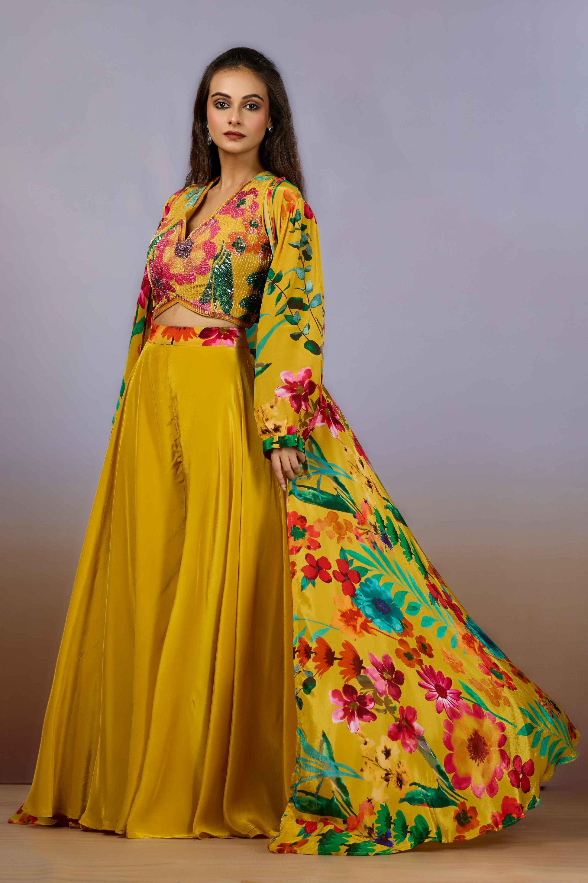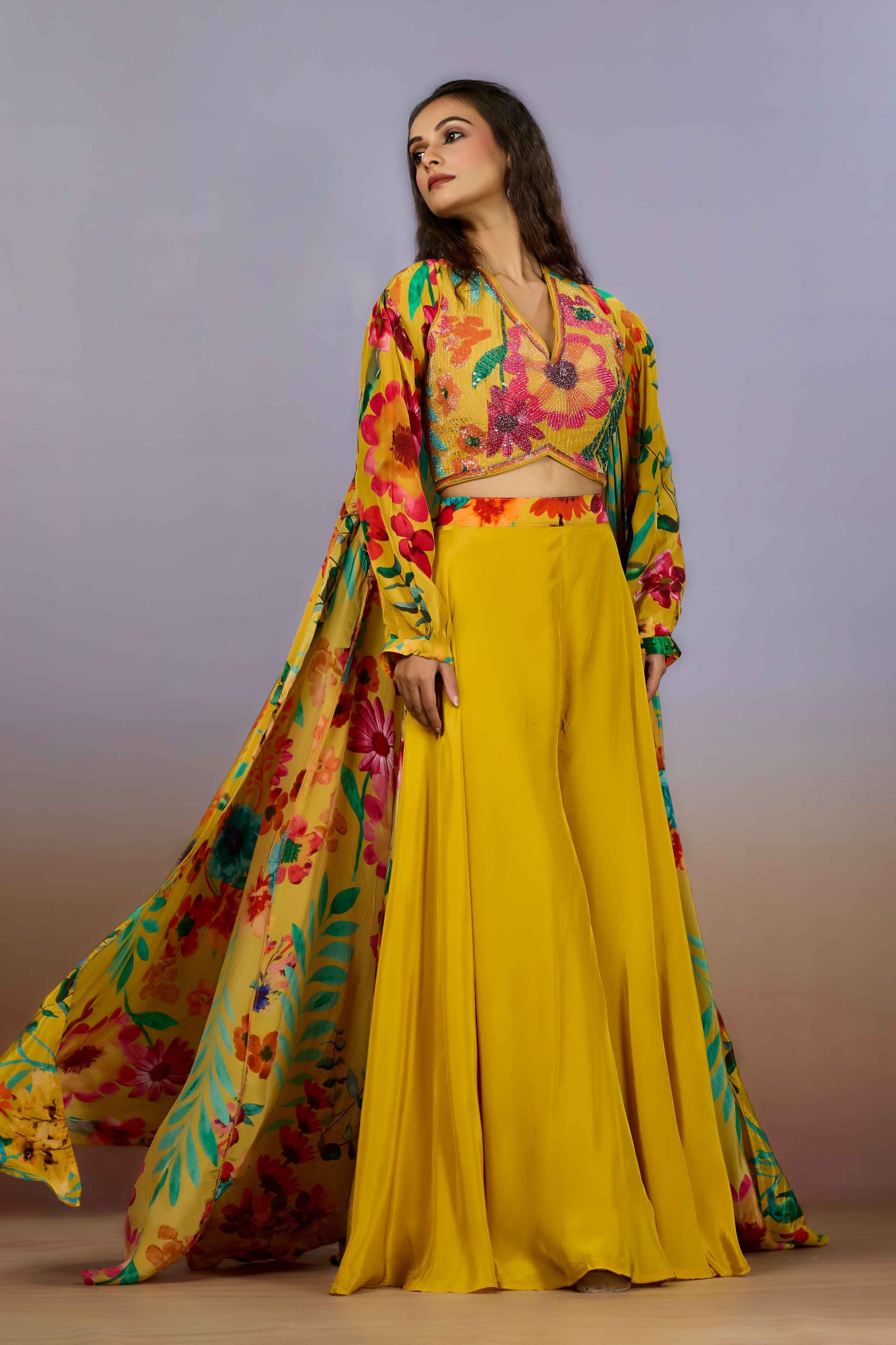Yellow Cut Dana Crepe Indo Western 1023-10090