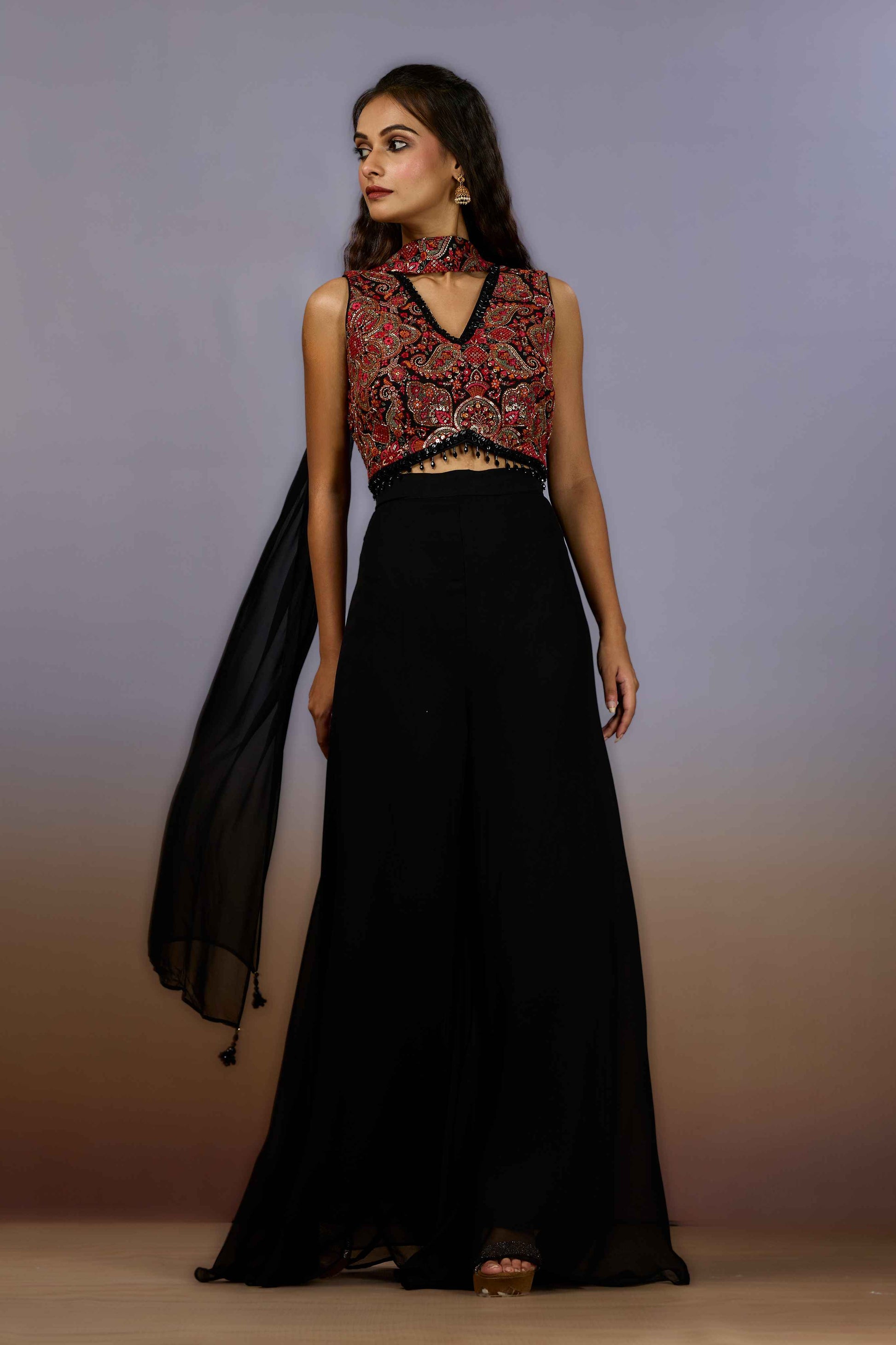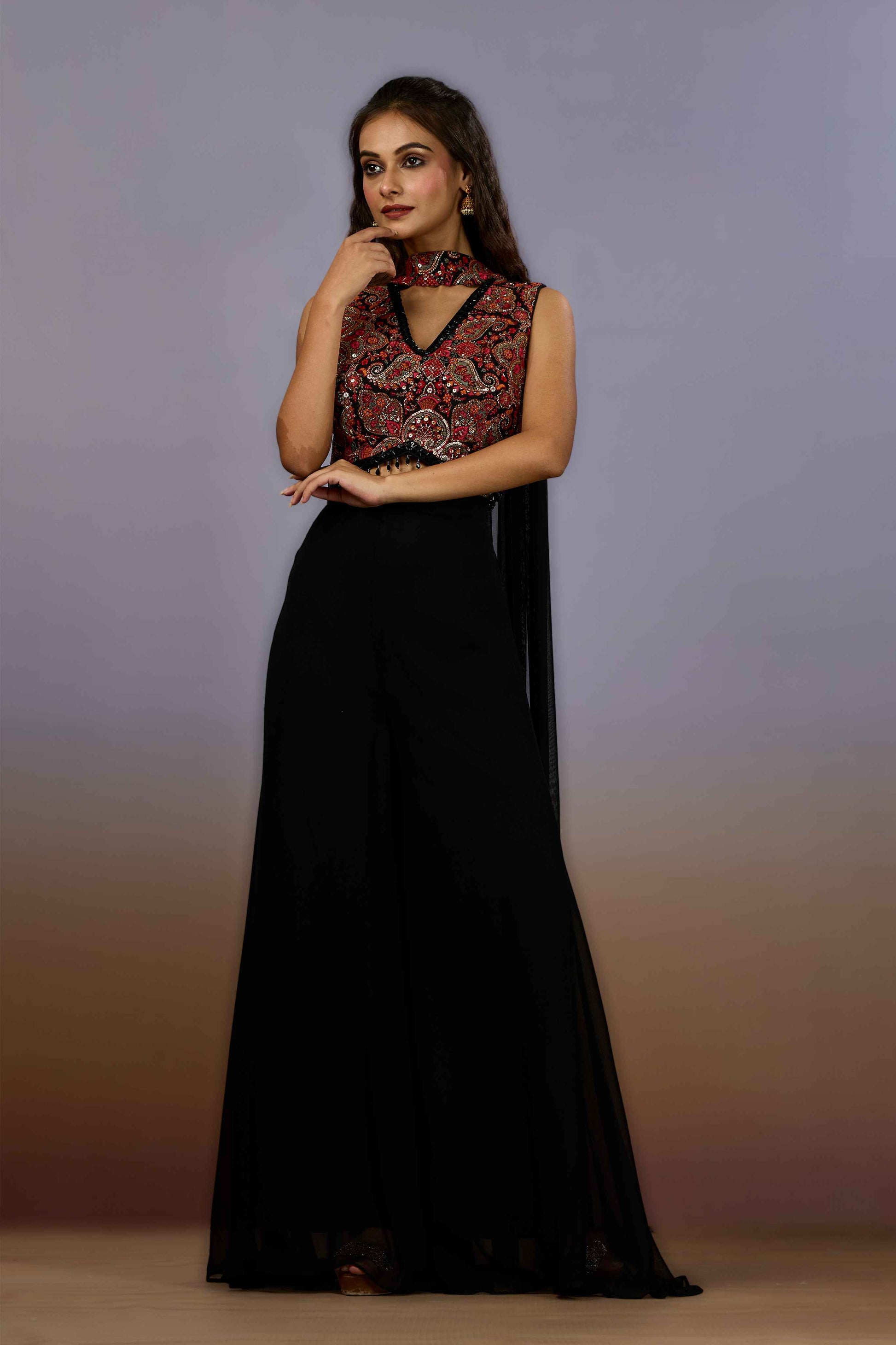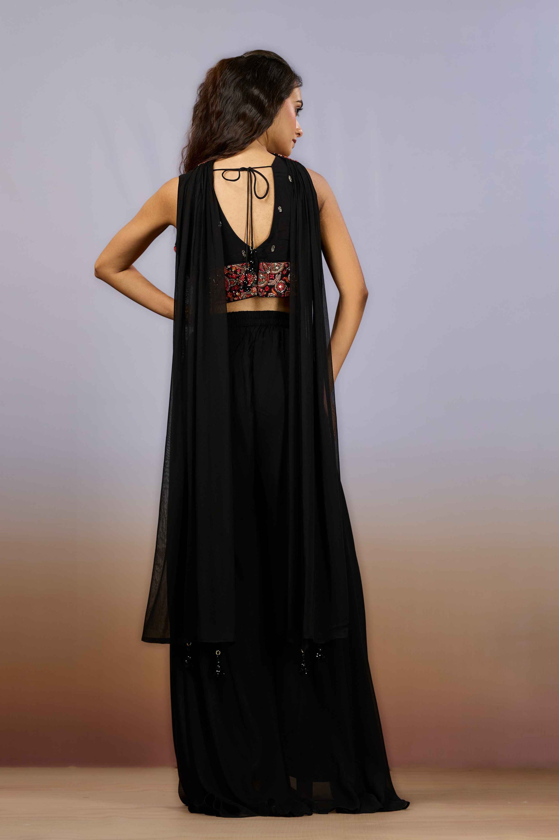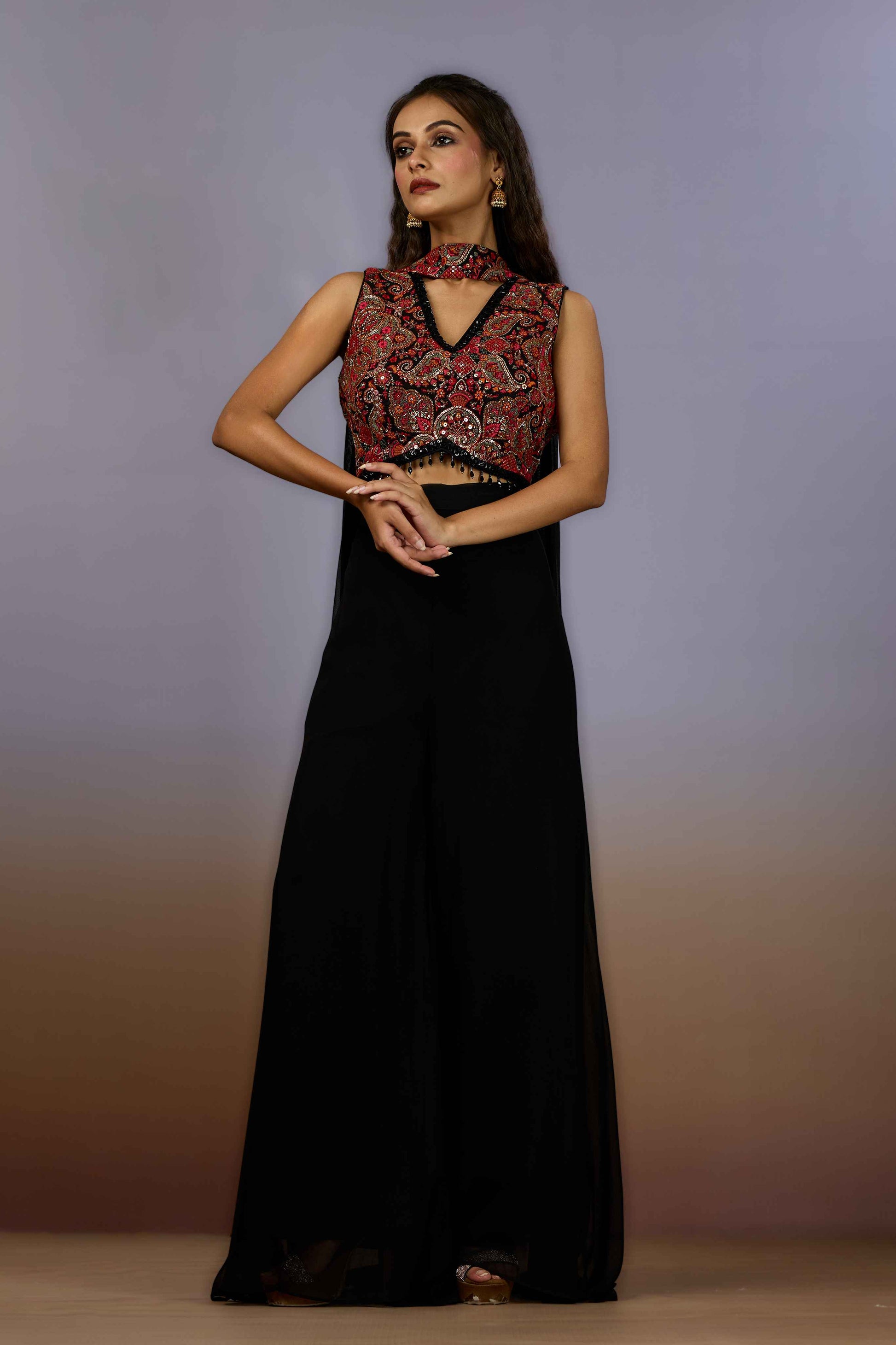 Shreyshree's Black Embroidery Georgette Indo Western features exquisite embroidery on lightweight georgette fabric, combining elegance with comfort. The deep black hue highlights the intricate detailing, making it an ideal choice for formal and festive occasions. This expertly crafted ensemble reflects a refined blend of traditional artistry and contemporary style.