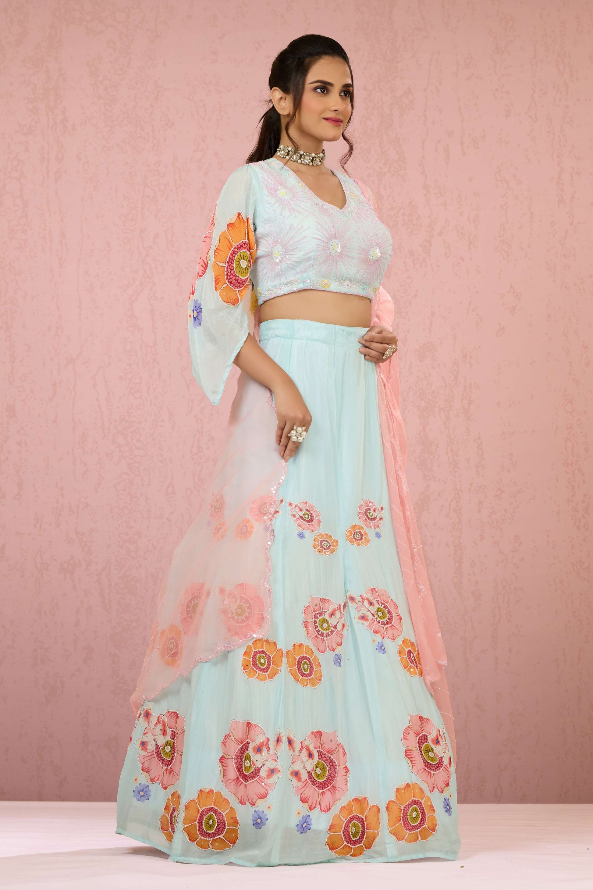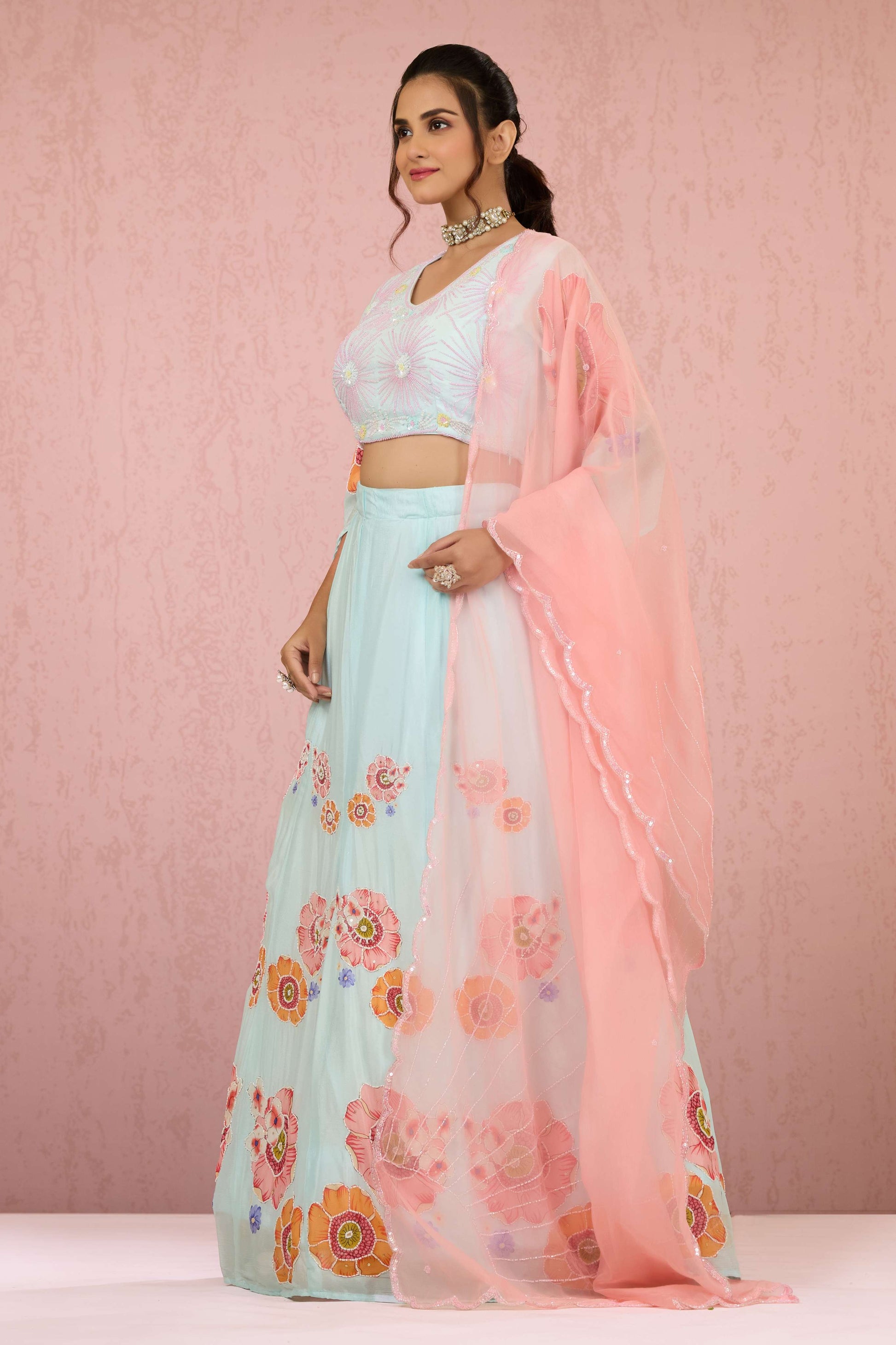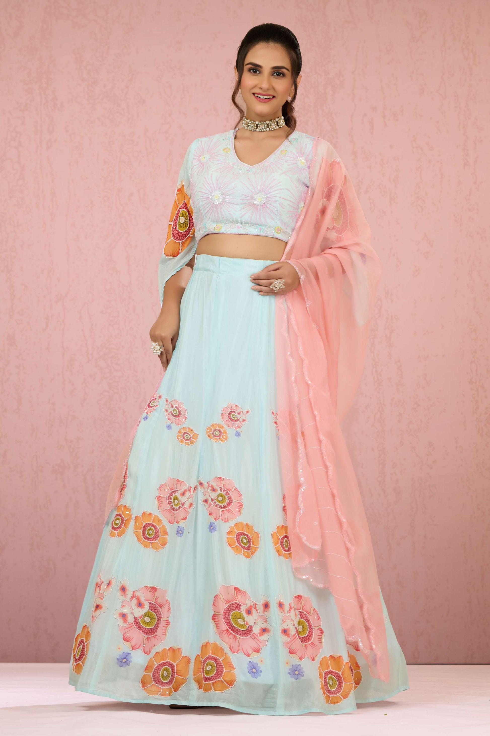 Skyblue Sequins Chinon Readymade Lehenga 1014-10073