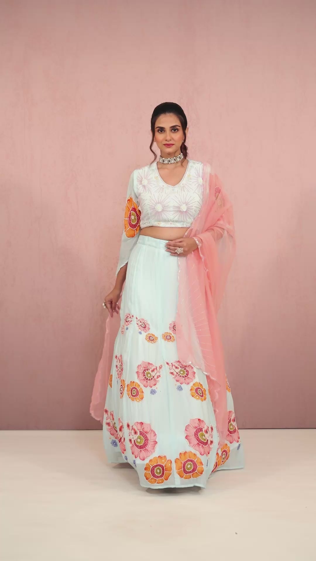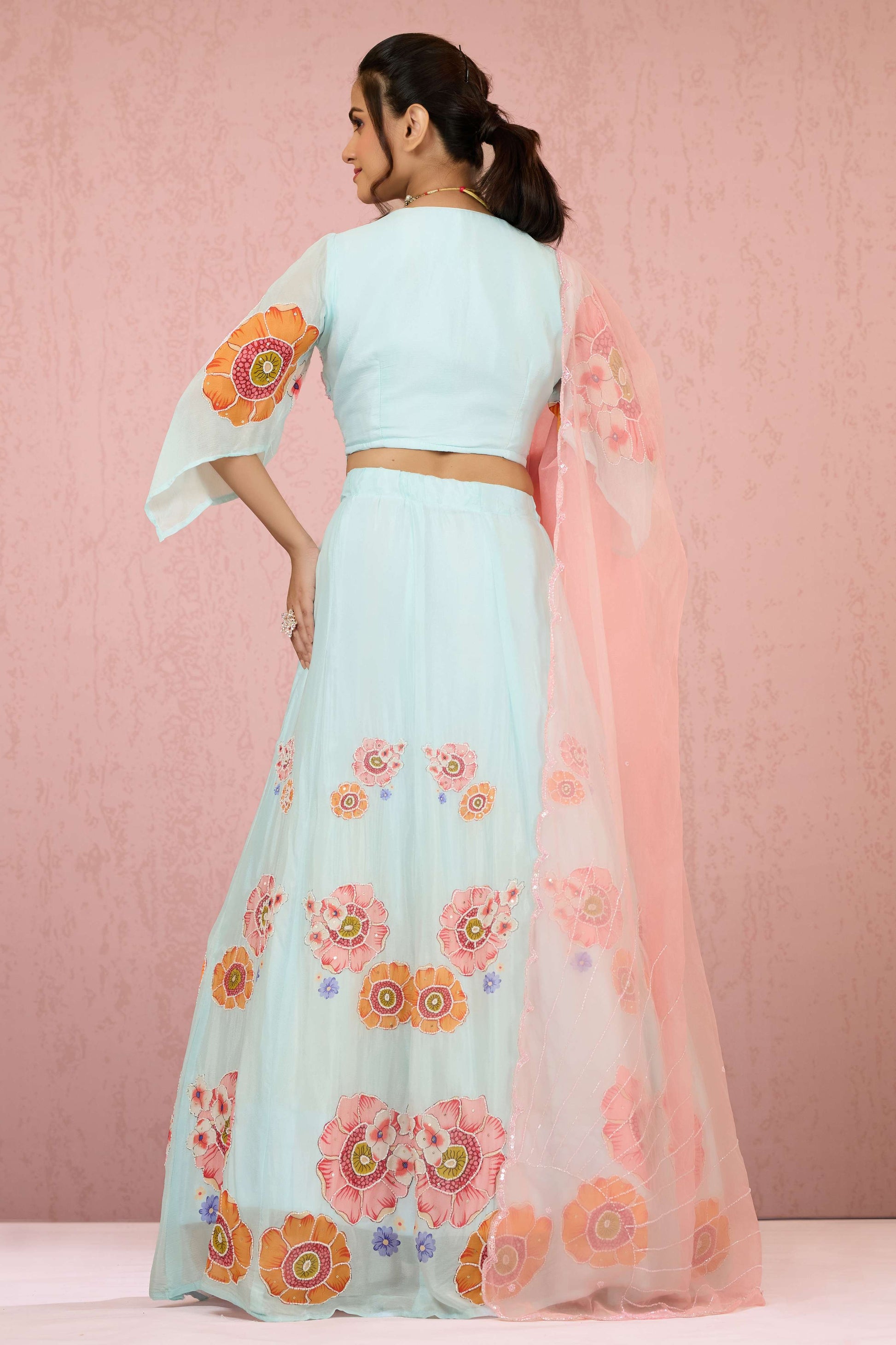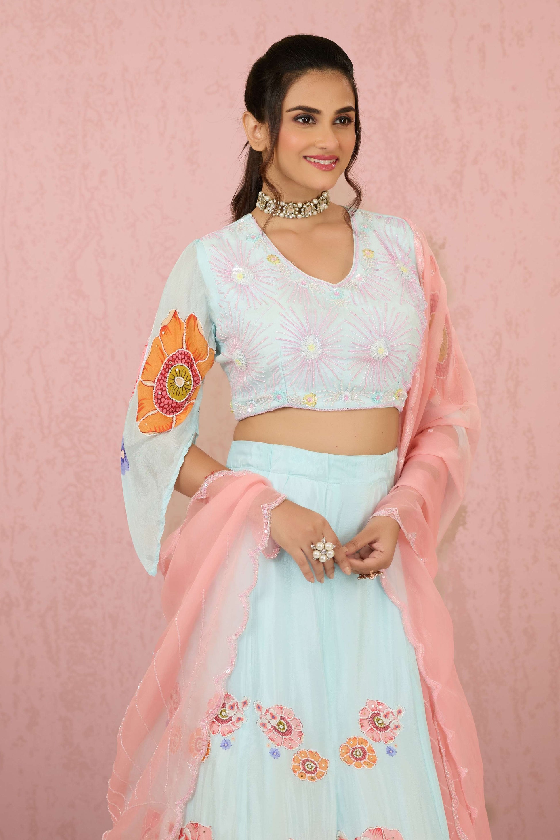 Skyblue Sequins Chinon Readymade Lehenga 1014-10073