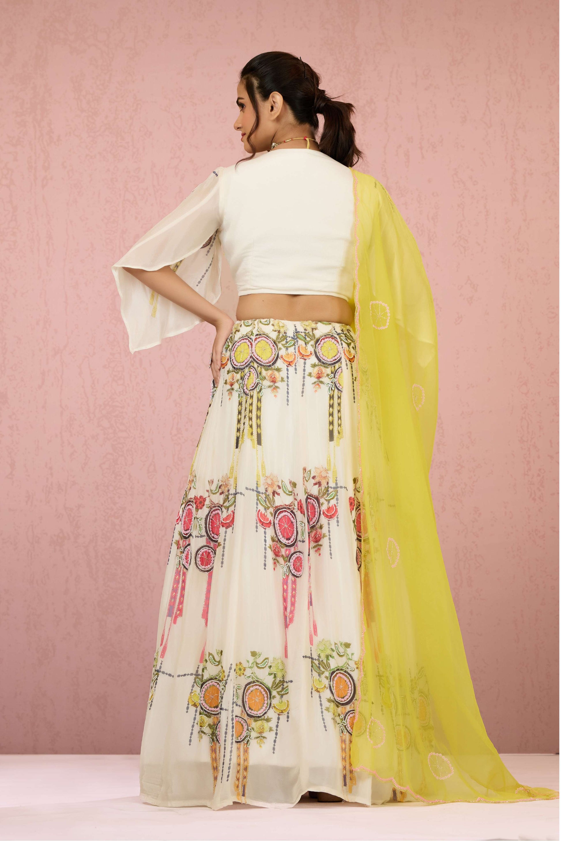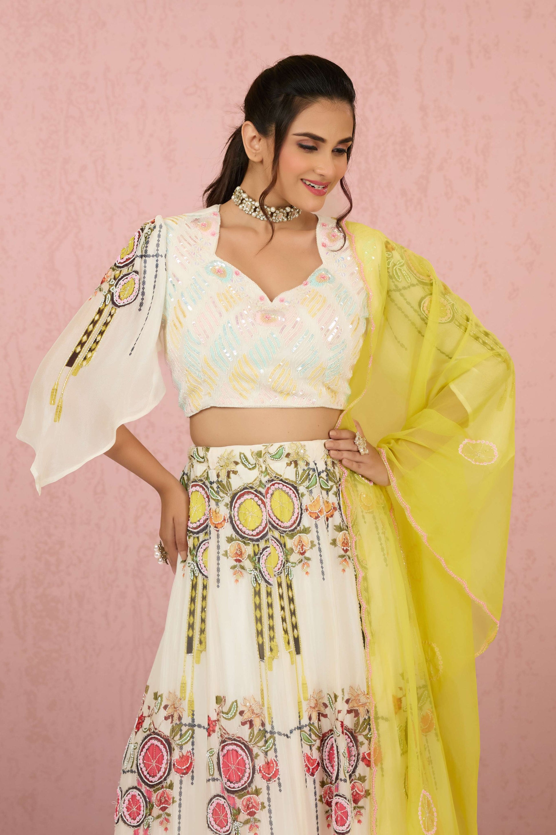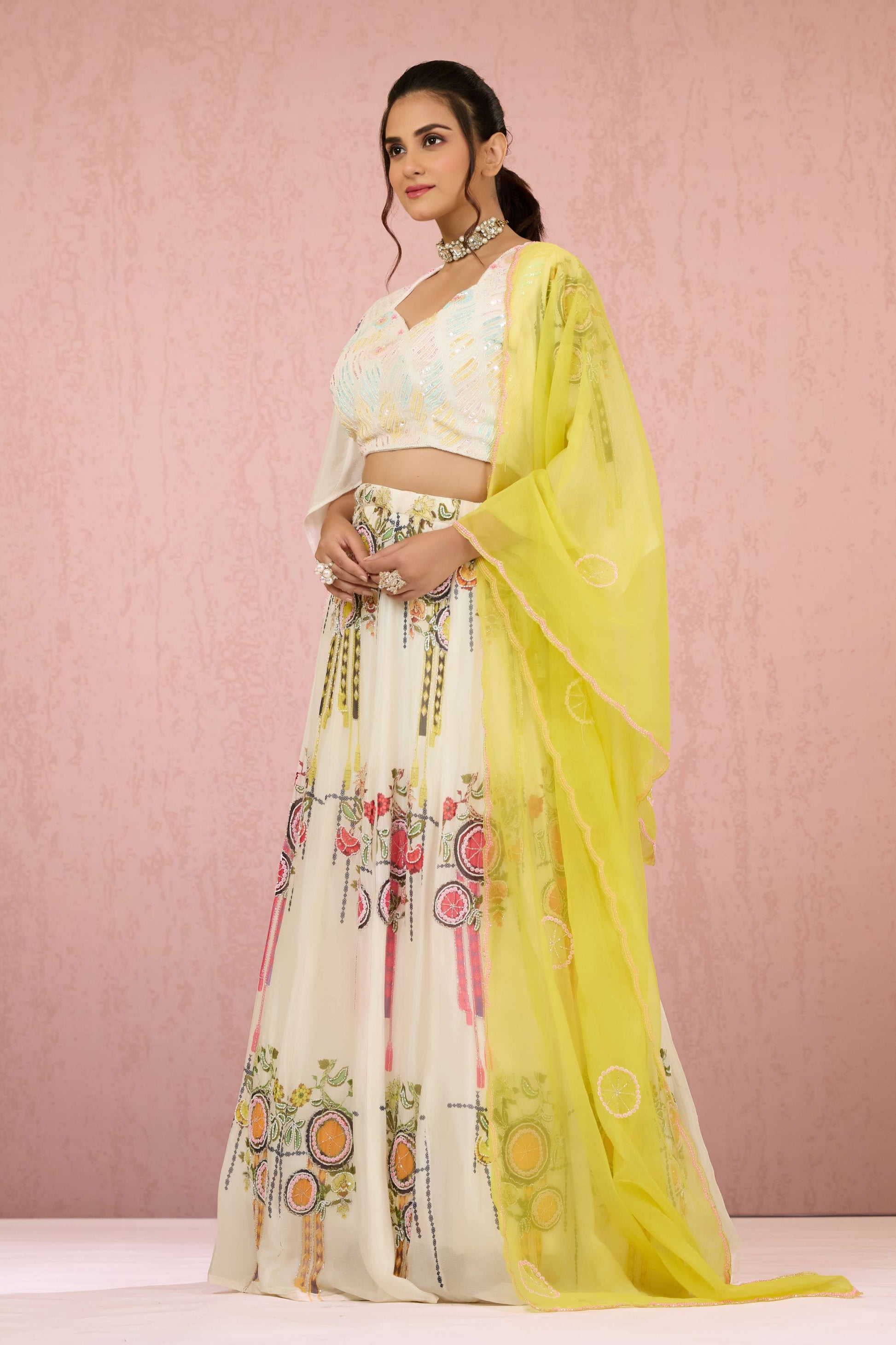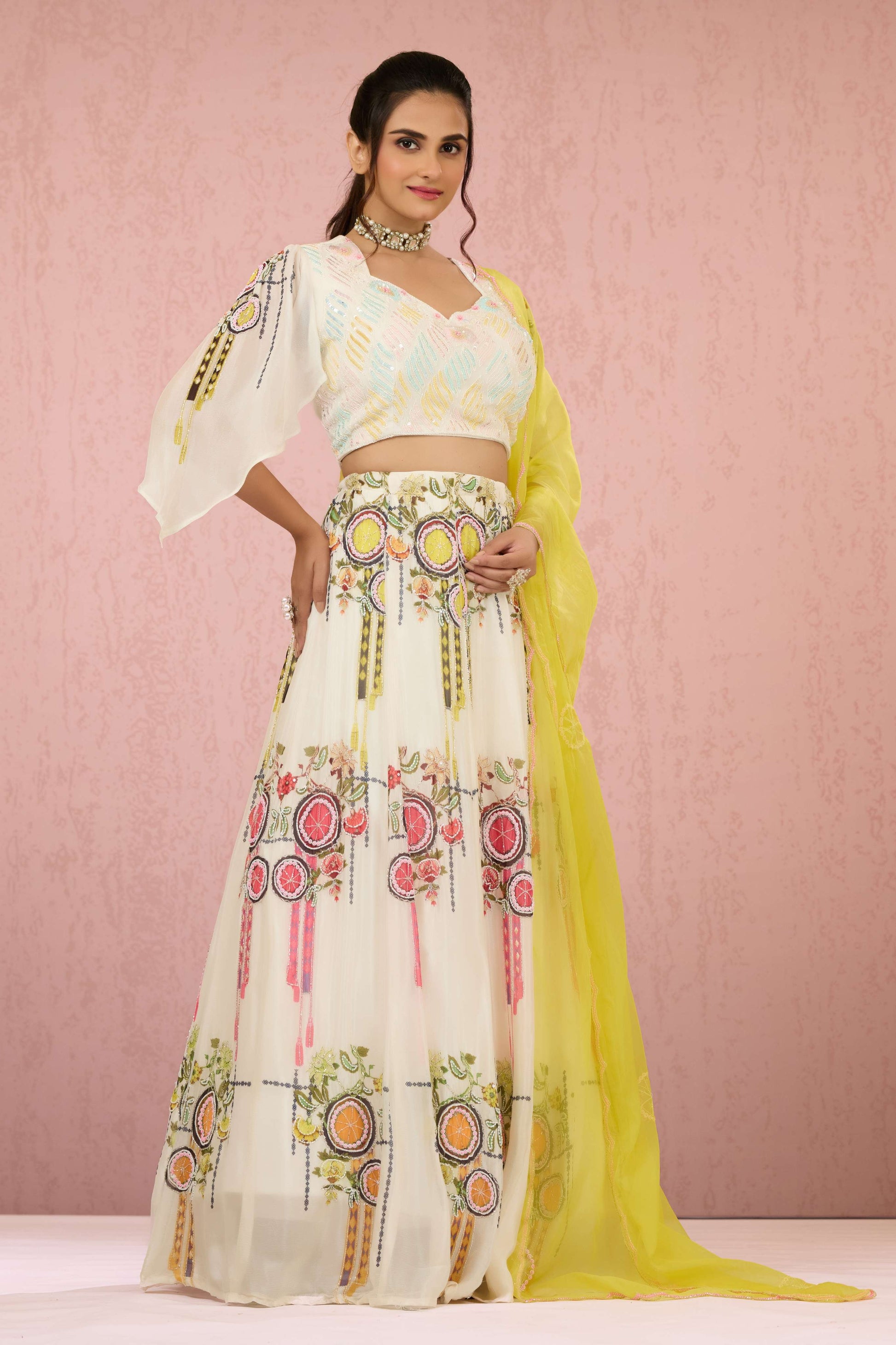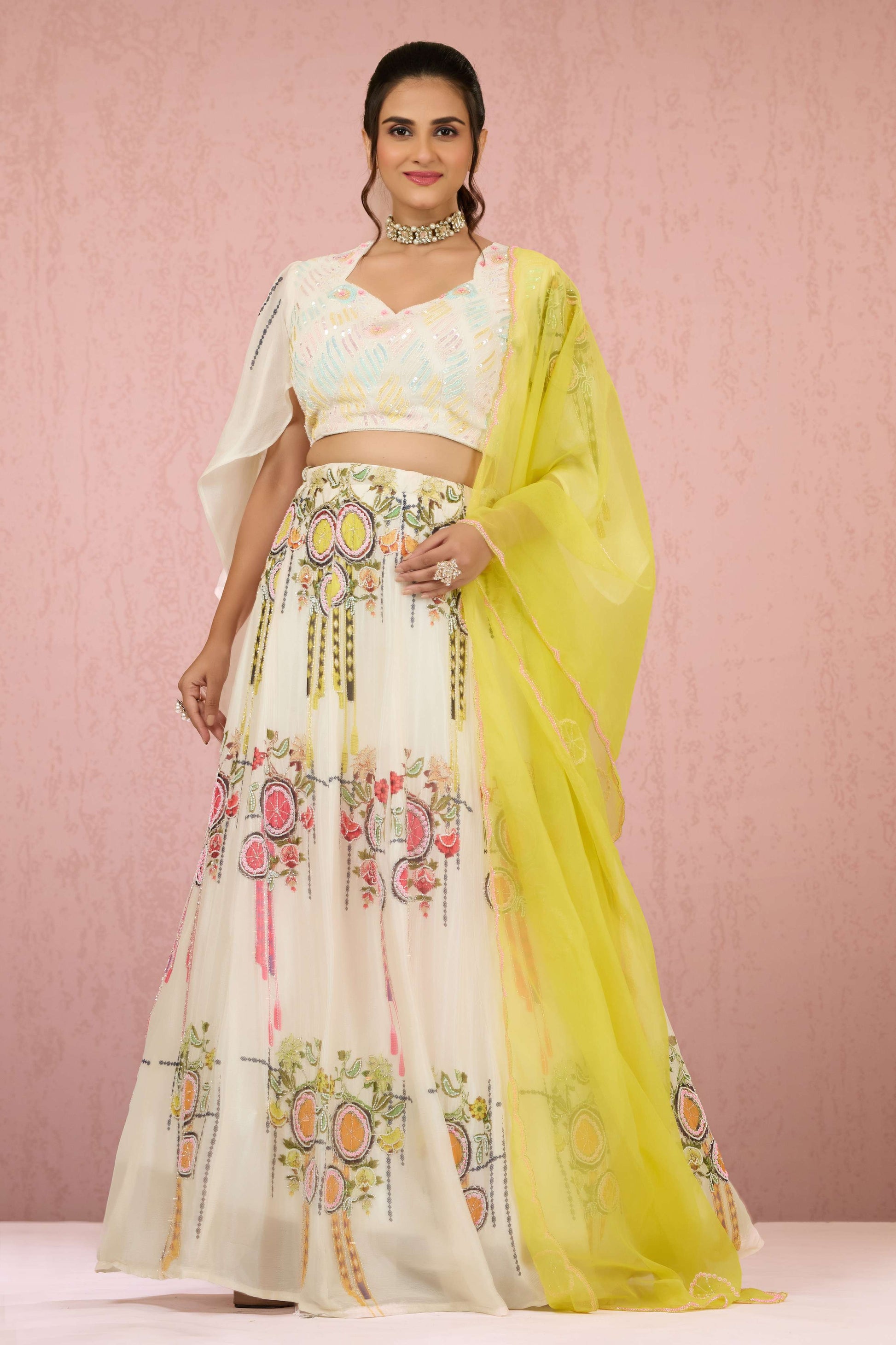 Cream Sequins Chinon Readymade Lehenga 1014-10074