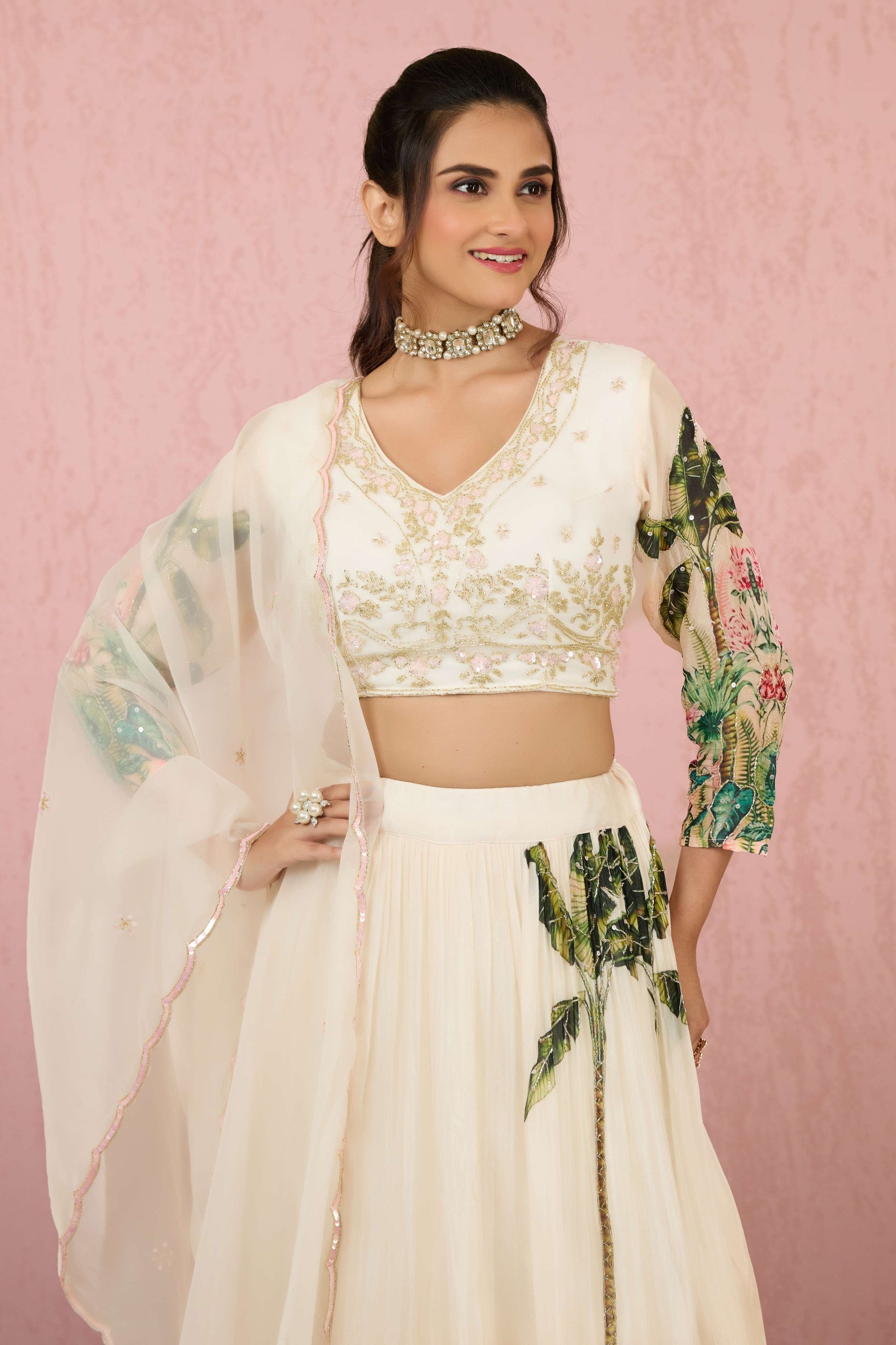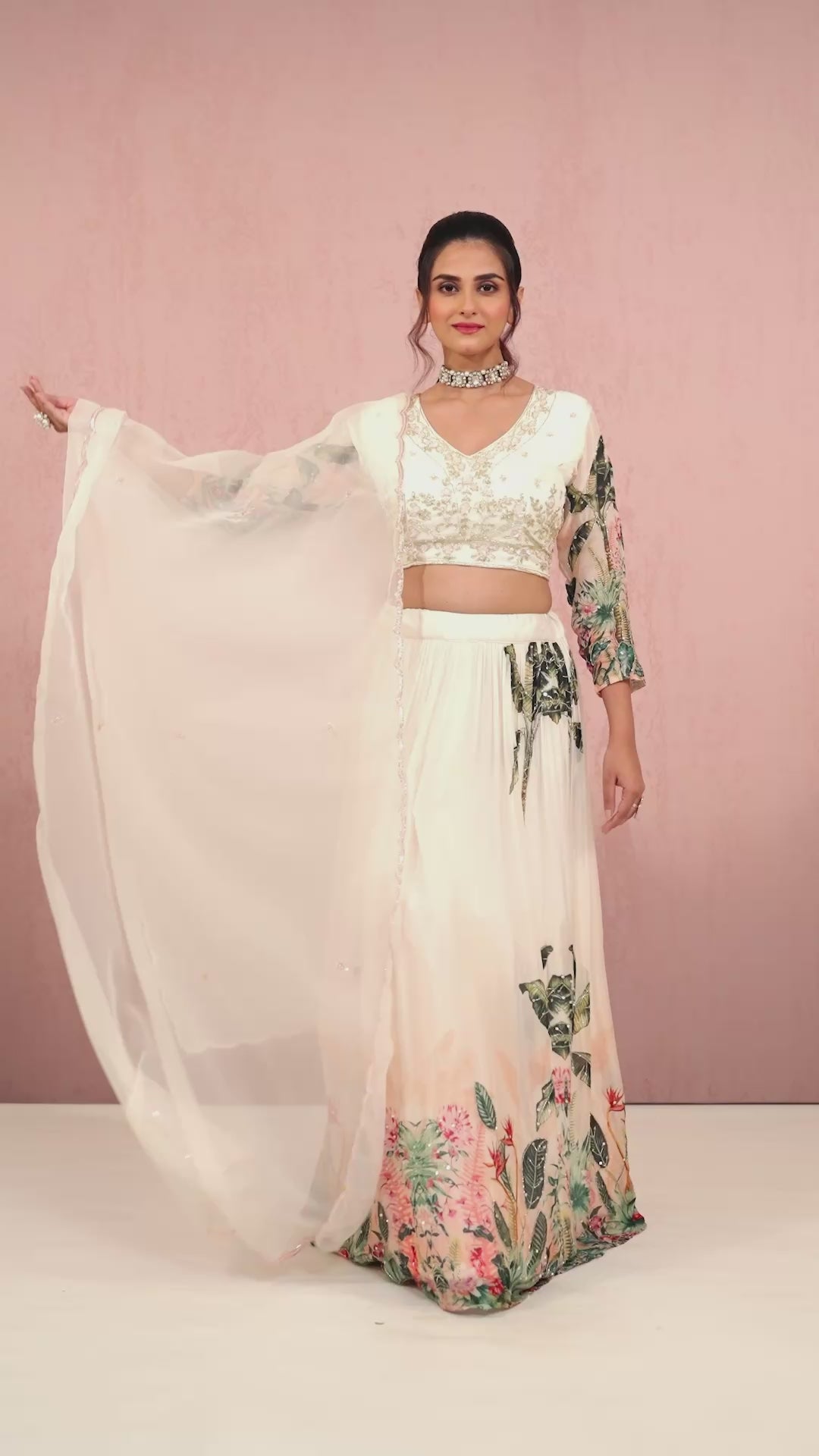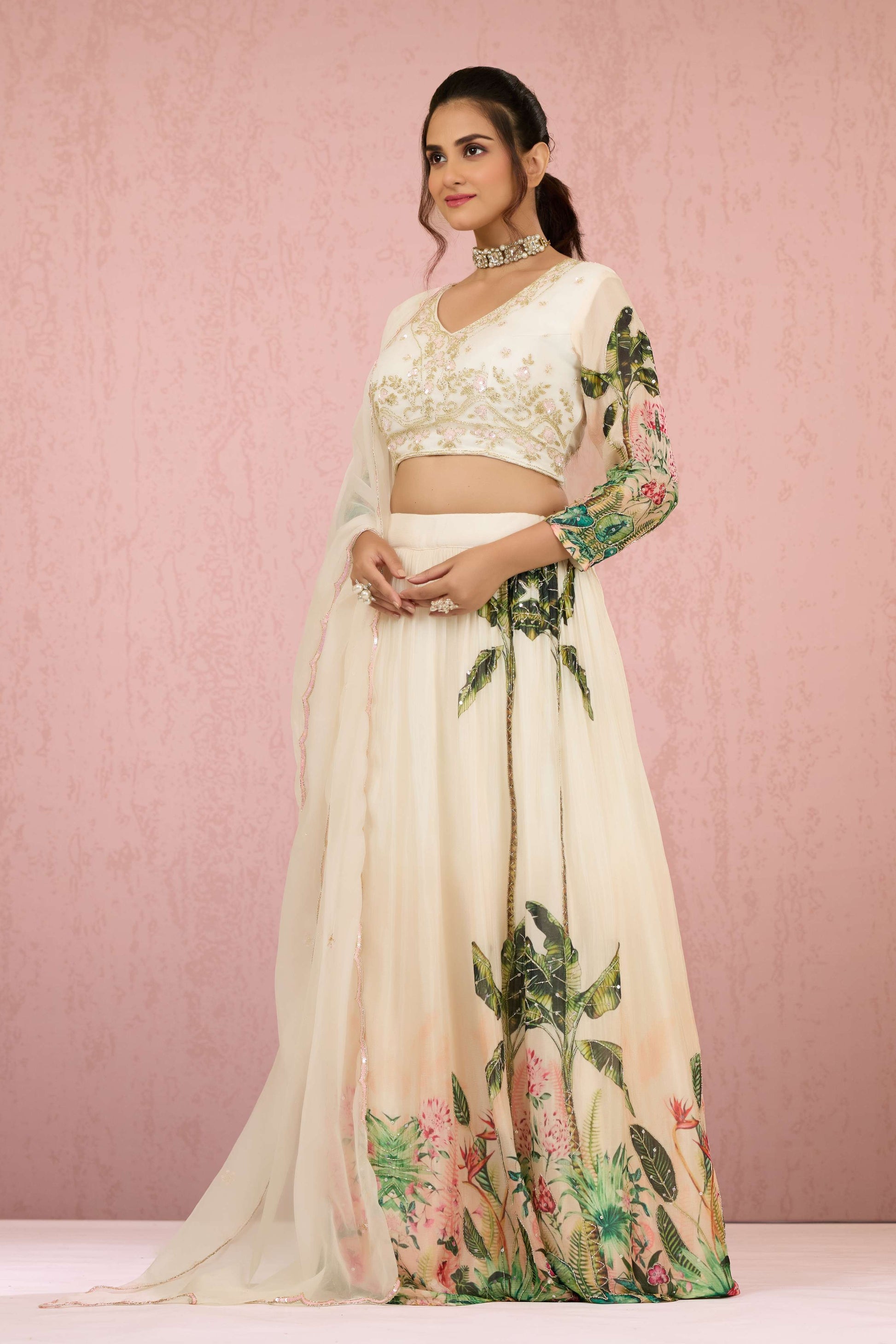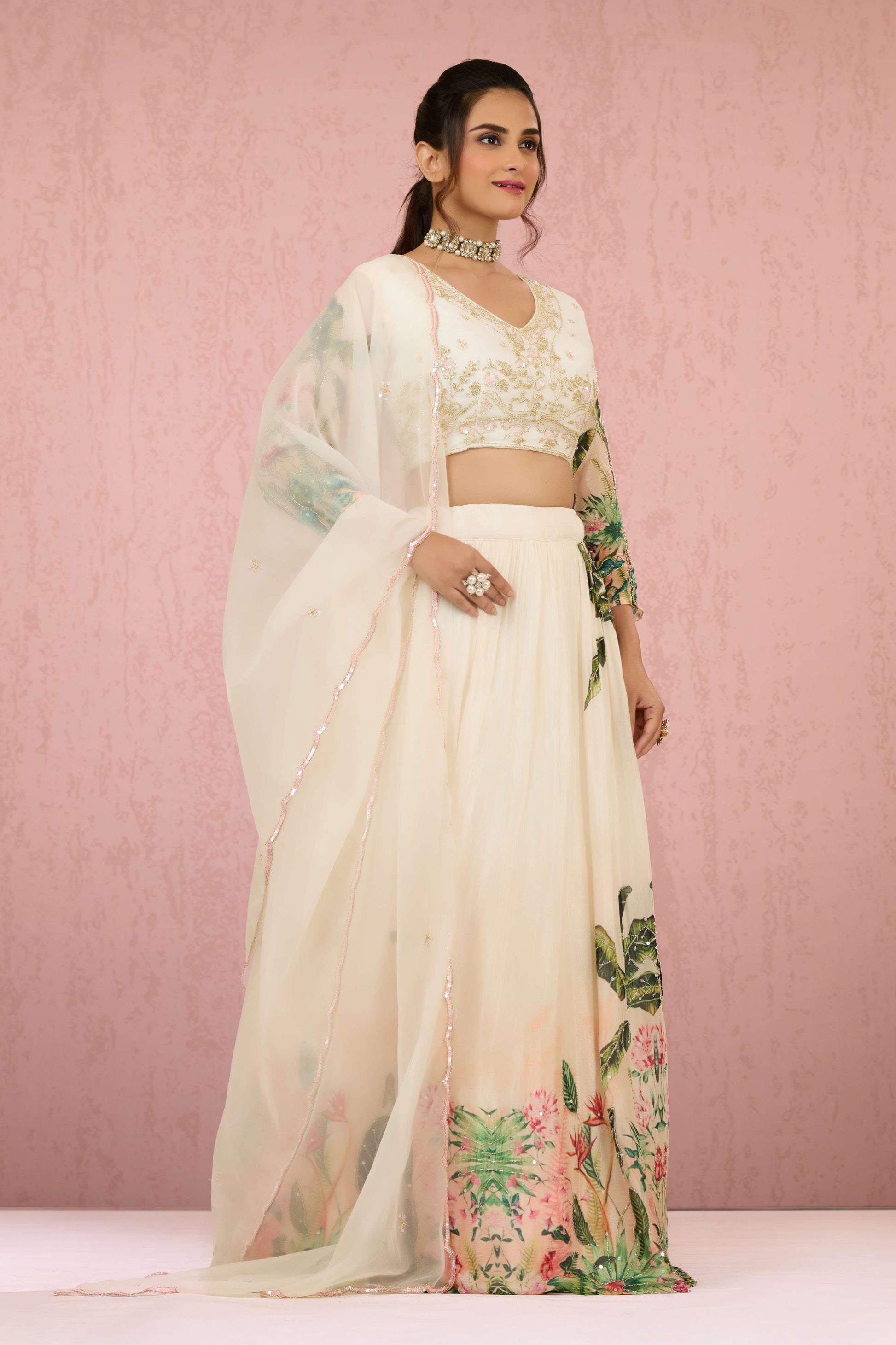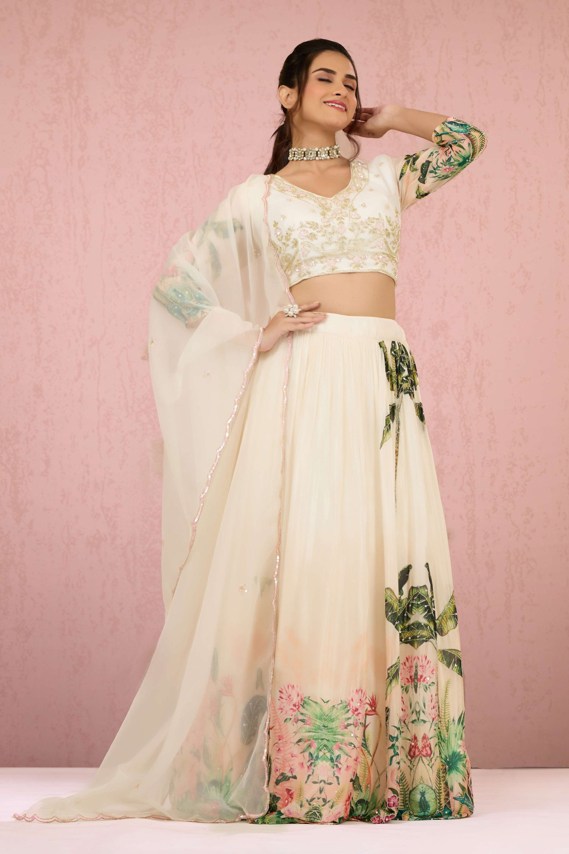 Cream Sequins Chinon Readymade Lehenga 1014-10075