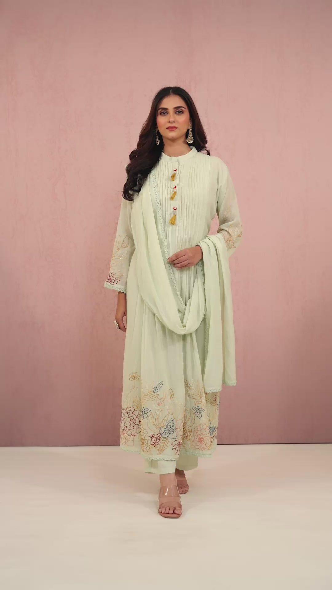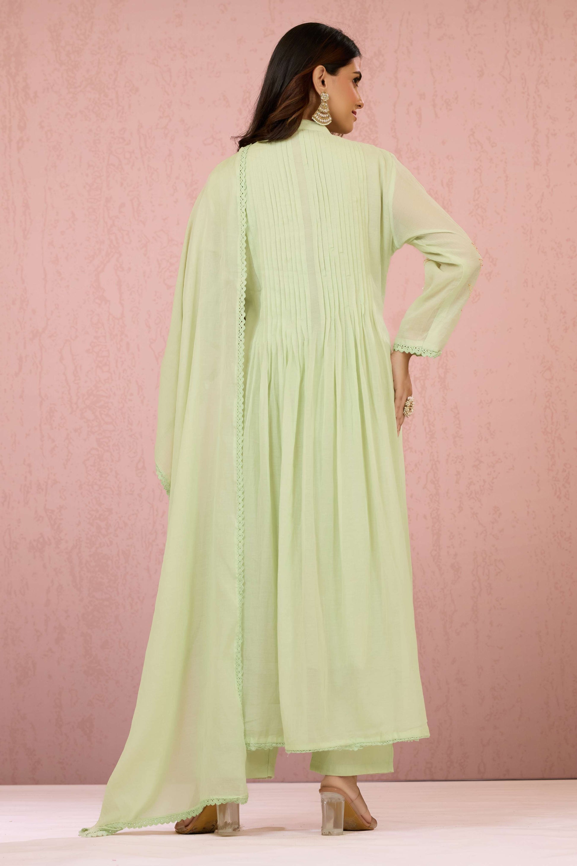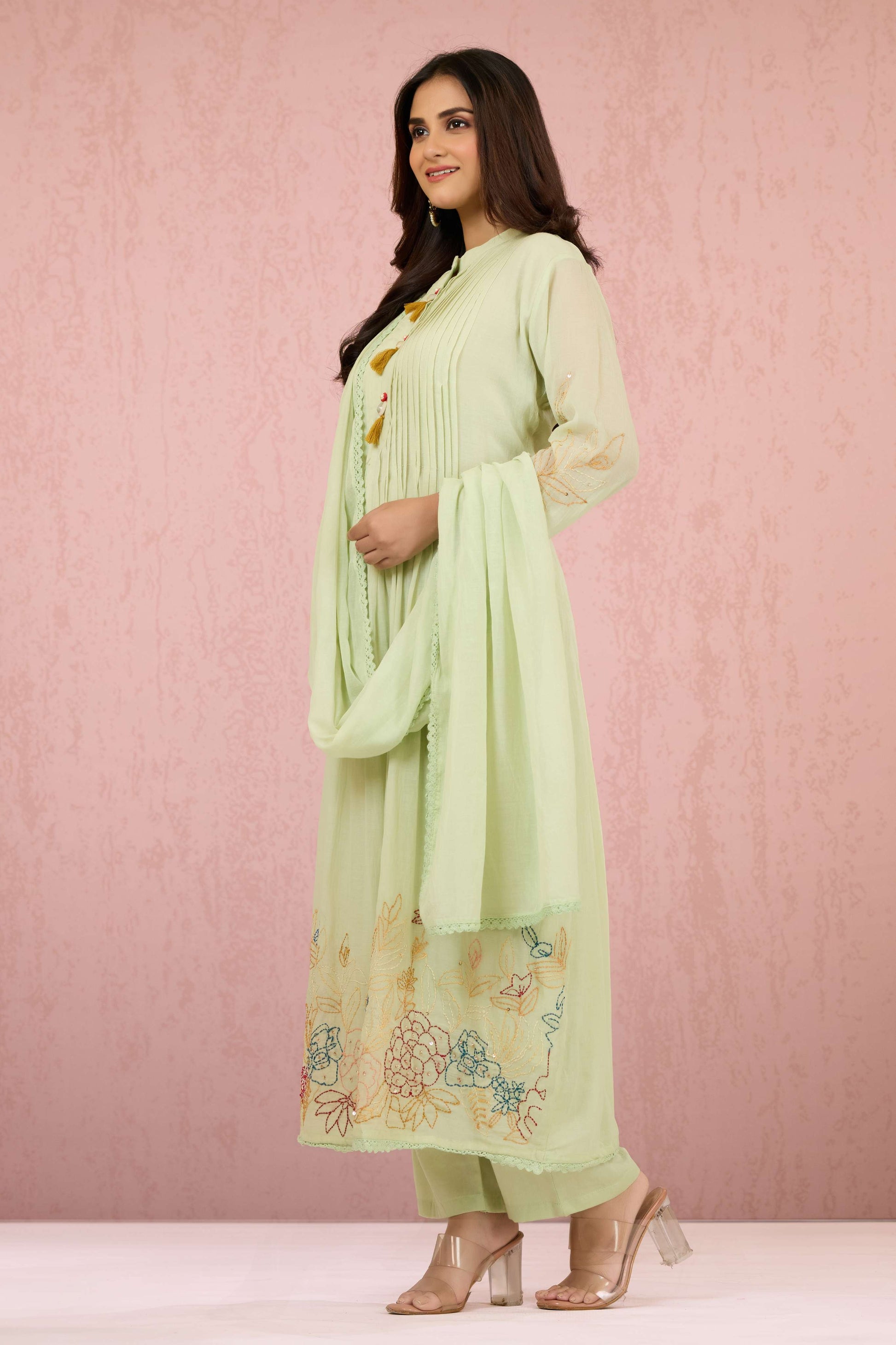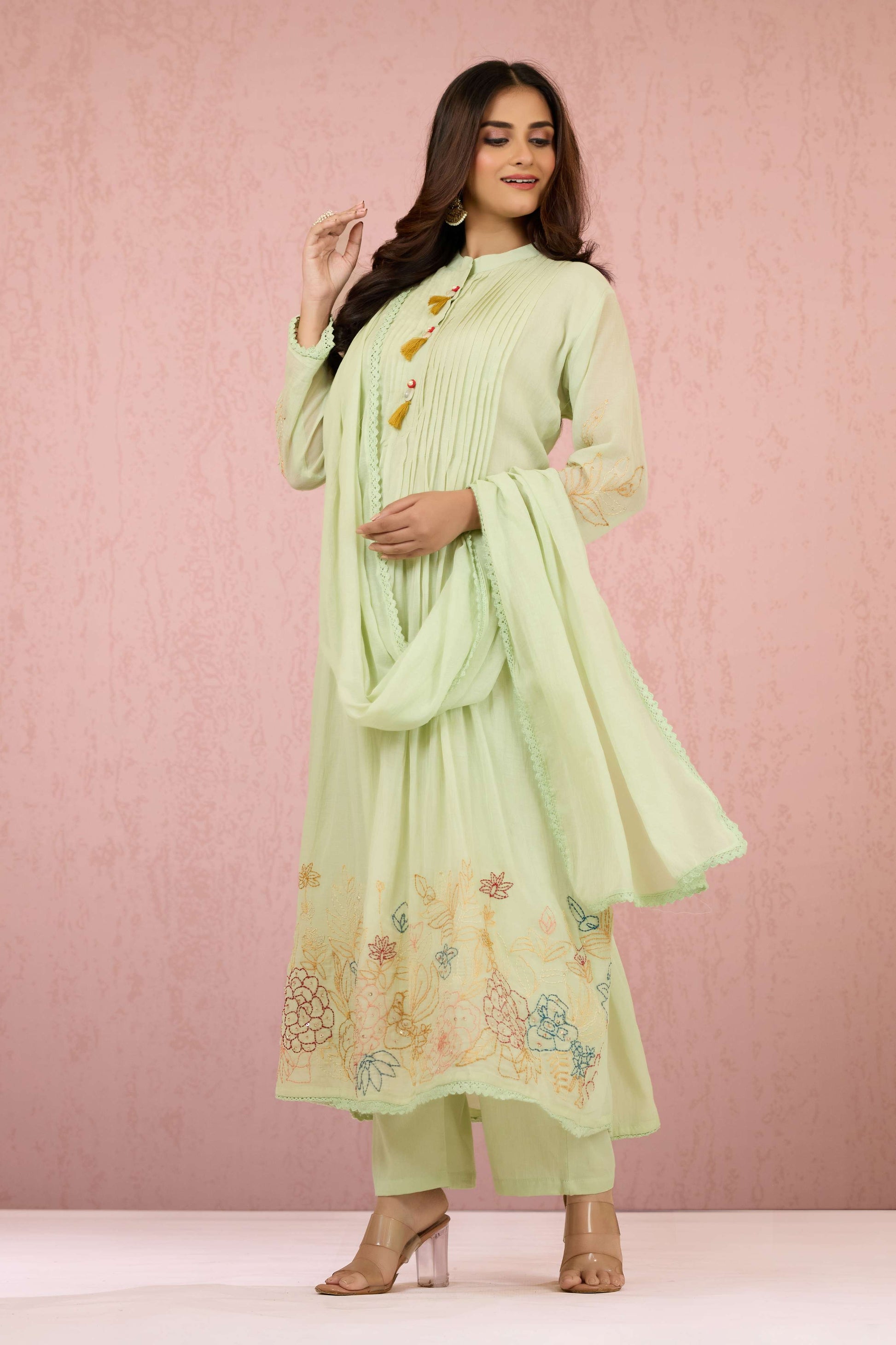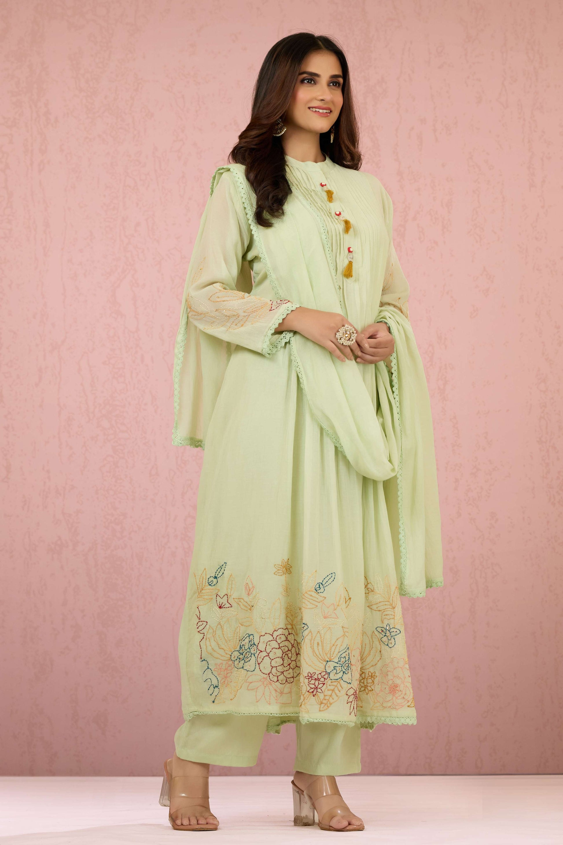 Green Kantha work Mul Chanderi Salwar Suits 1014-10072
