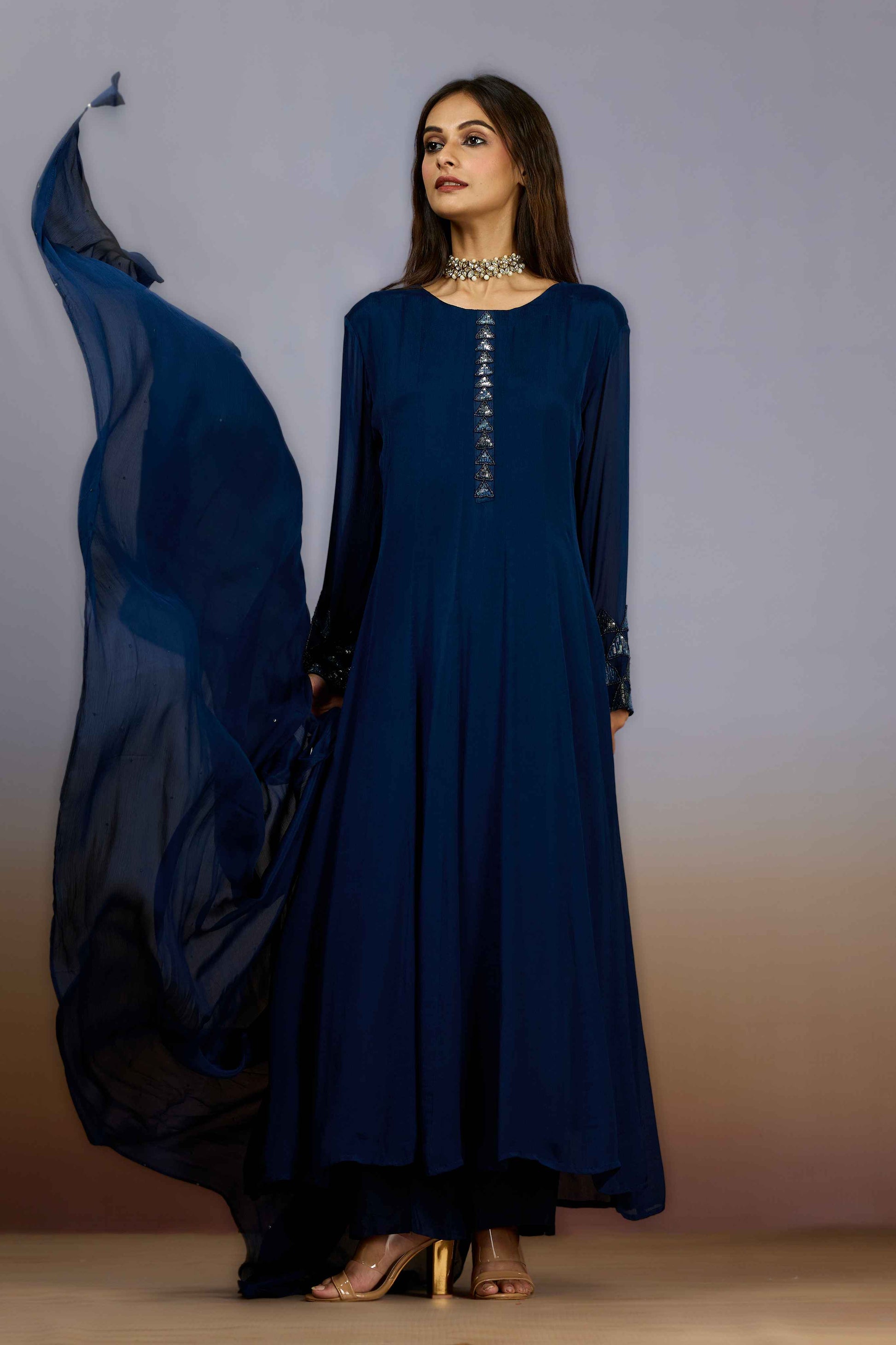 This Blue Sequins Chinon Salwar Suit by Shreyshree showcases expert craftsmanship with its shimmering sequin embellishments on soft Chinon fabric. Designed for both style and comfort, the suit offers a striking yet elegant appearance, perfect for evening events and celebrations. Its vivid blue hue and subtle sparkle make it a distinguished choice for those seeking refined traditional wear.