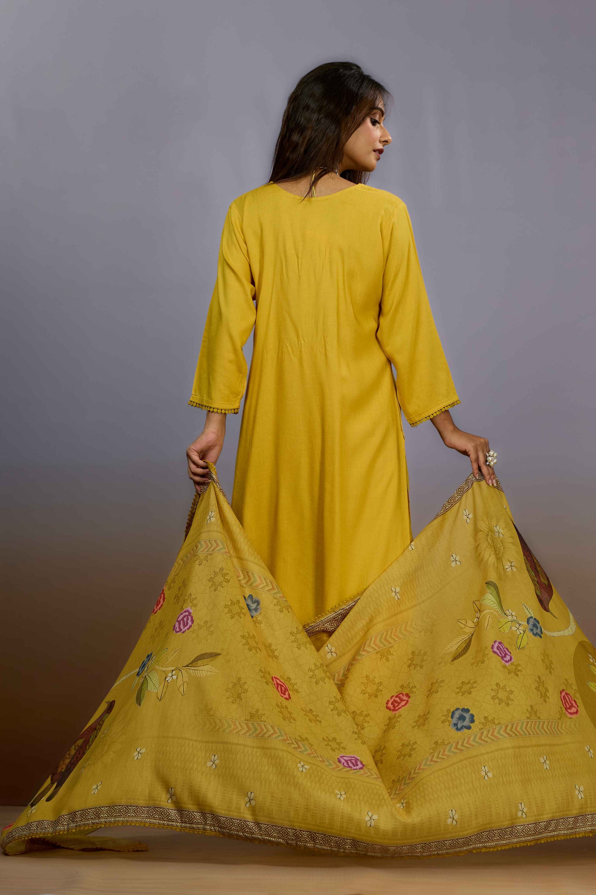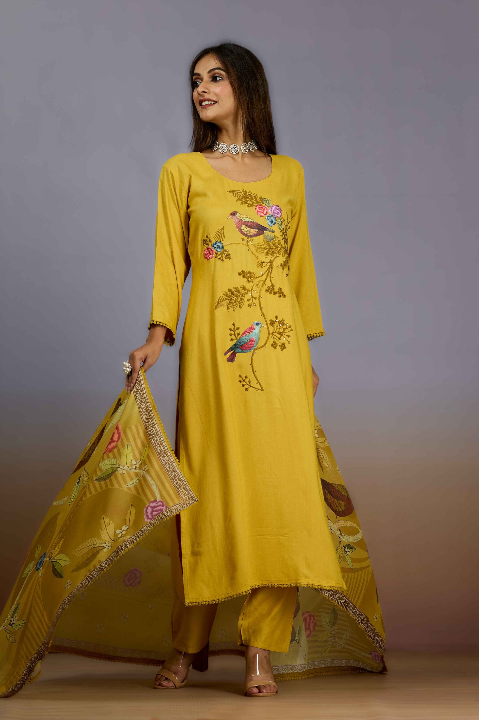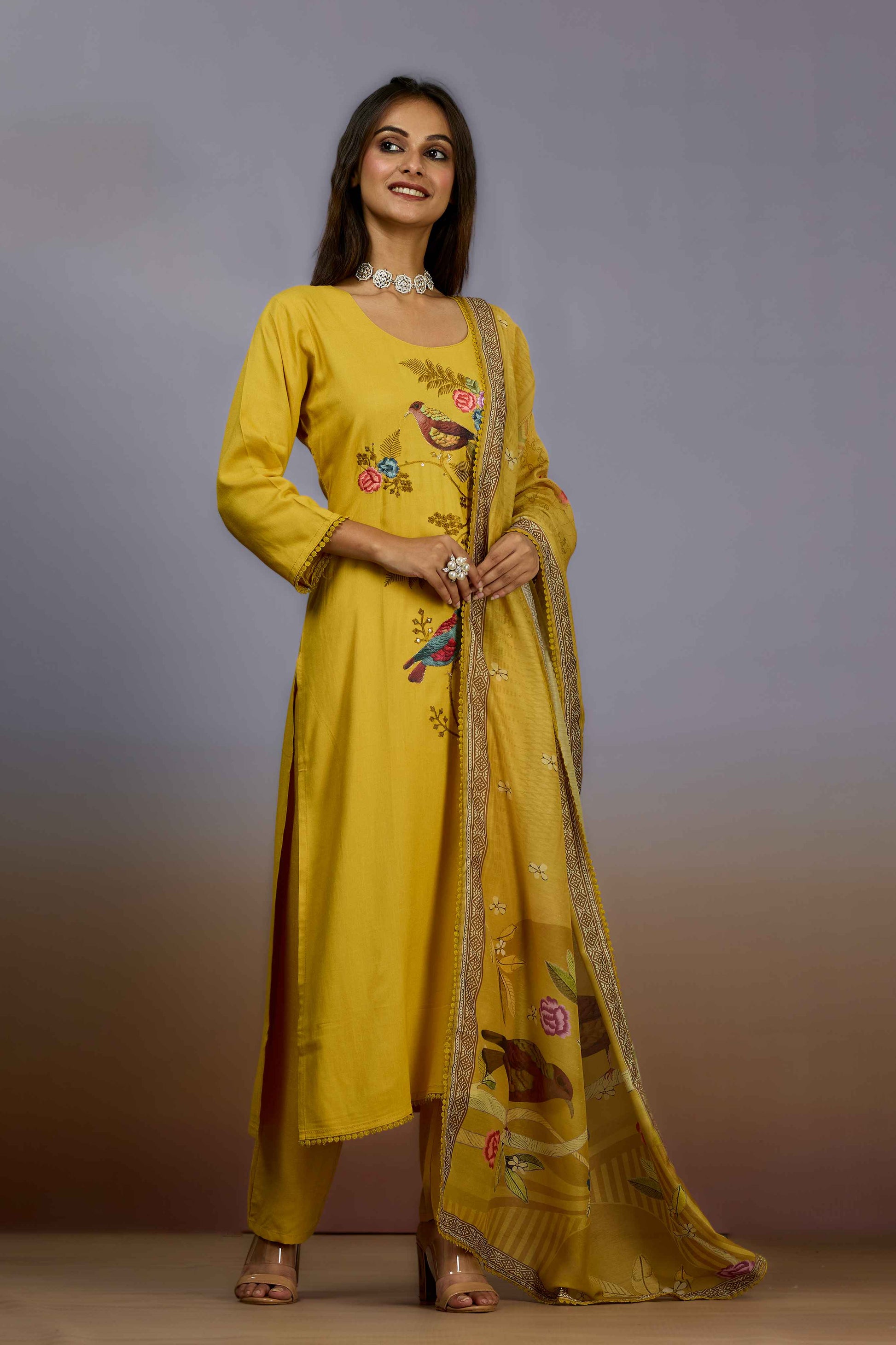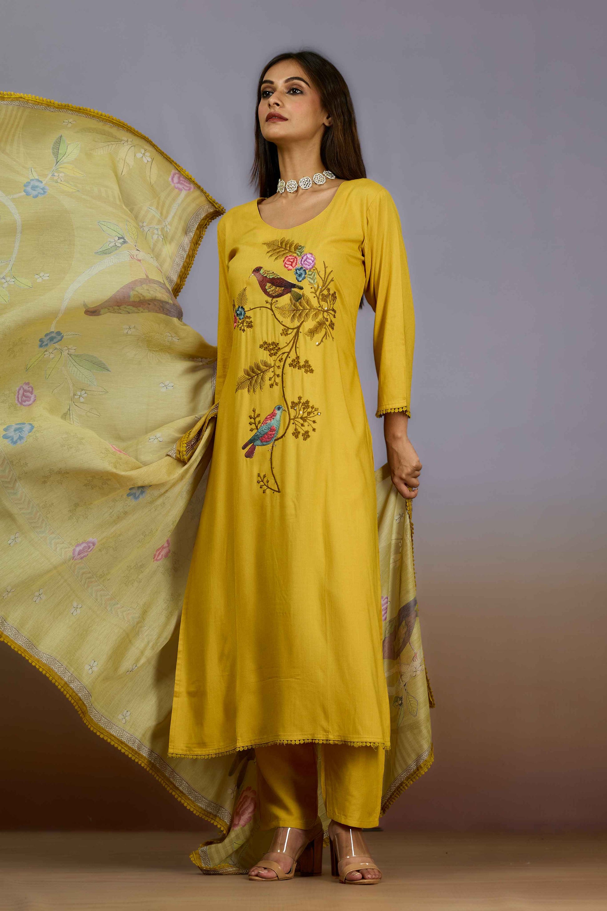 The Yellow Sequins Cotton Salwar Suit by Shreyshree combines breathable cotton fabric with subtle sequin embellishments, offering a perfect balance of comfort and elegance. Expertly crafted, this suit is ideal for daytime events and festive occasions where style and ease are essential.