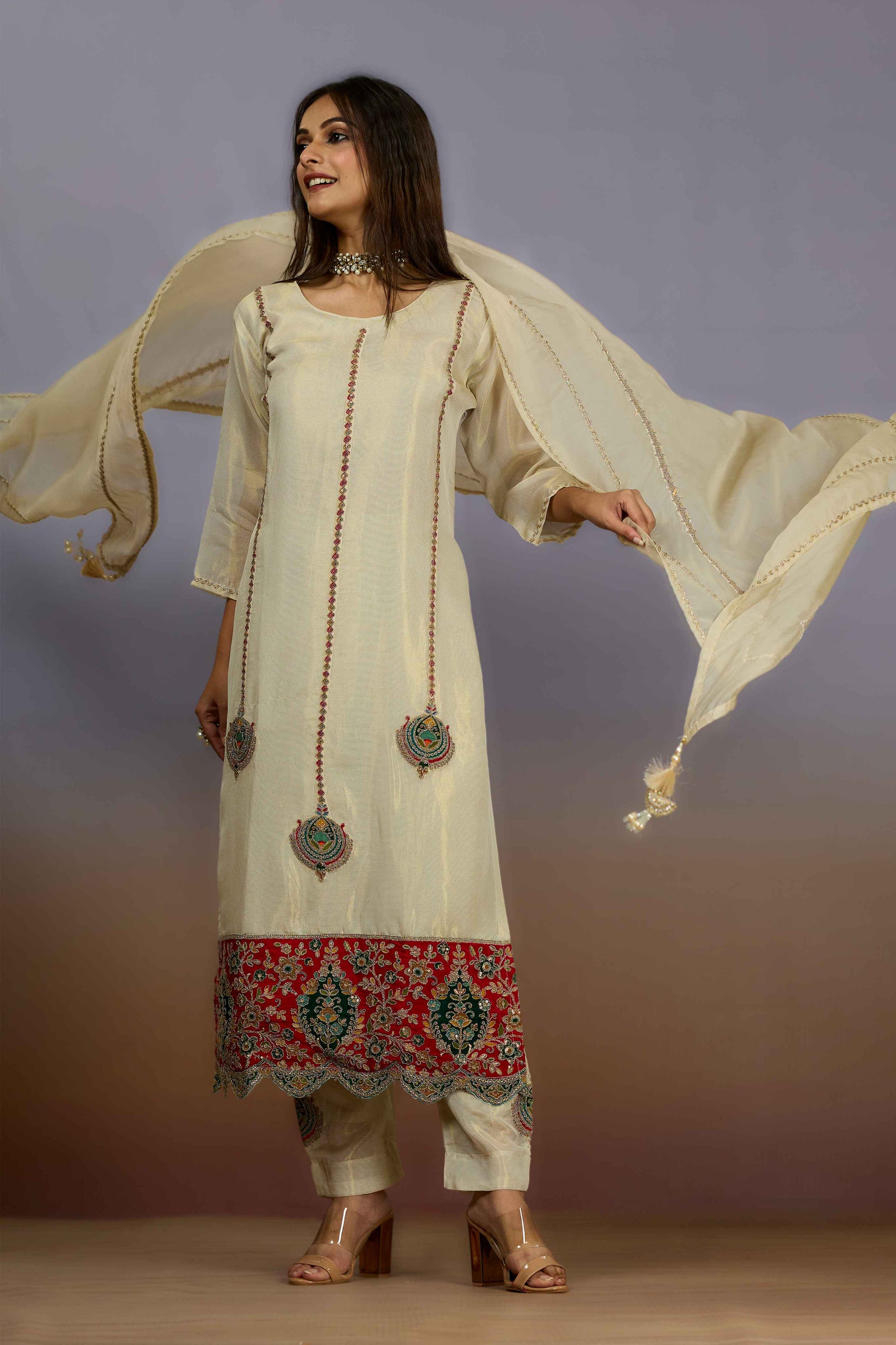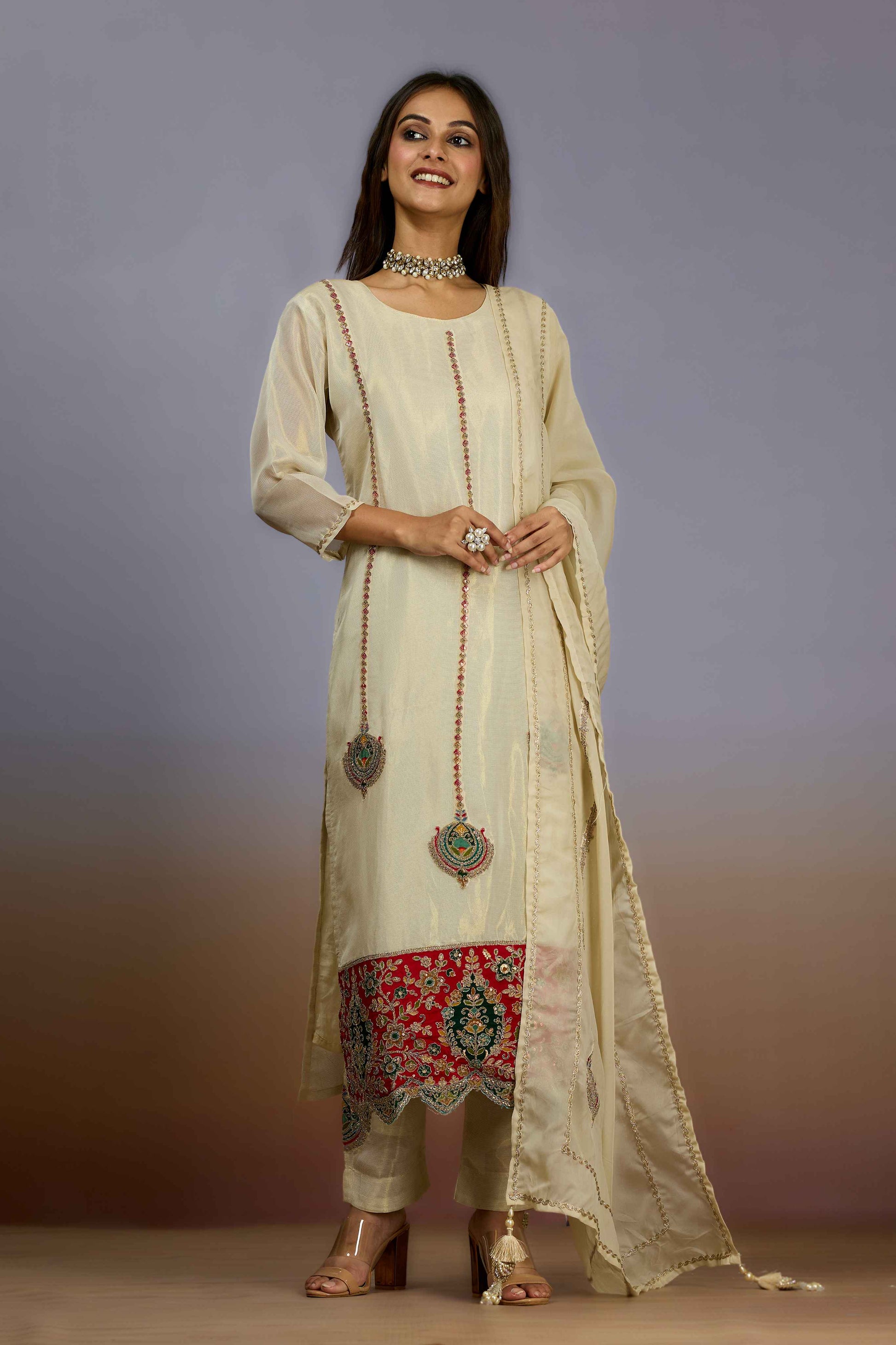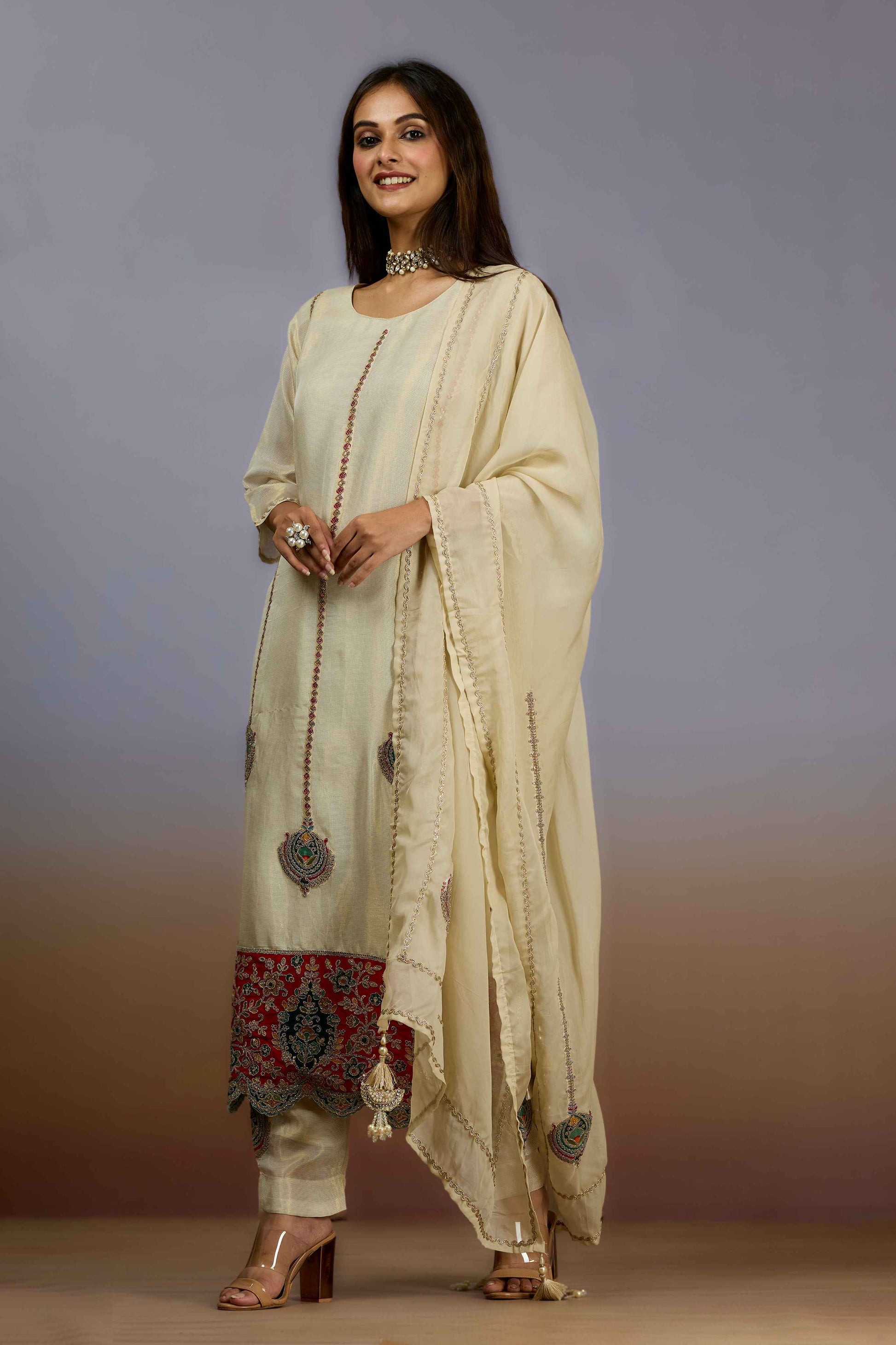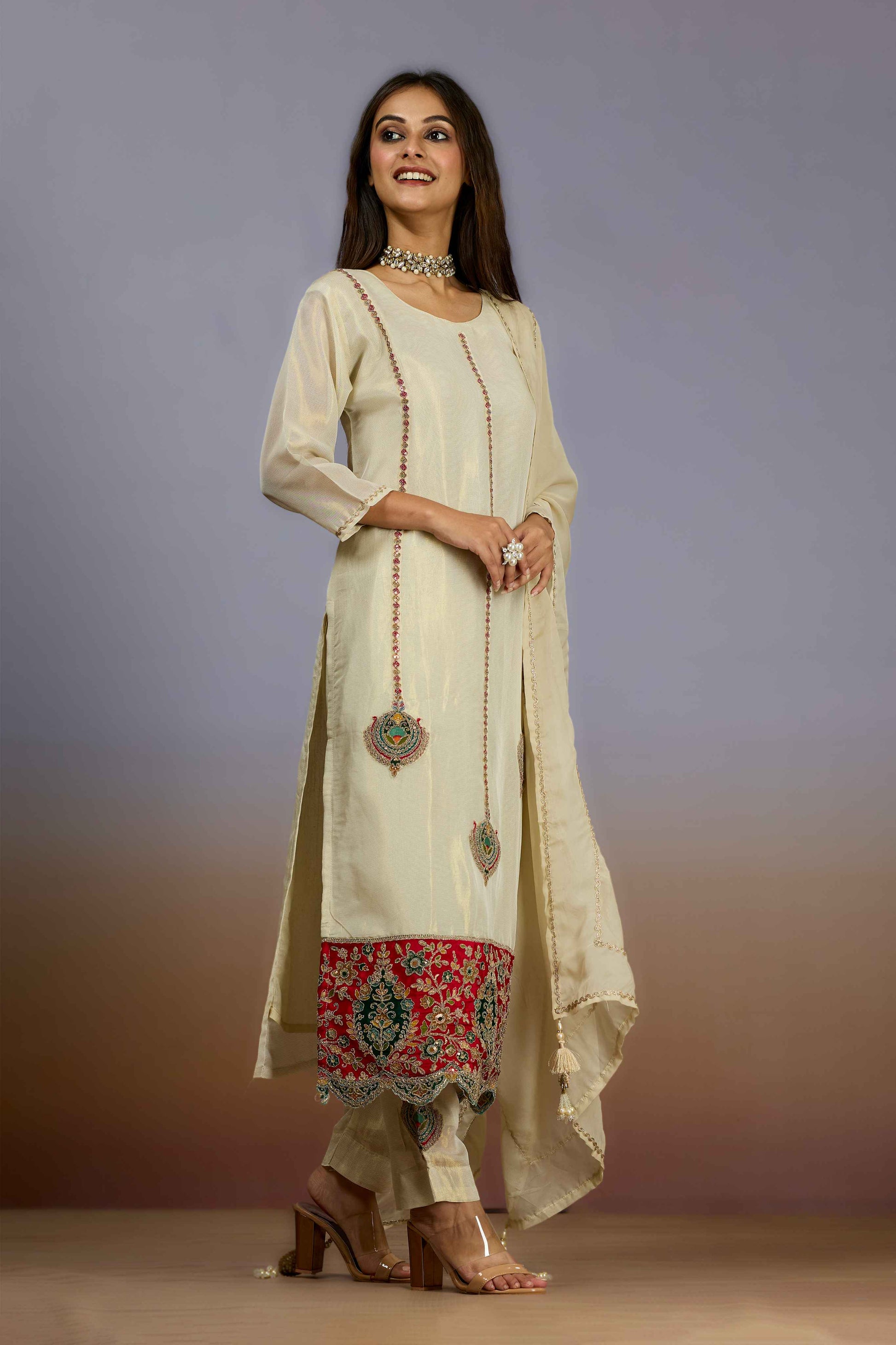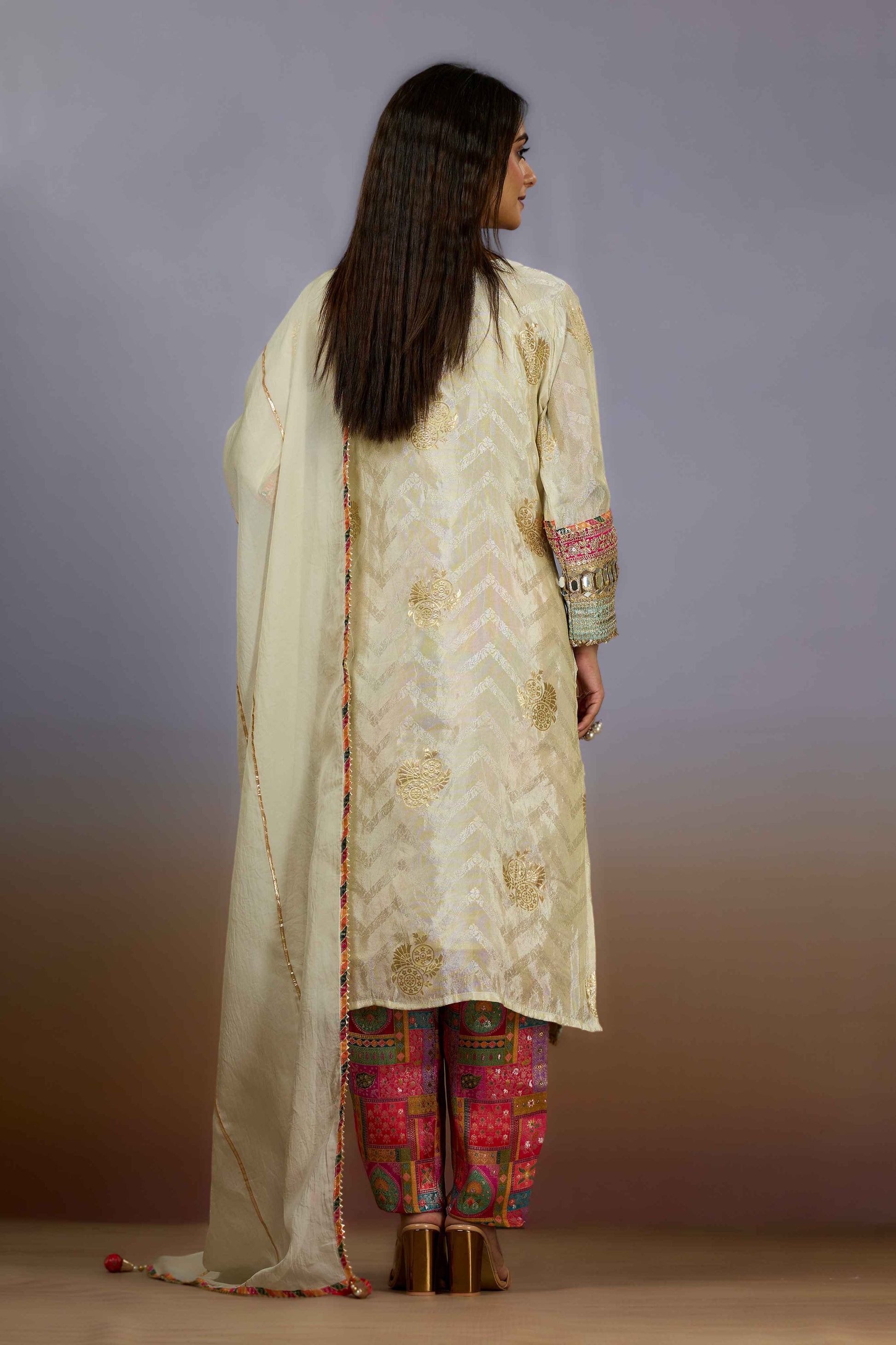Cream Zariwork Tissue Salwar Suits 1019-10112