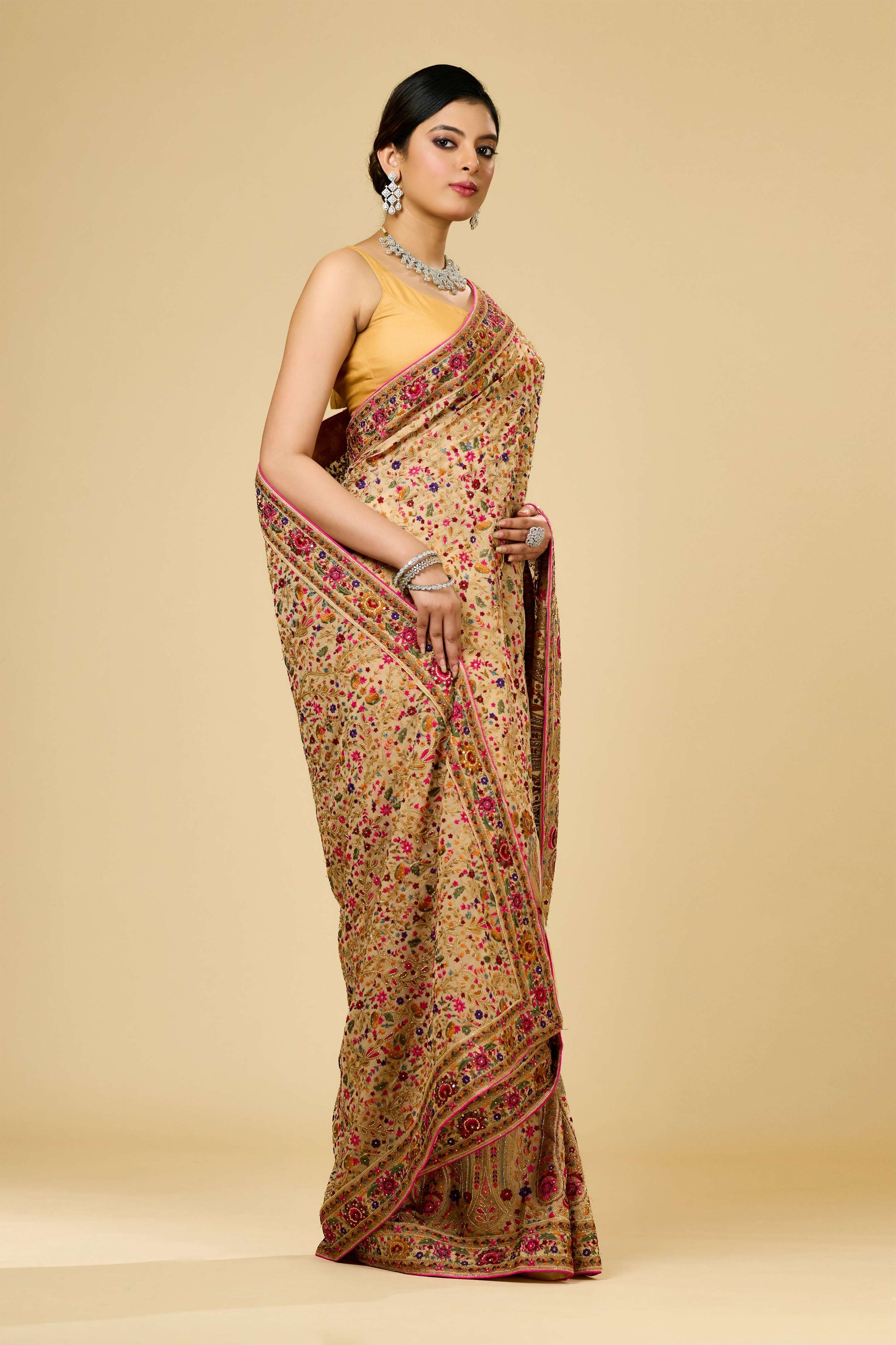 Beige Kashmiri Georgette Sarees 1007-10002