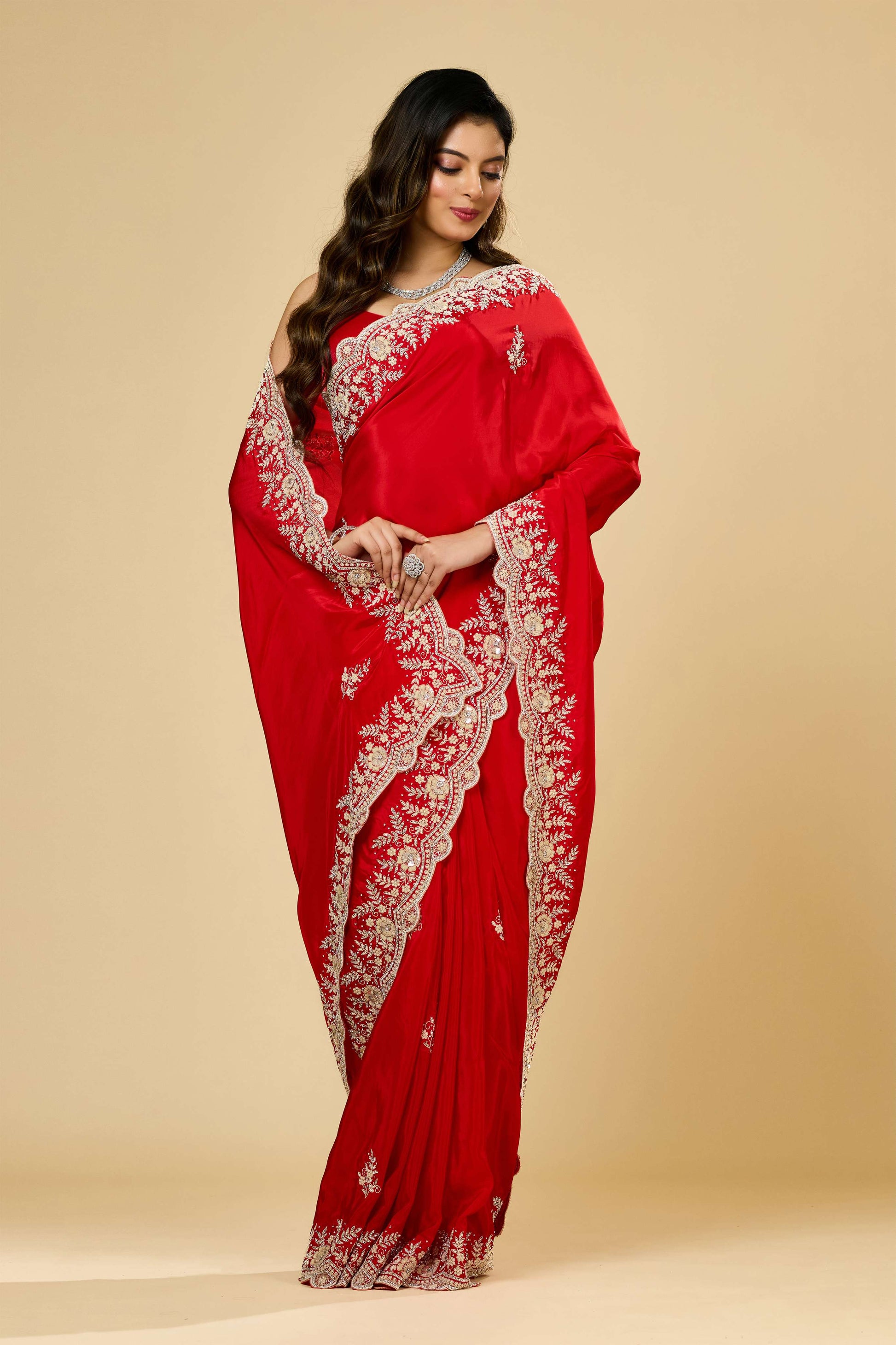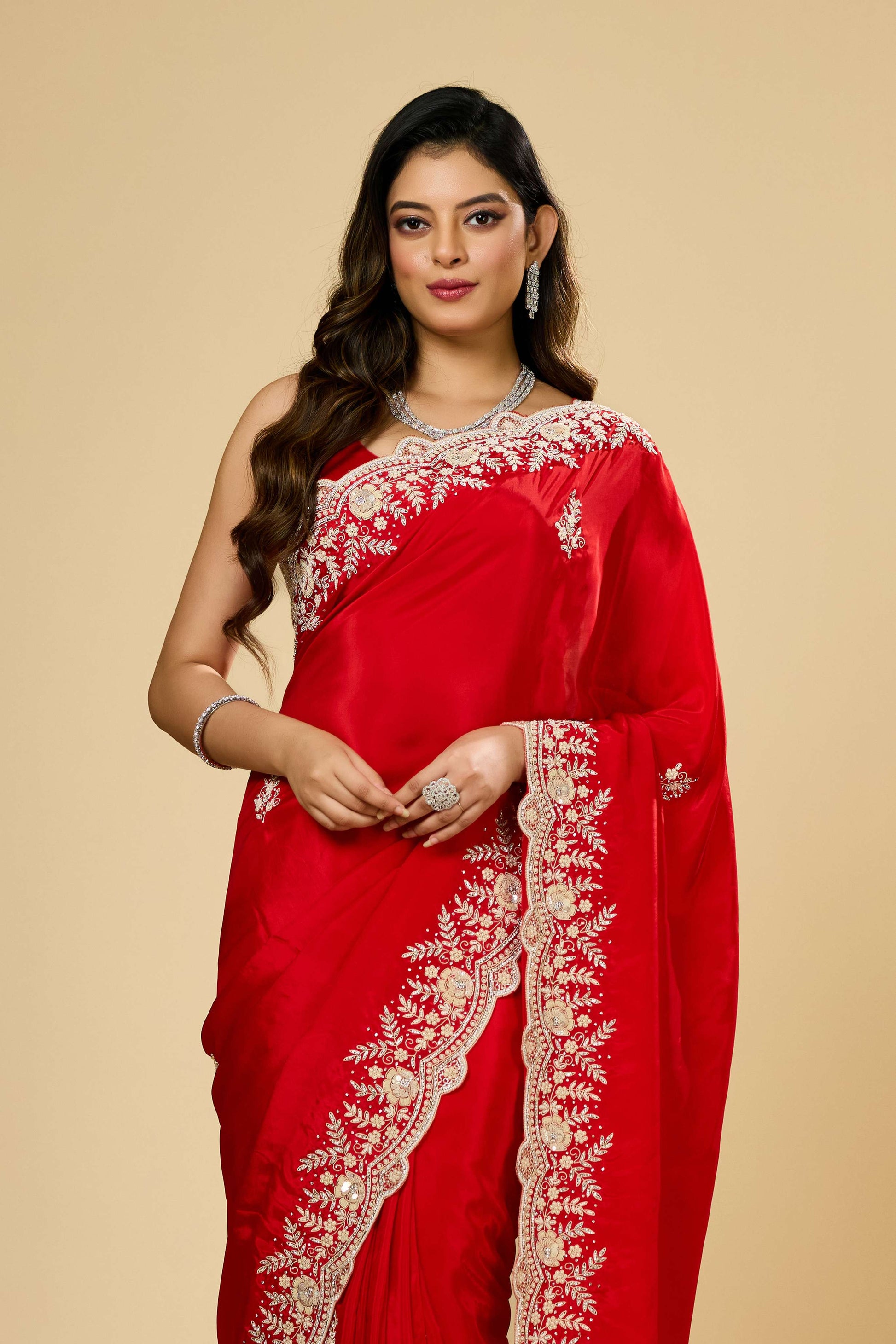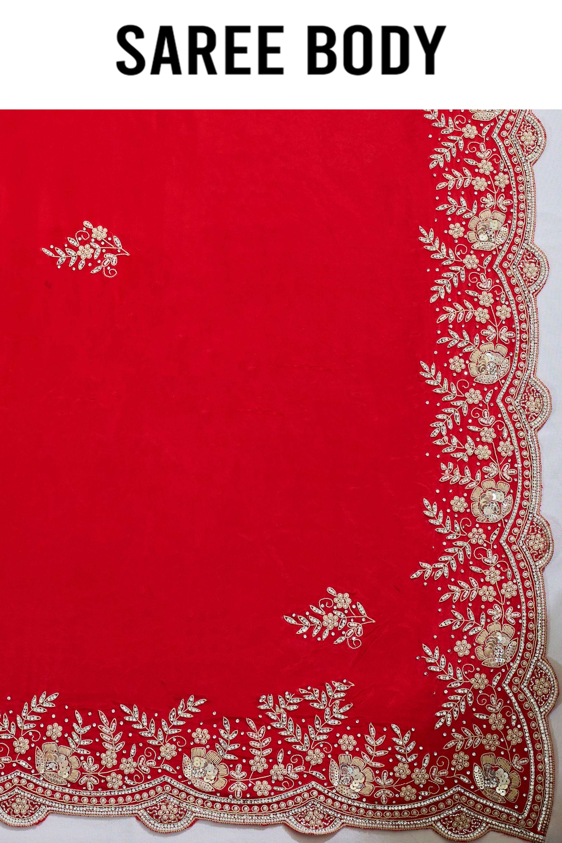 Red Pearlwork Semi crepe Sarees 1007-10005