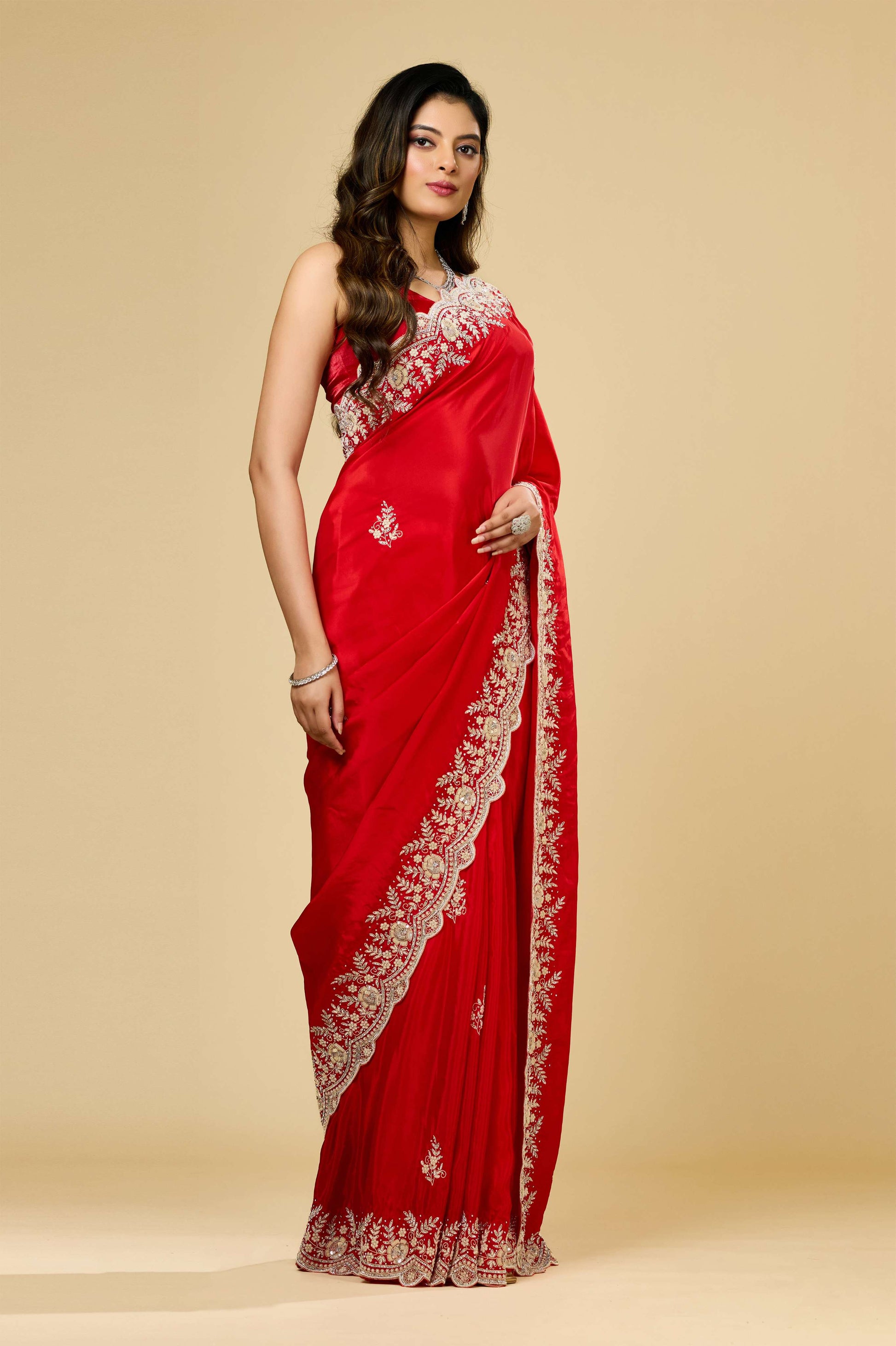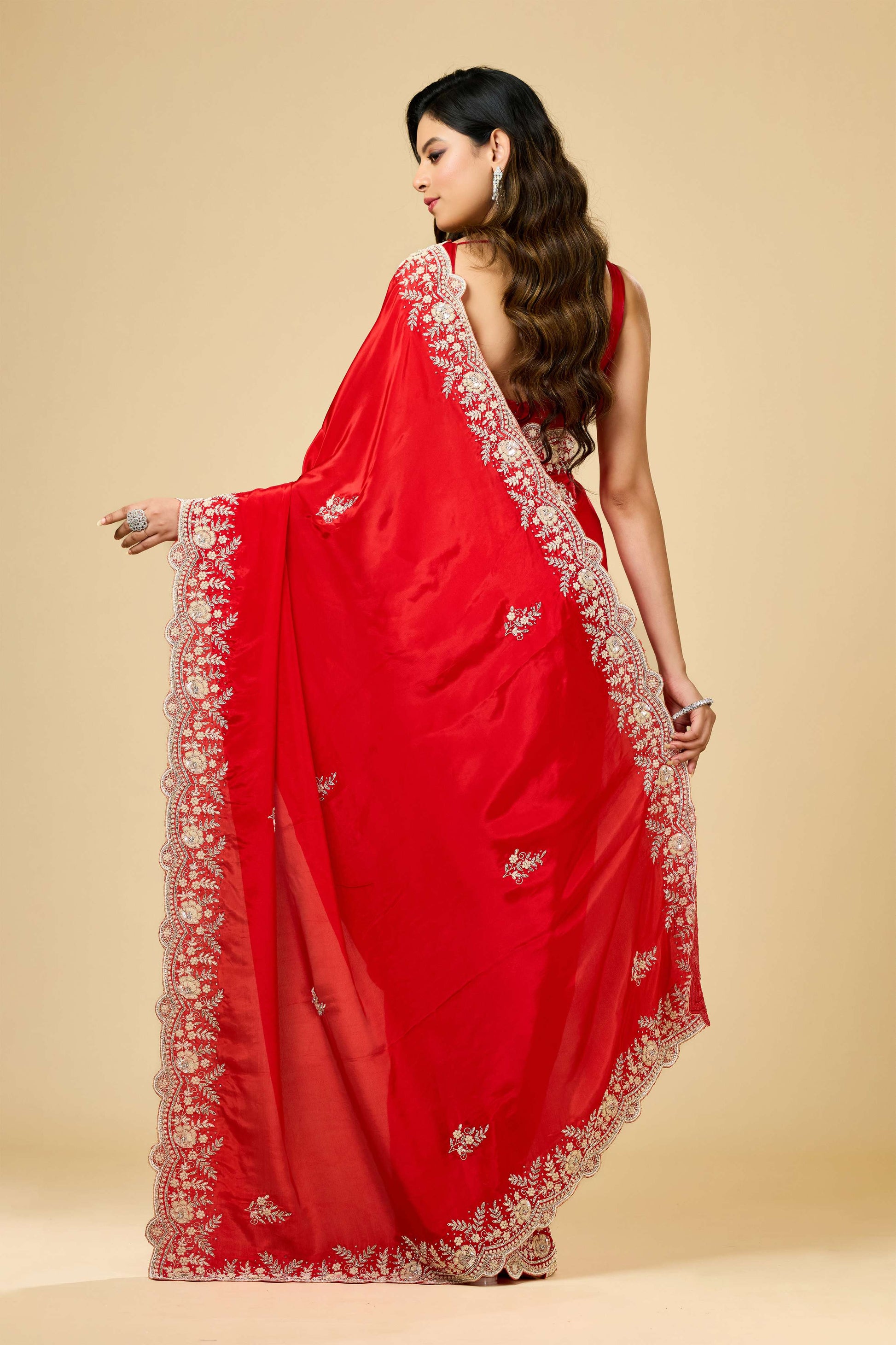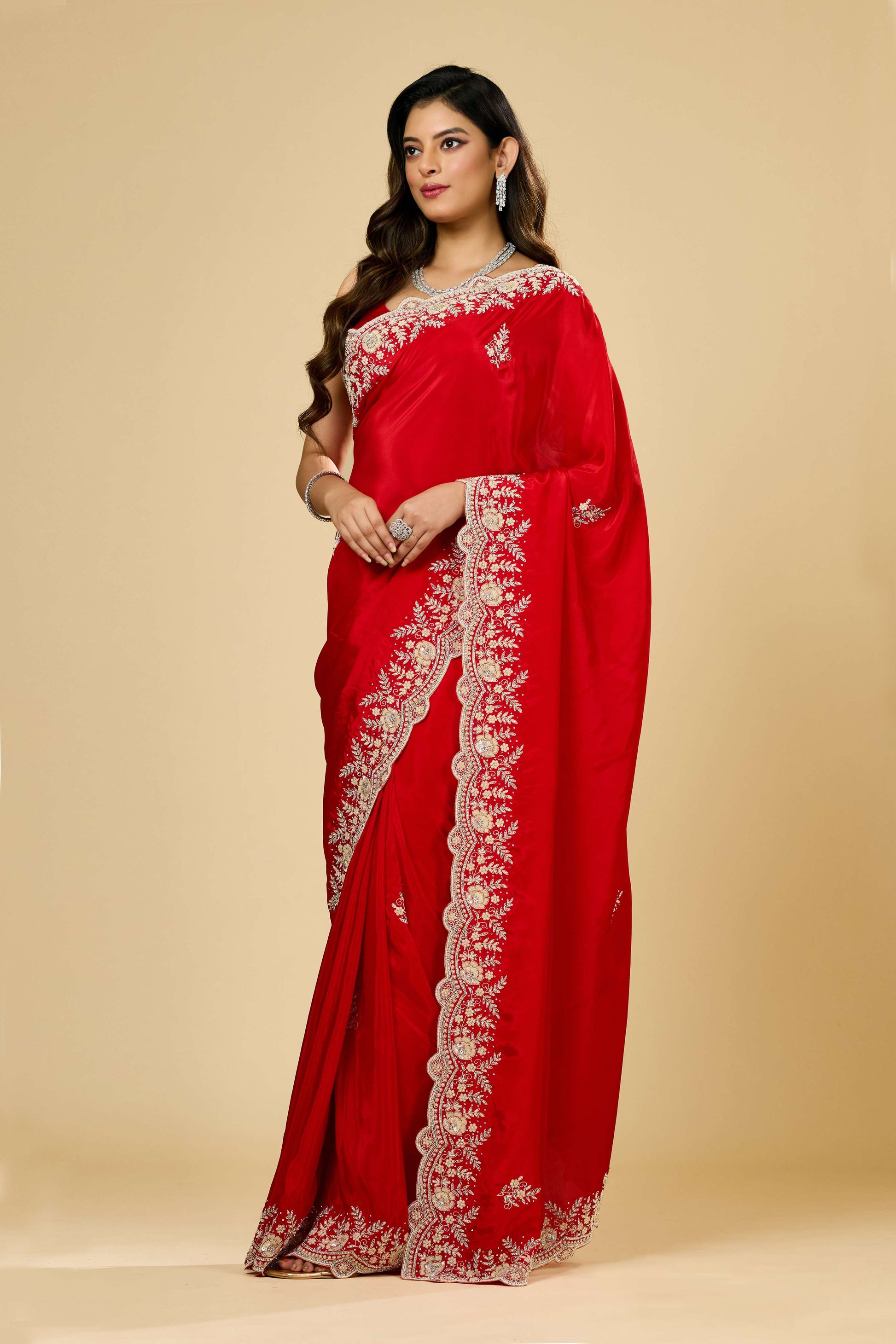 Red Pearlwork Semi crepe Sarees 1007-10005