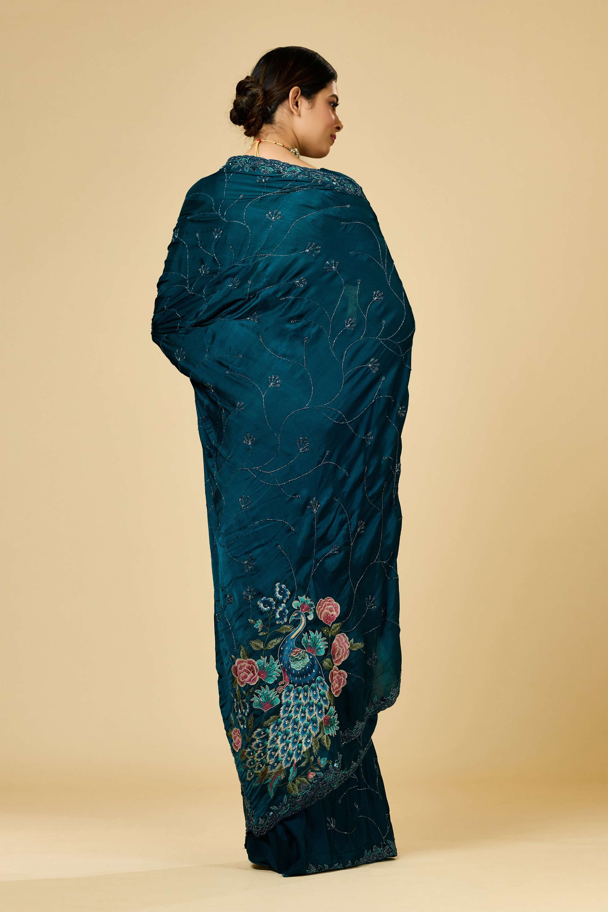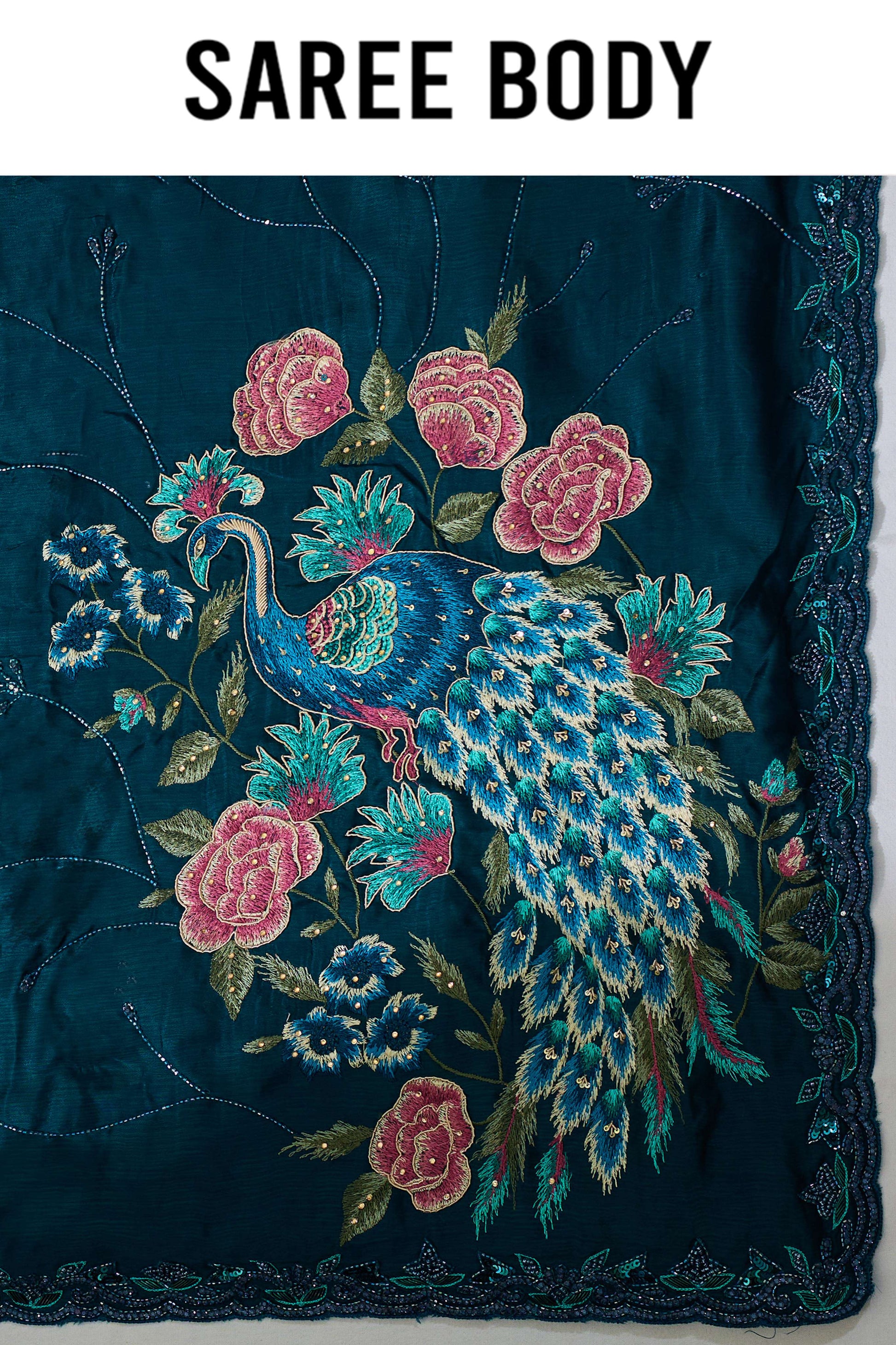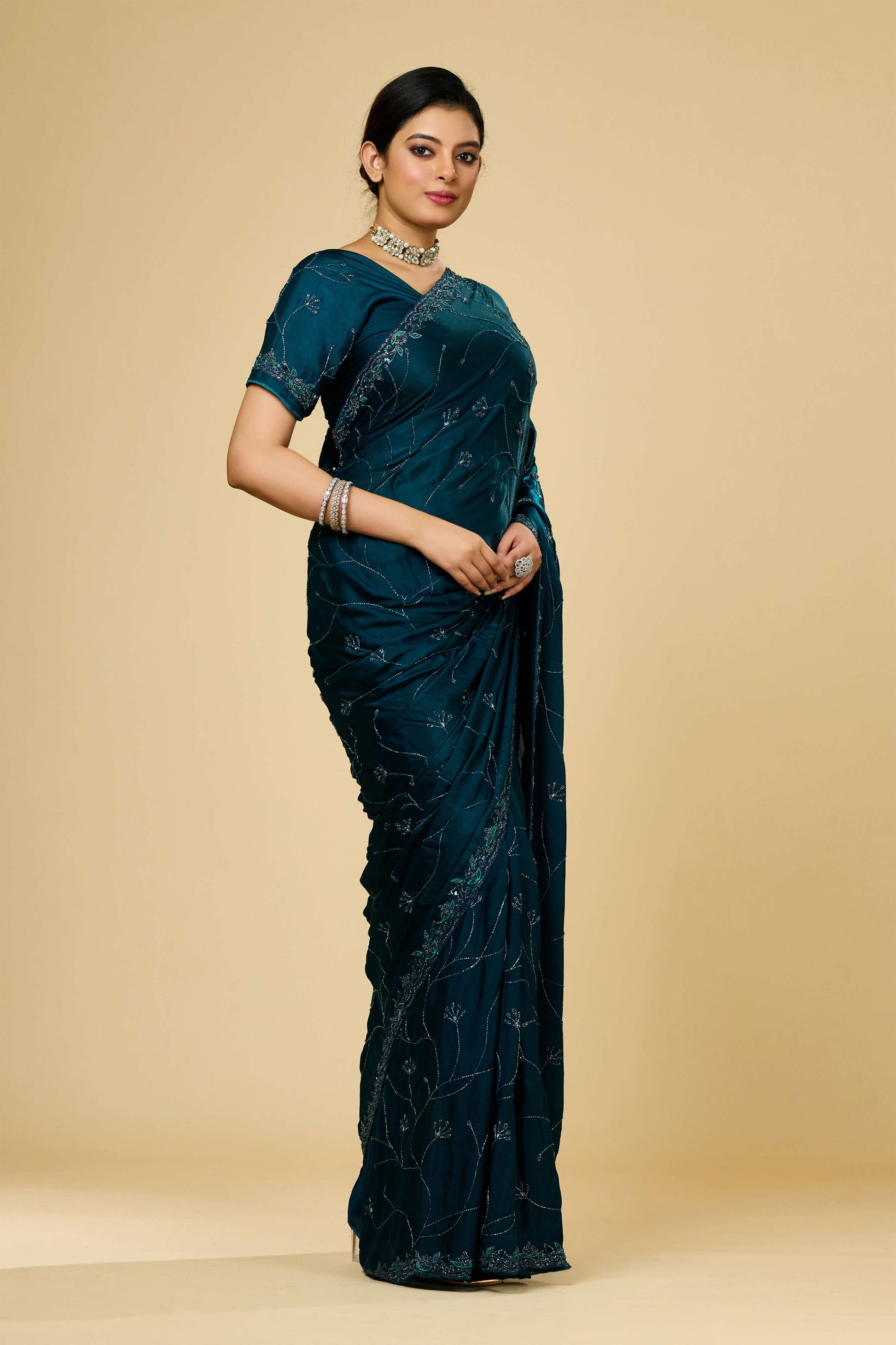 Indulge in the refined elegance of Indigo Embroidery Chinon Sarees by Shreyshree, crafted from smooth Chinon fabric known for its lightweight and flowing drape. The intricate indigo embroidery adds a rich texture and artistic detail, elevating the saree’s sophisticated appeal. Perfect for formal events and celebrations, this saree combines comfort with exquisite craftsmanship, embodying timeless style and expert design.