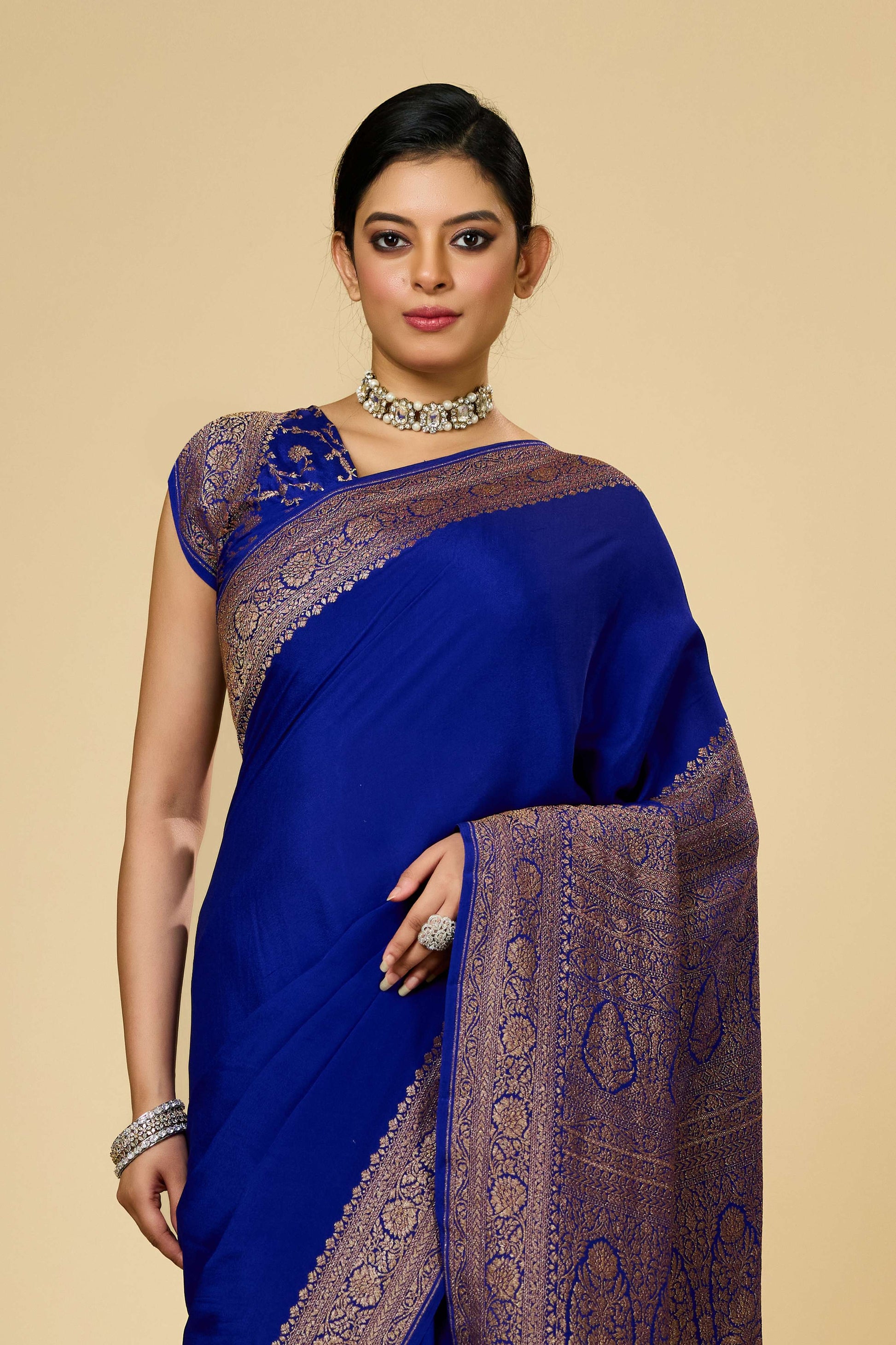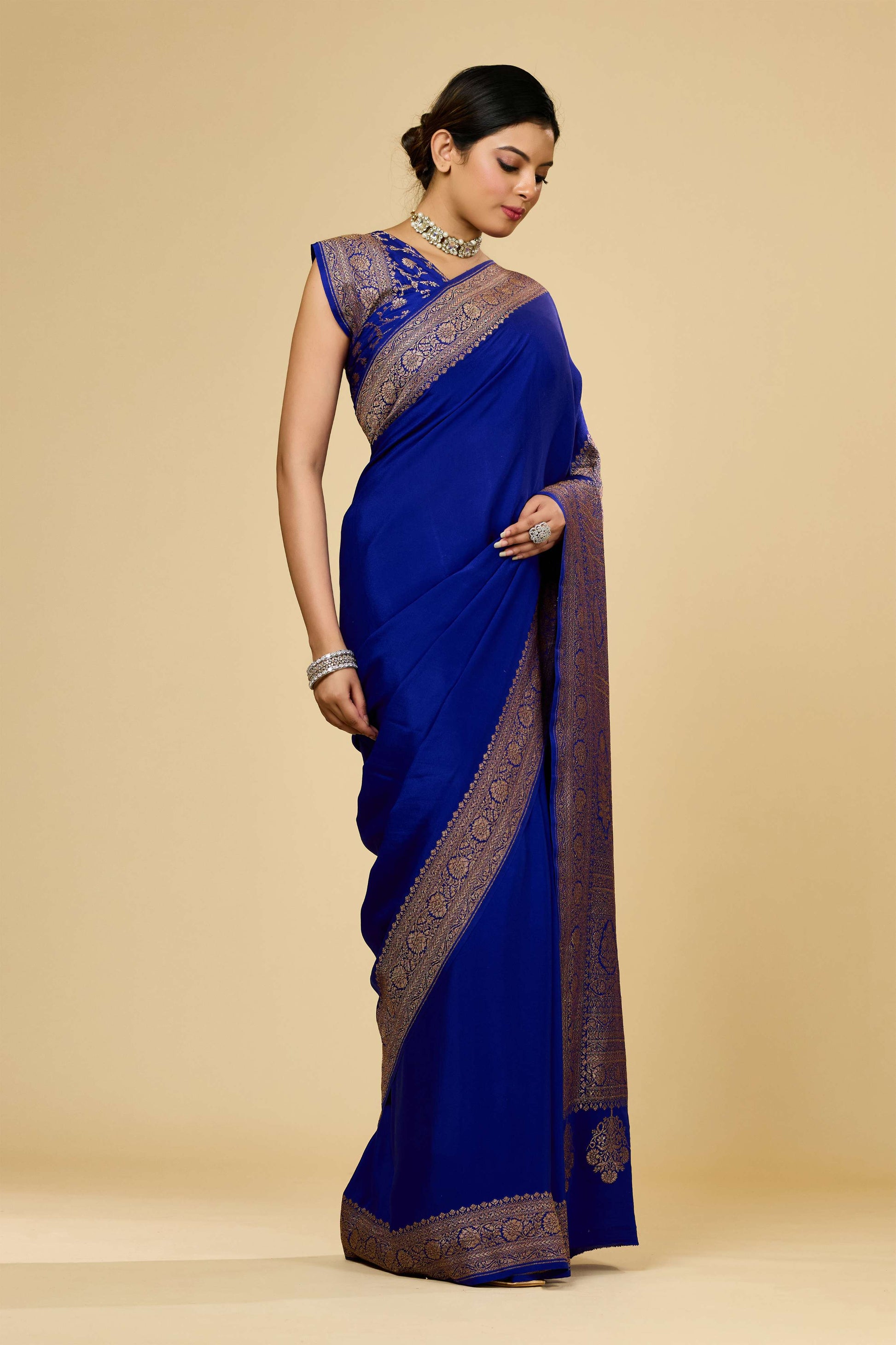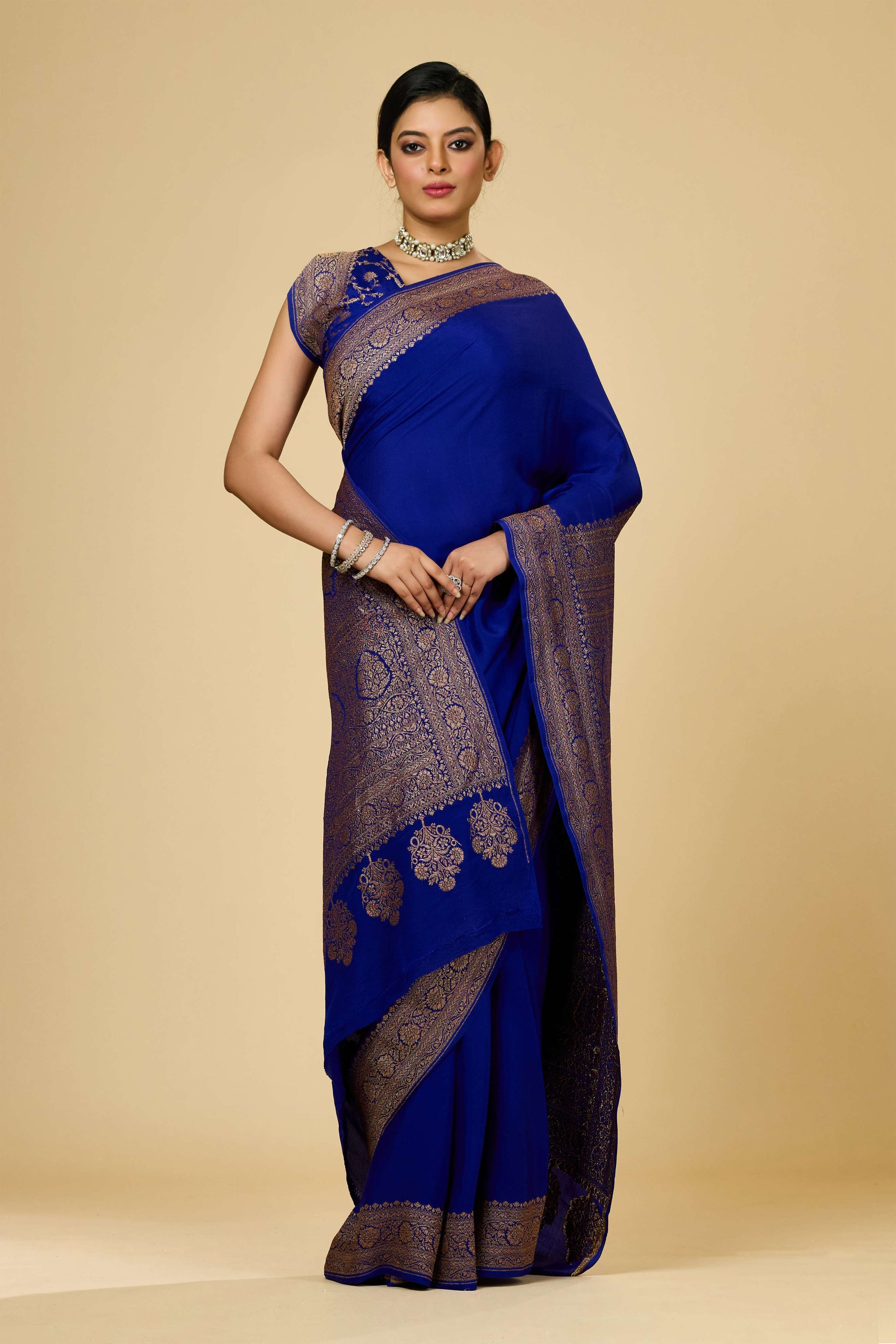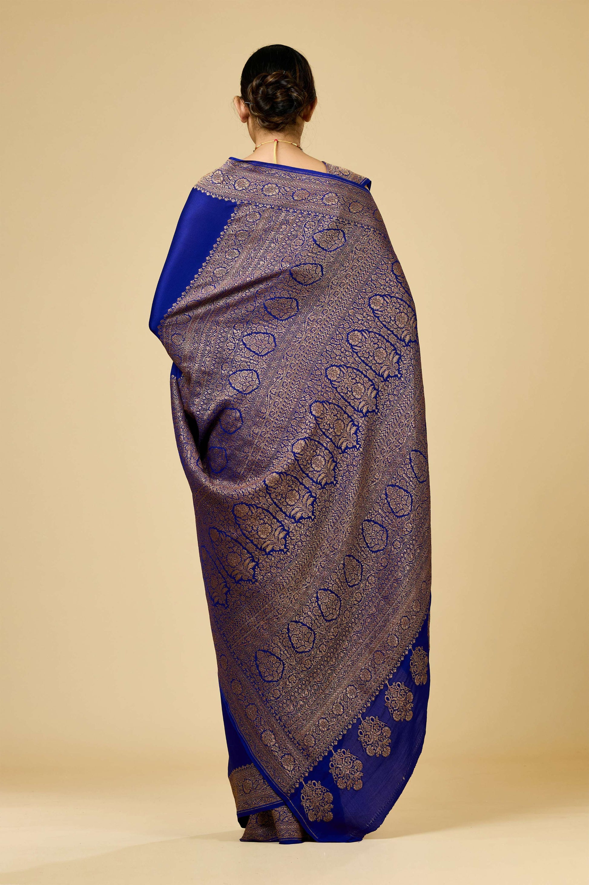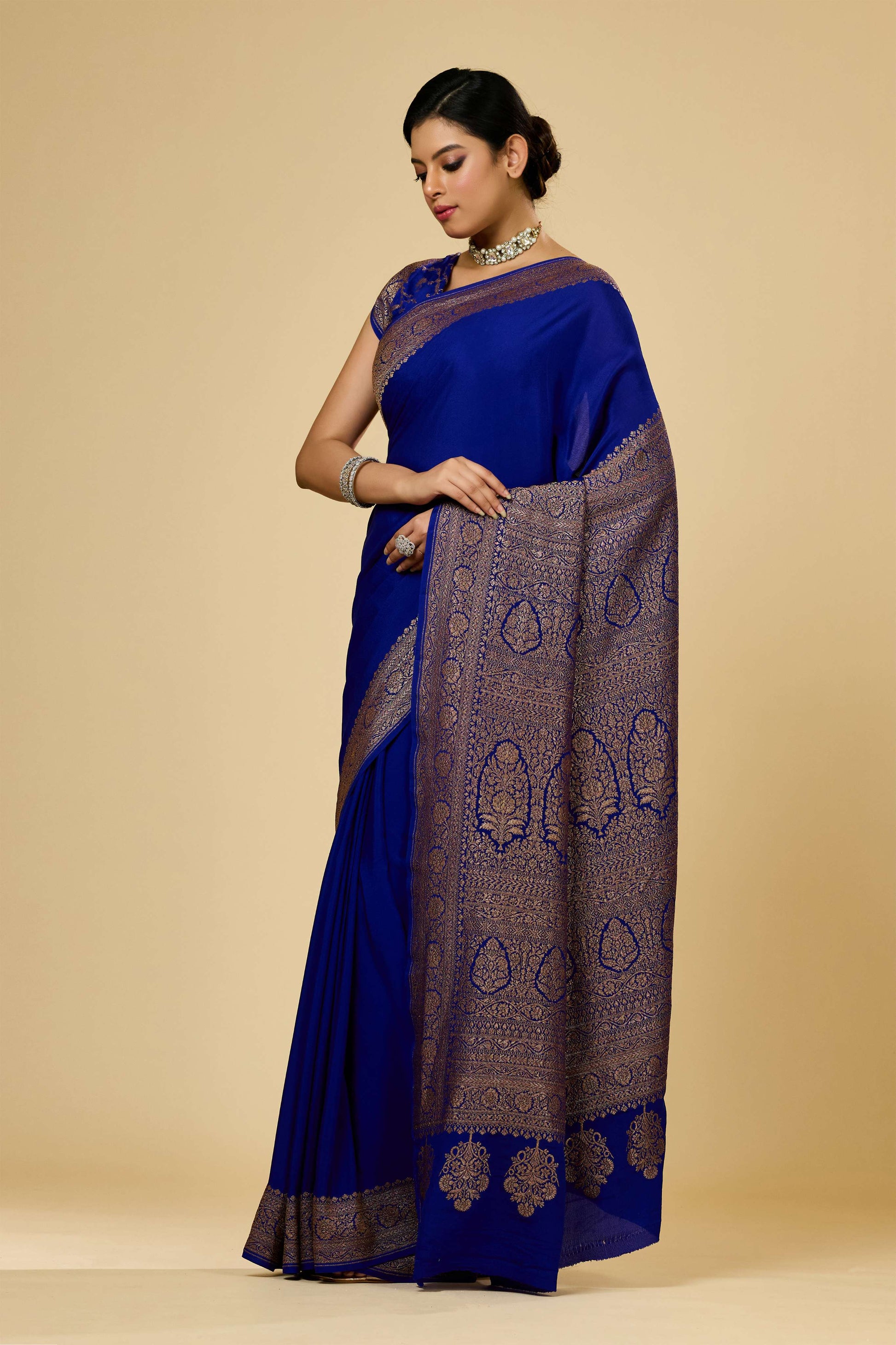 Blue Antique Zari weave Khadi semi crepe Sarees 1010-10026