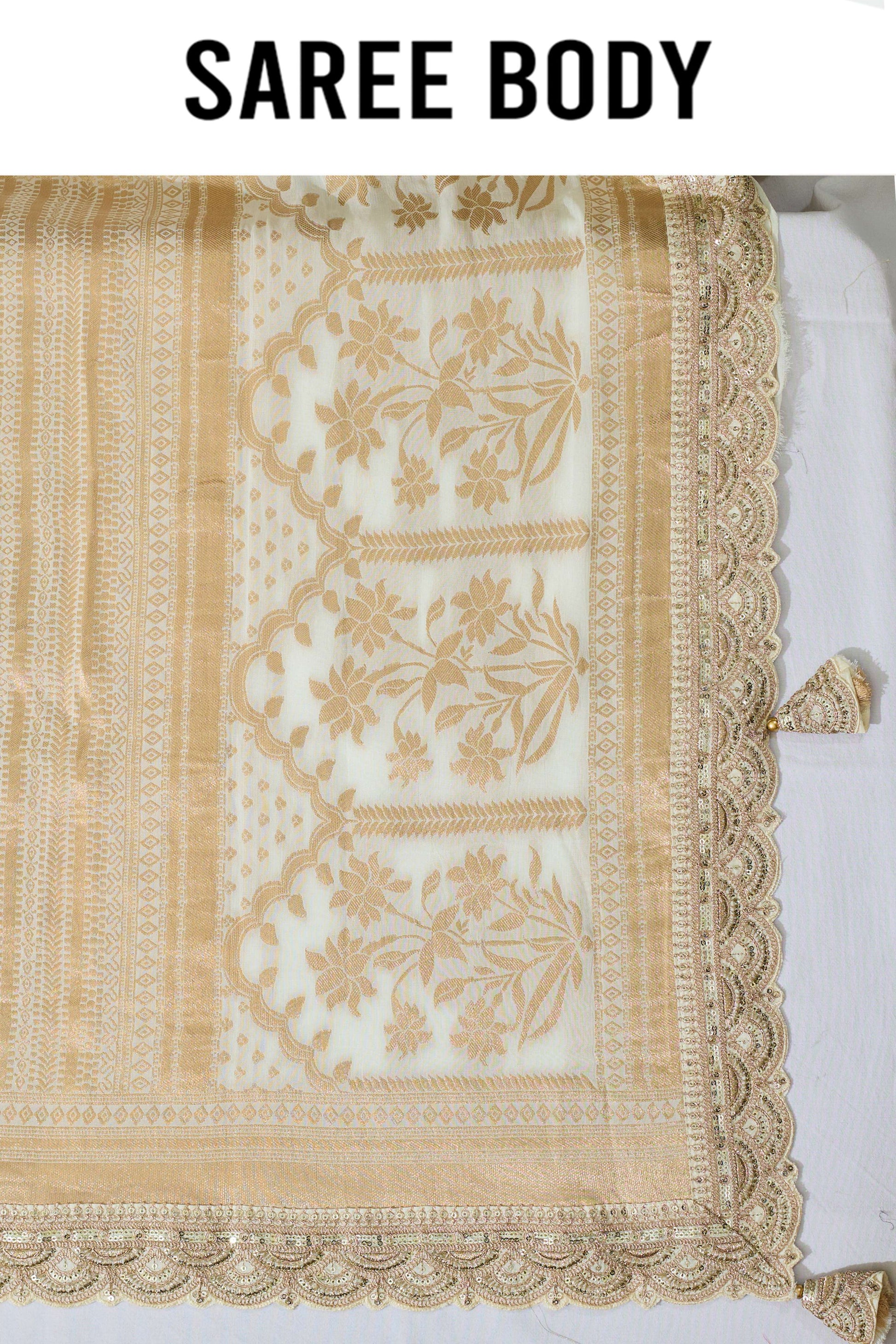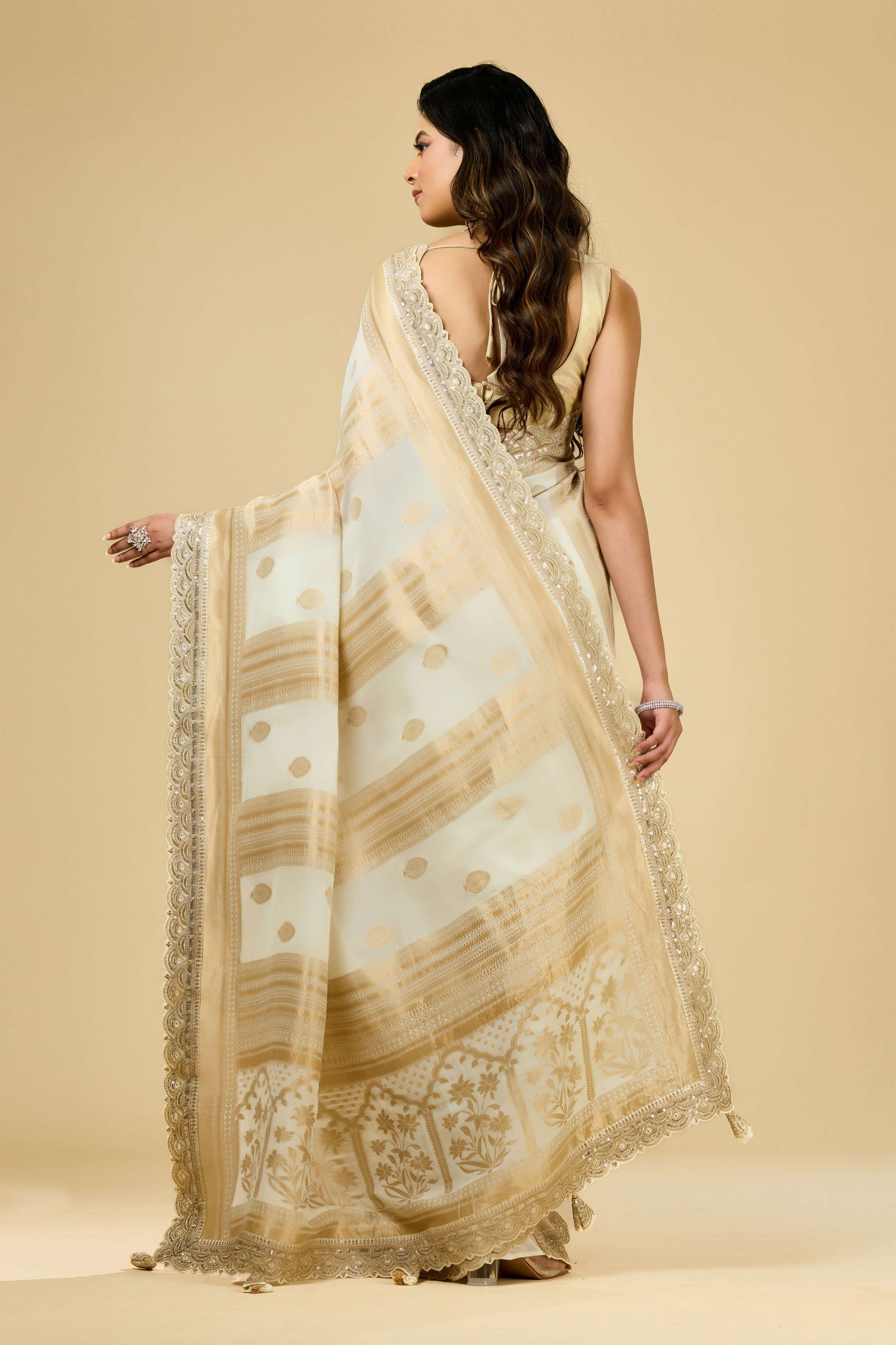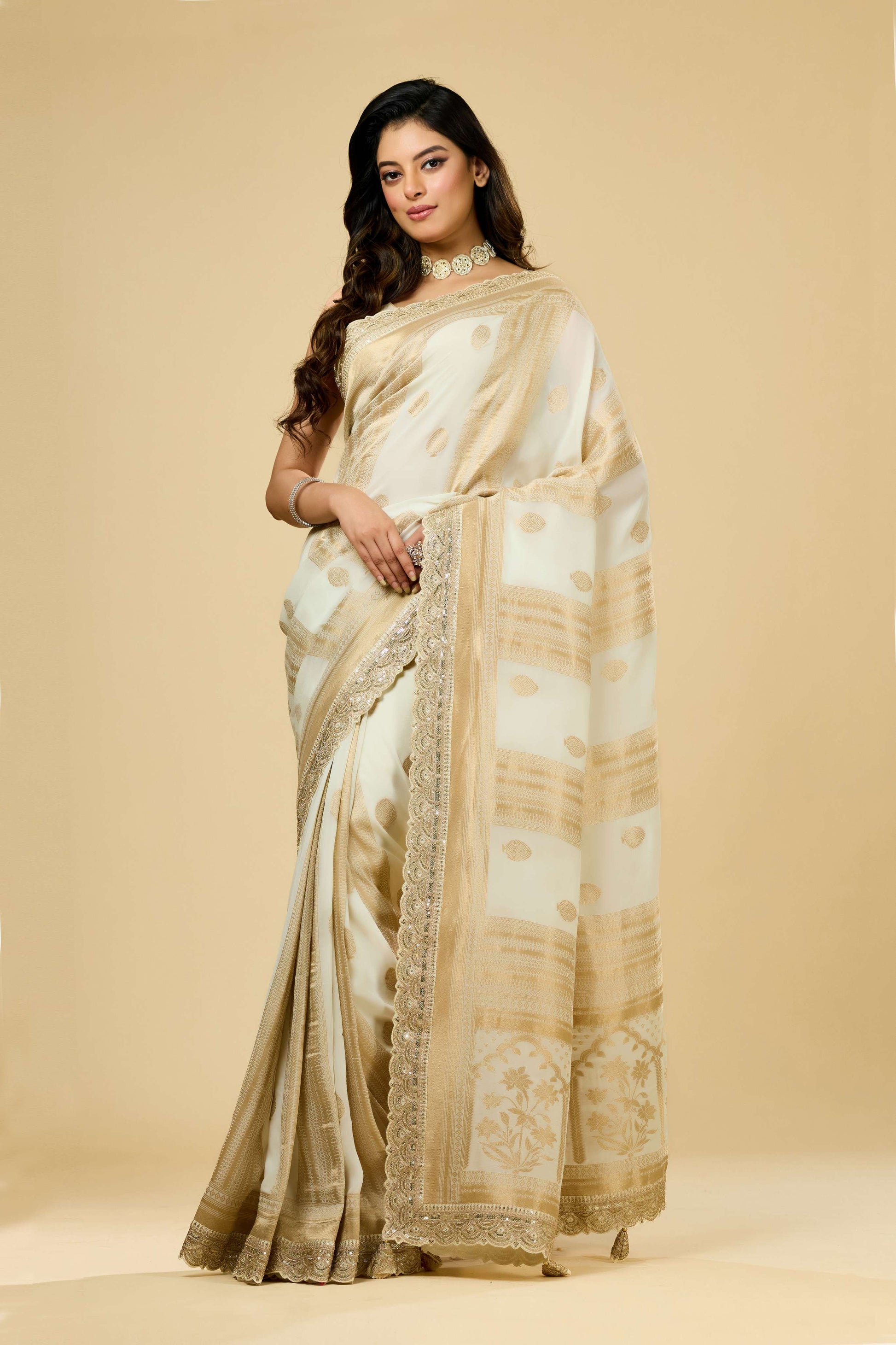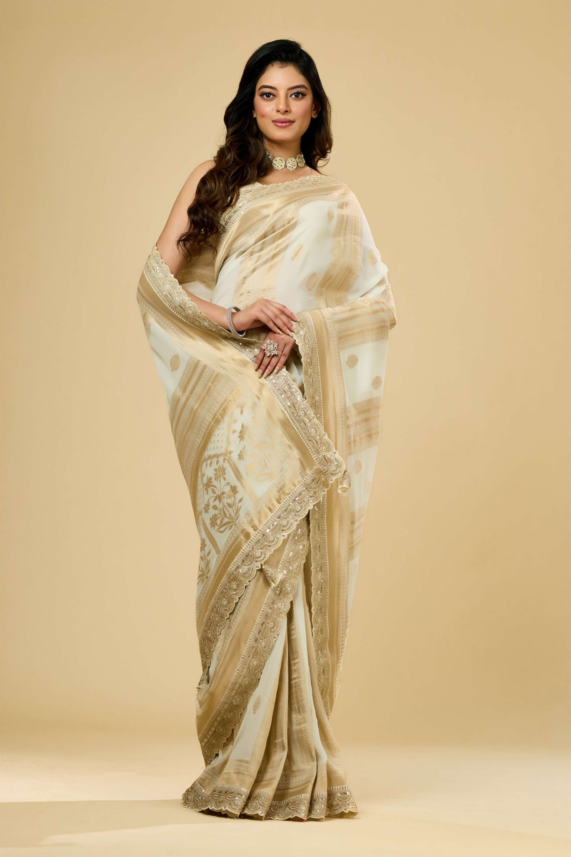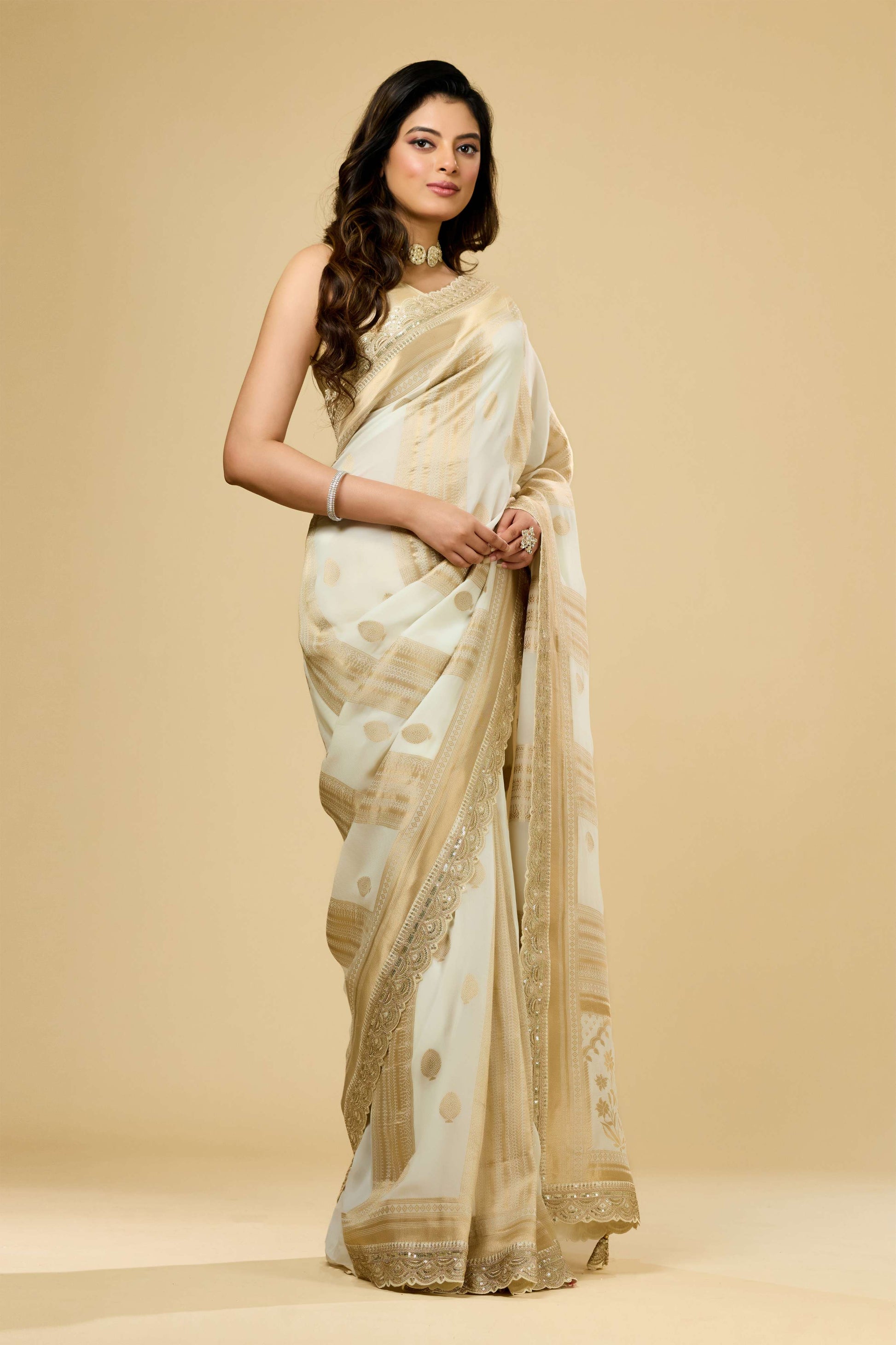 Cream Golden Zari weave Georgette Sarees 1011-10028