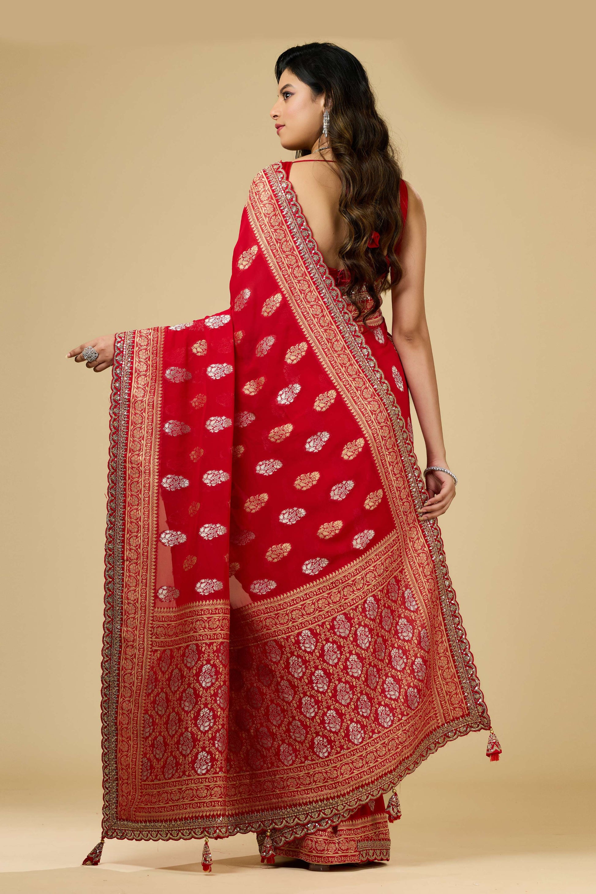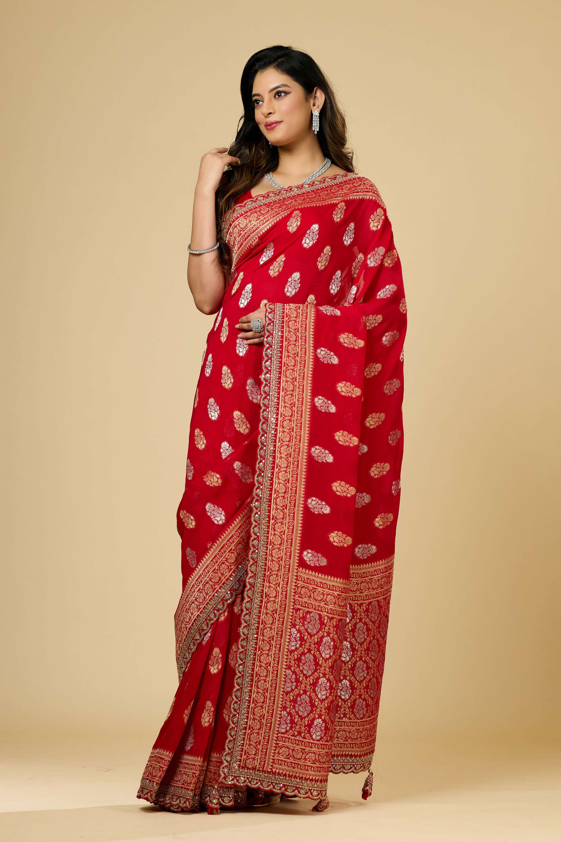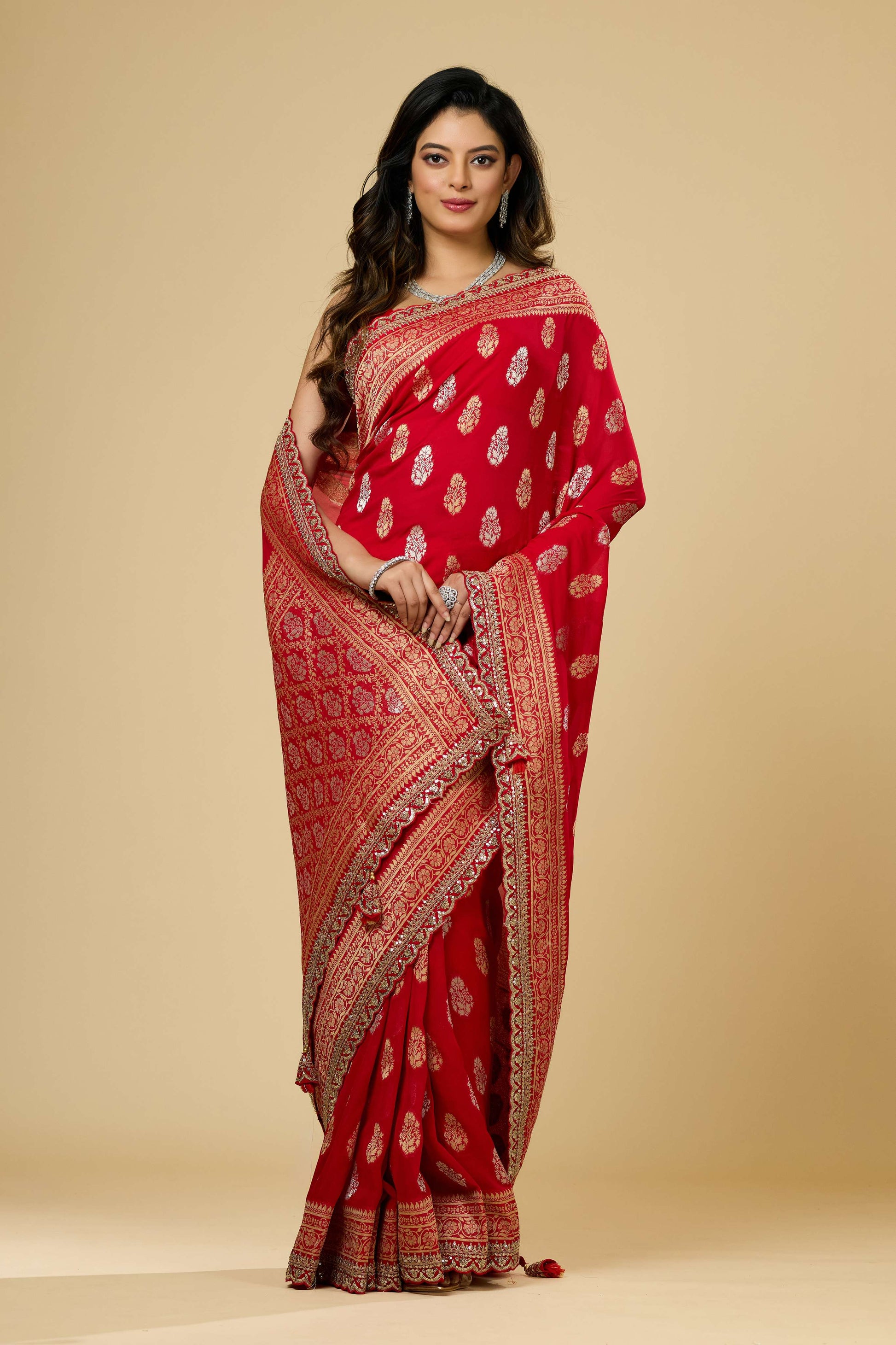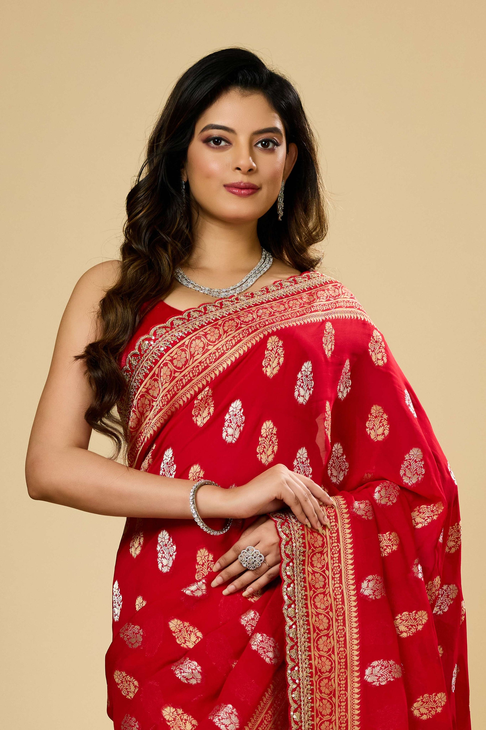 Red/Blue Golden Zari weave Khadi Georgette Sarees 1011-10030