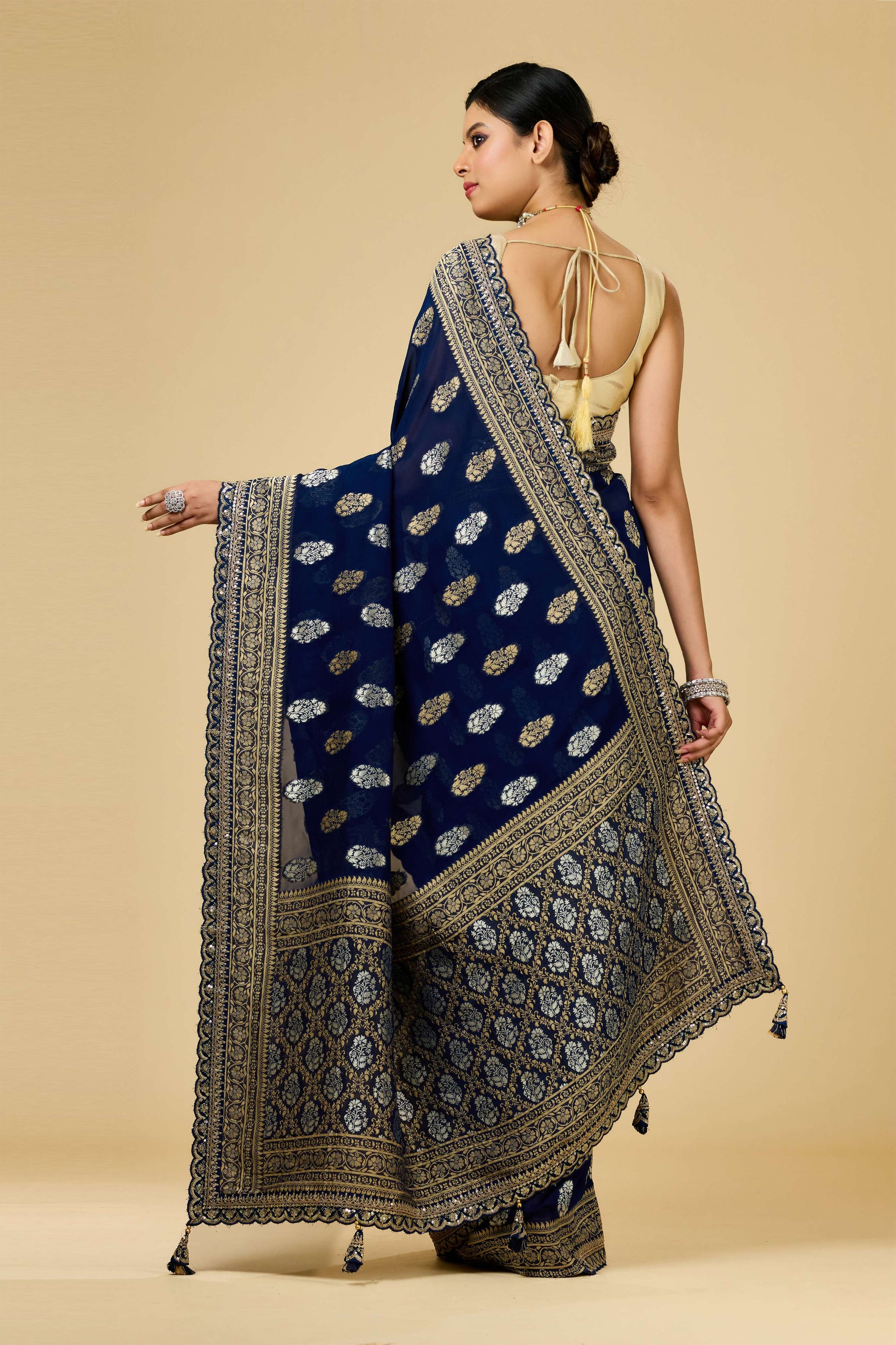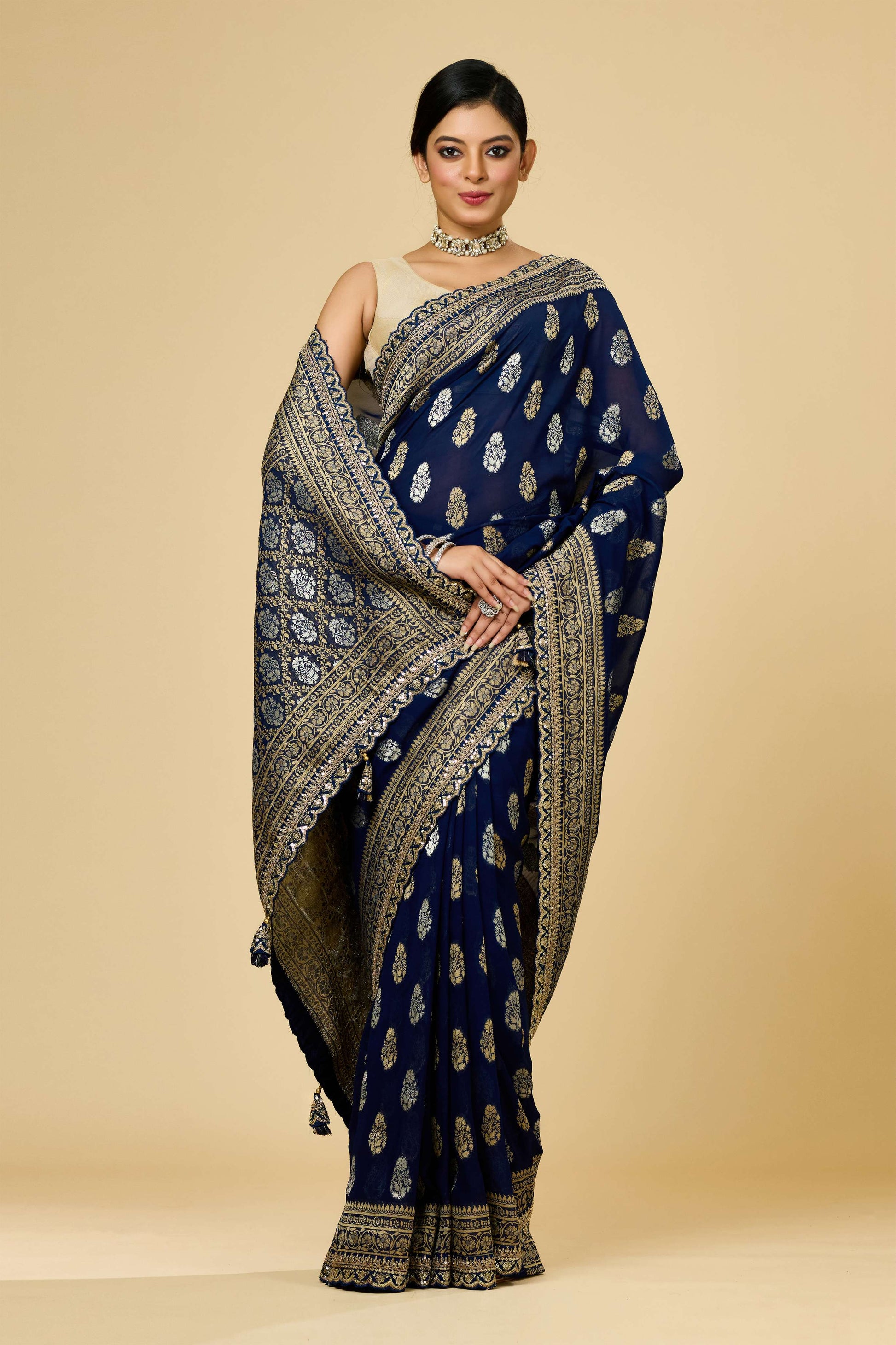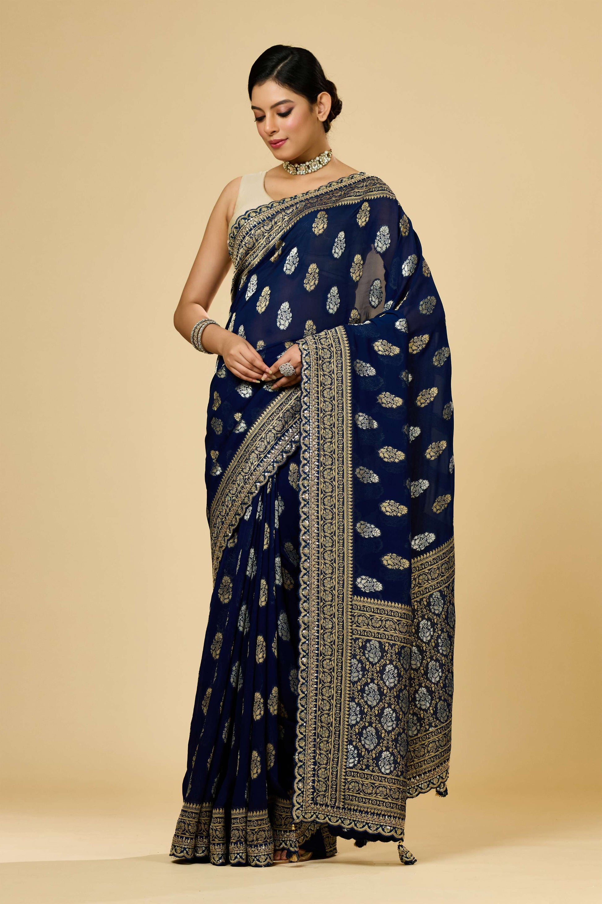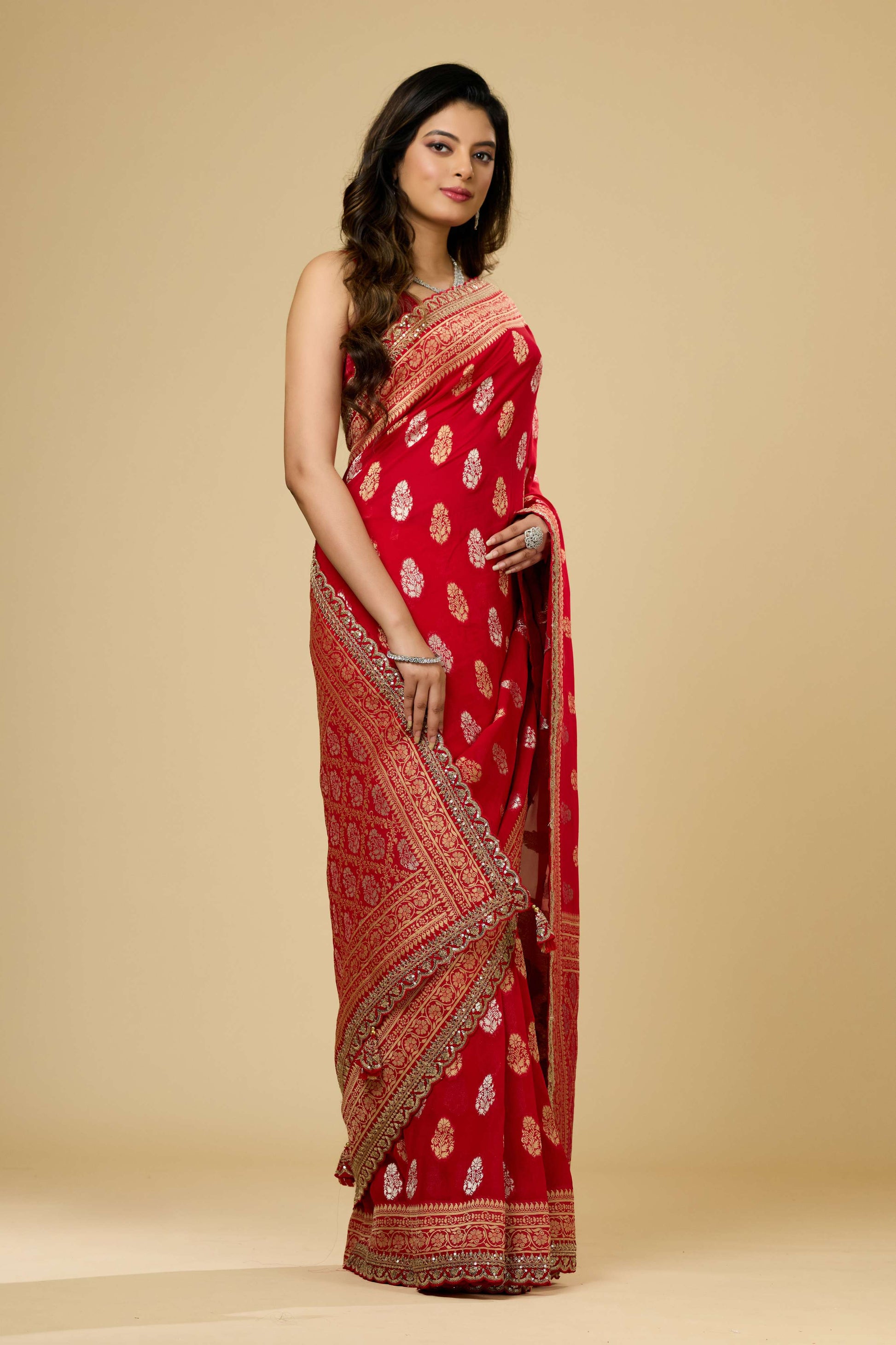 Red/Blue Golden Zari weave Khadi Georgette Sarees 1011-10030
