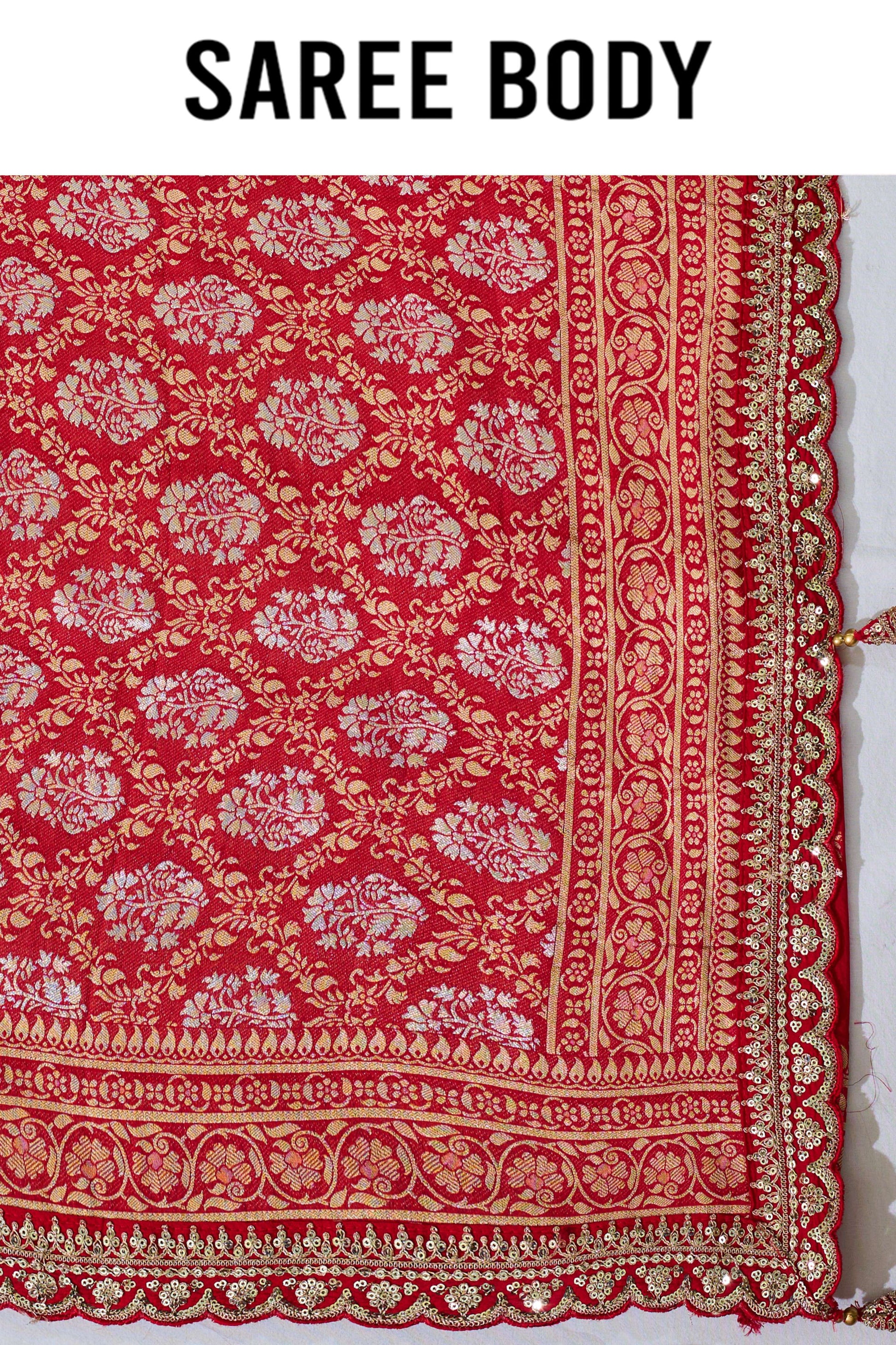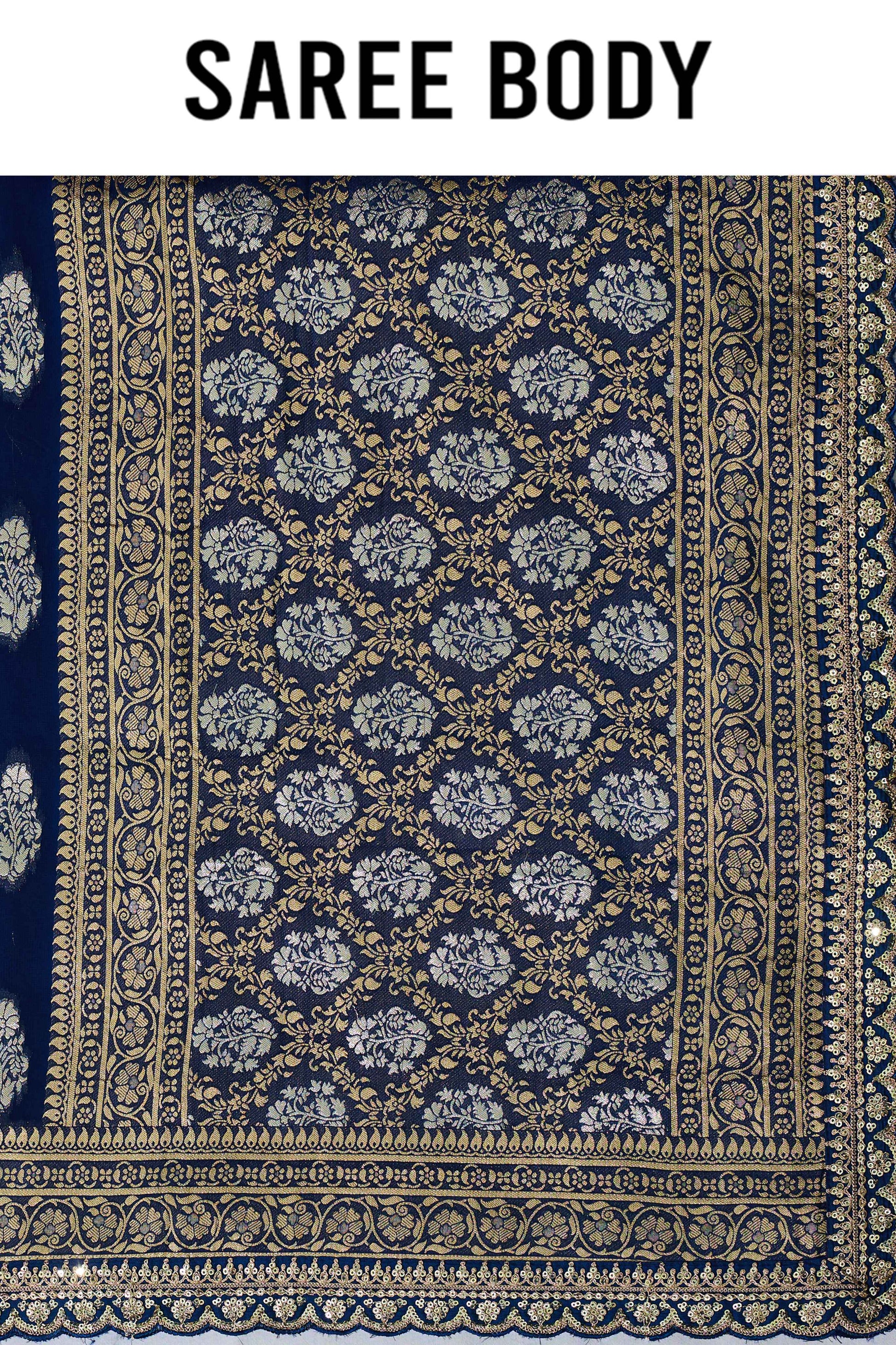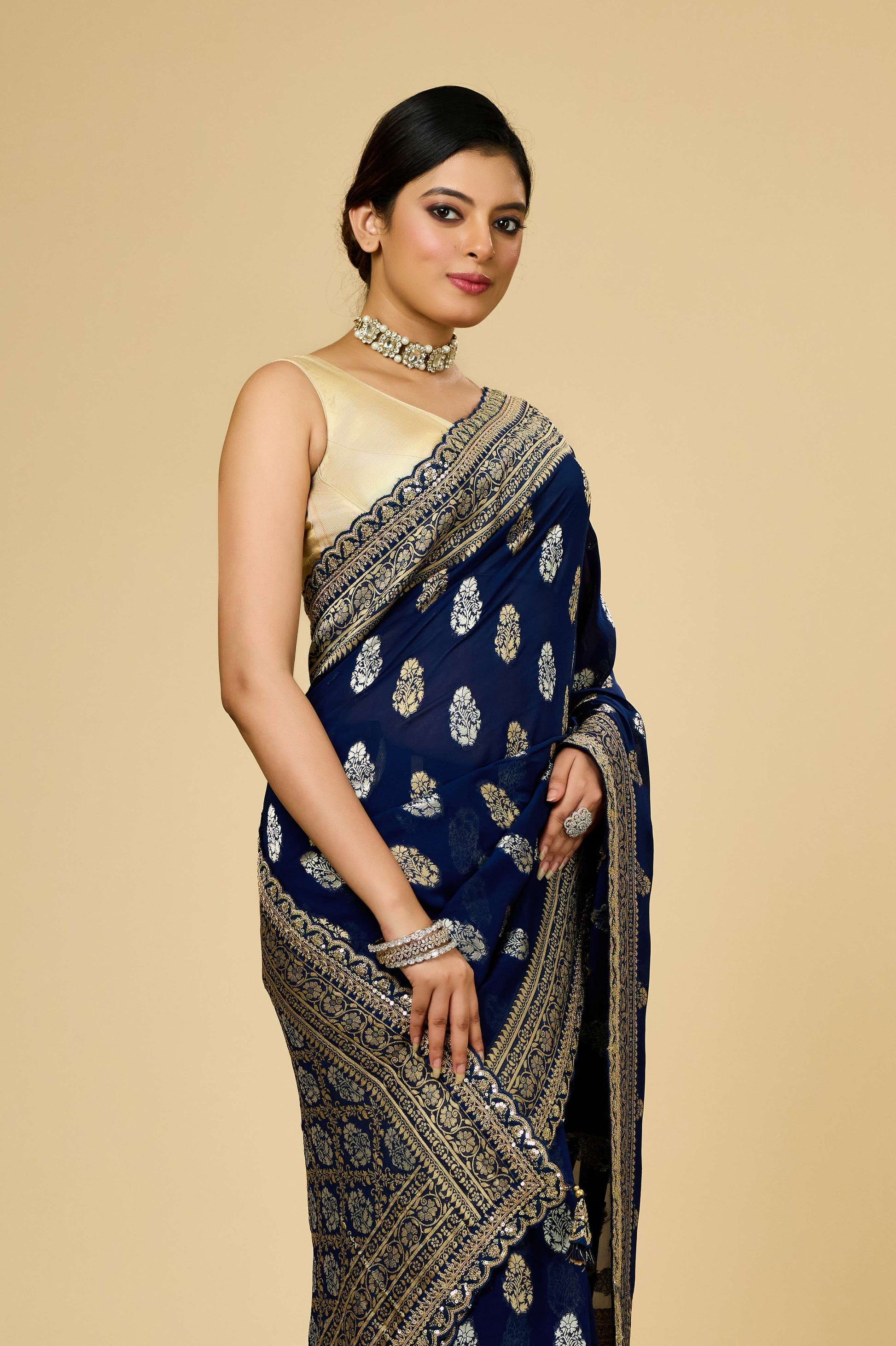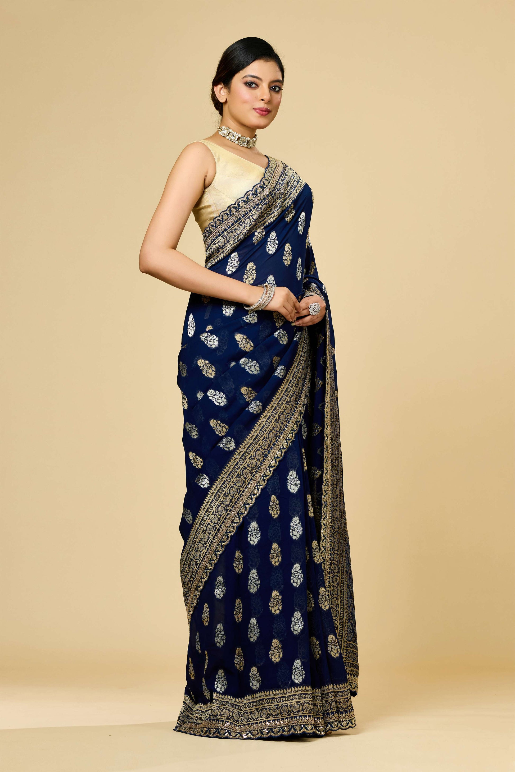 Red/Blue Golden Zari weave Khadi Georgette Sarees 1011-10030