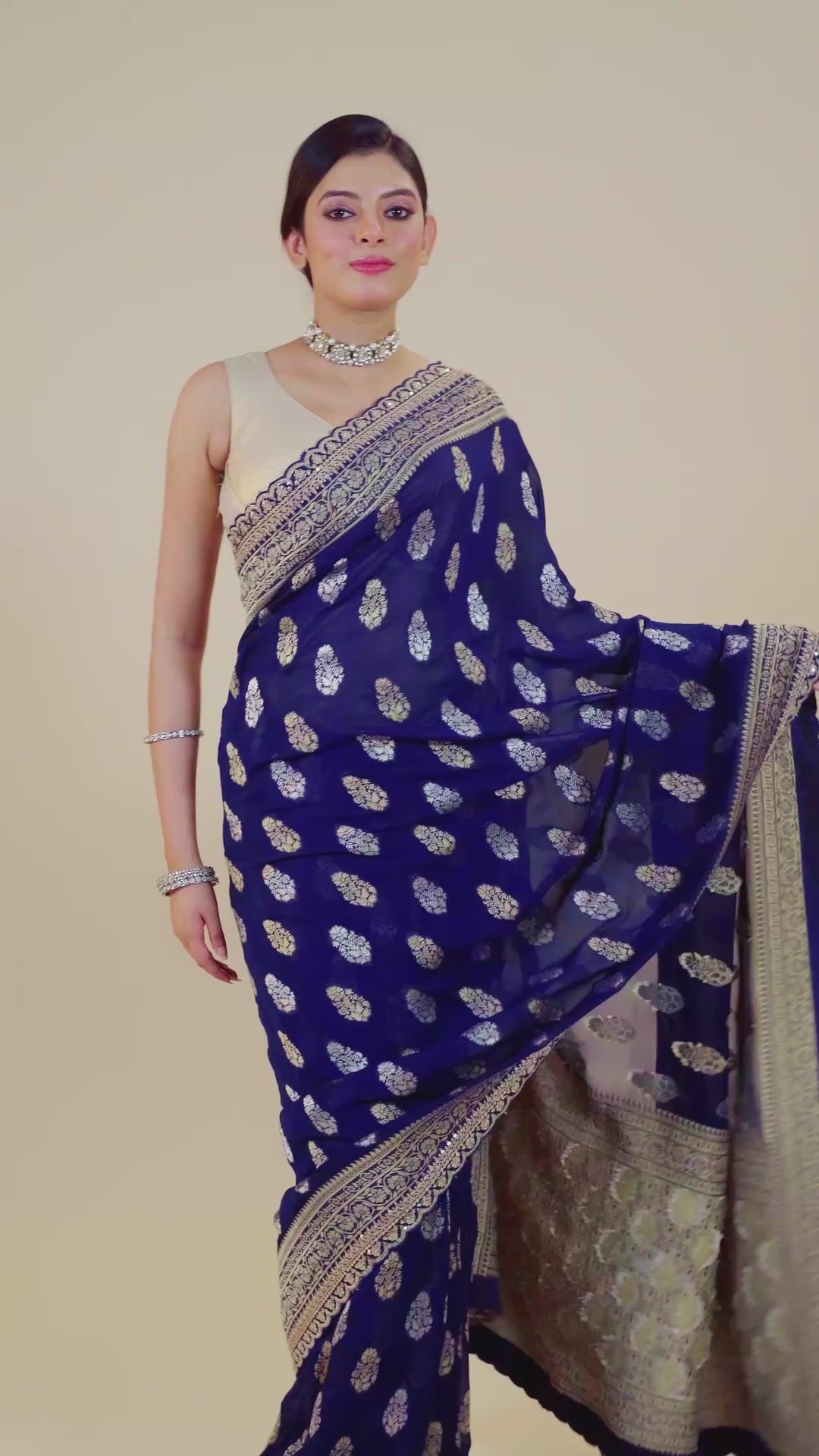 Experience the rich tradition of Indian textiles with the Red Golden Zari Weave Khadi Georgette Saree & Blue Golden Zari Weave Khadi Georgette Saree by Shreyshree. This saree combines the textured charm of khadi fabric with the fluidity of georgette, enhanced by intricate golden zari patterns that add a refined shimmer. The vibrant red color exudes confidence and festivity, making it an ideal choice for weddings and cultural events. Designed for both elegance and comfort, this saree offers a sophisticated drape that highlights craftsmanship and timeless style.