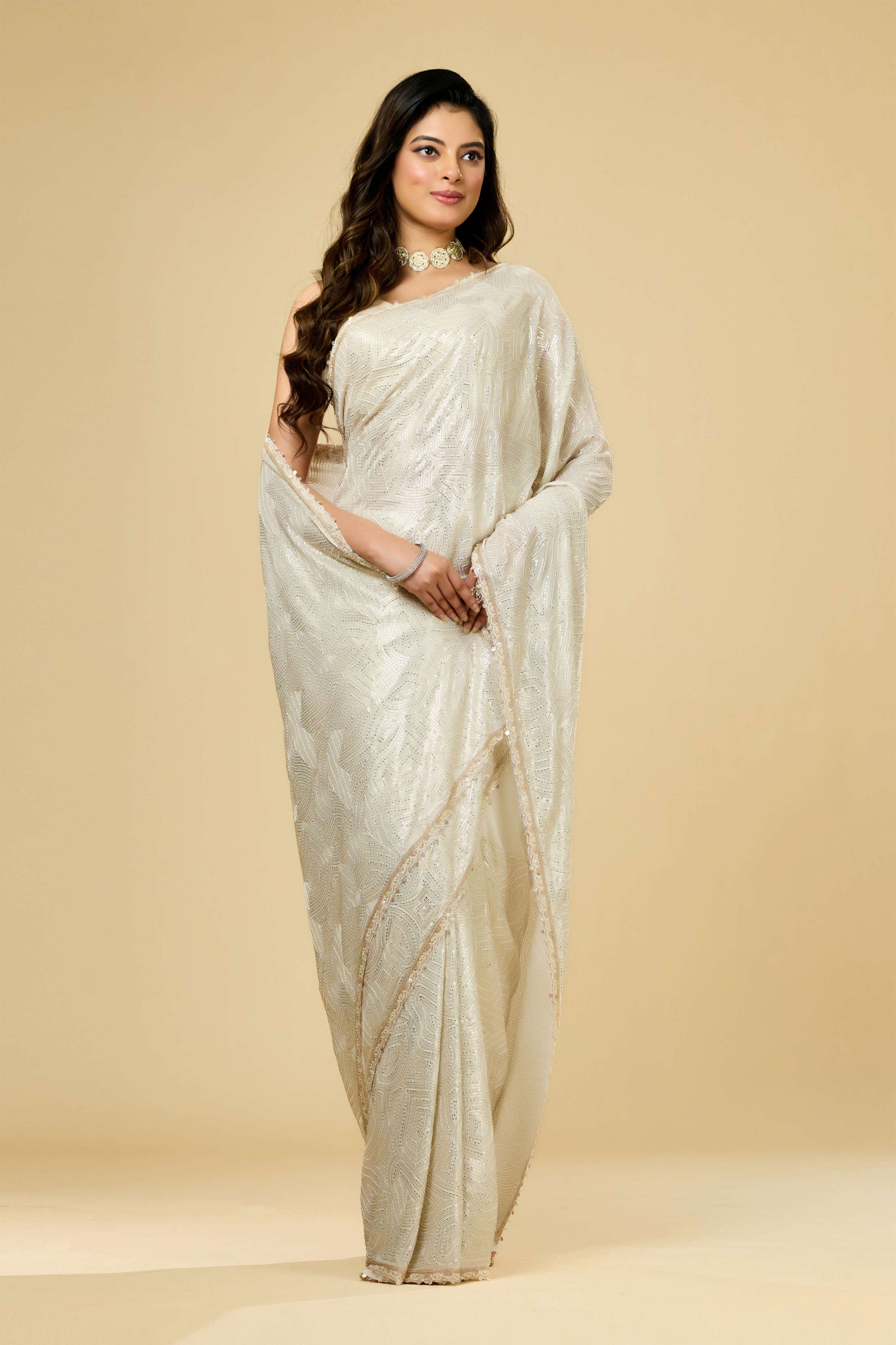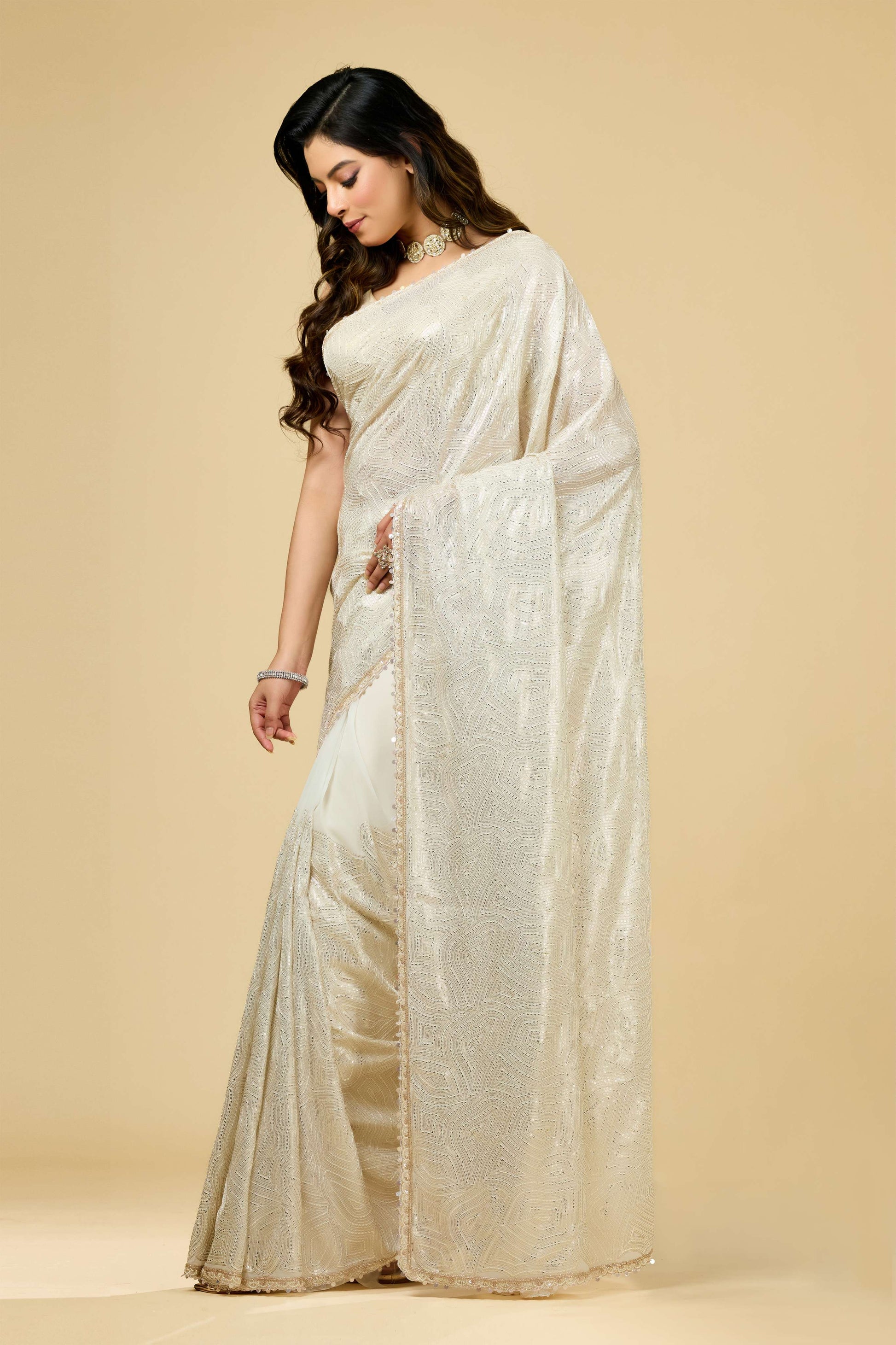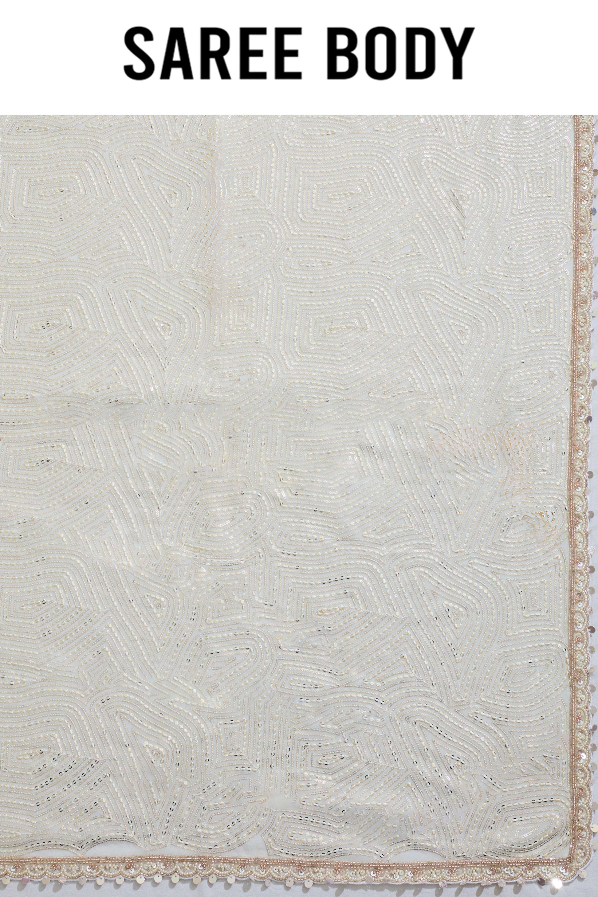 Cream Pearlwork Georgette Sarees 1011-10038