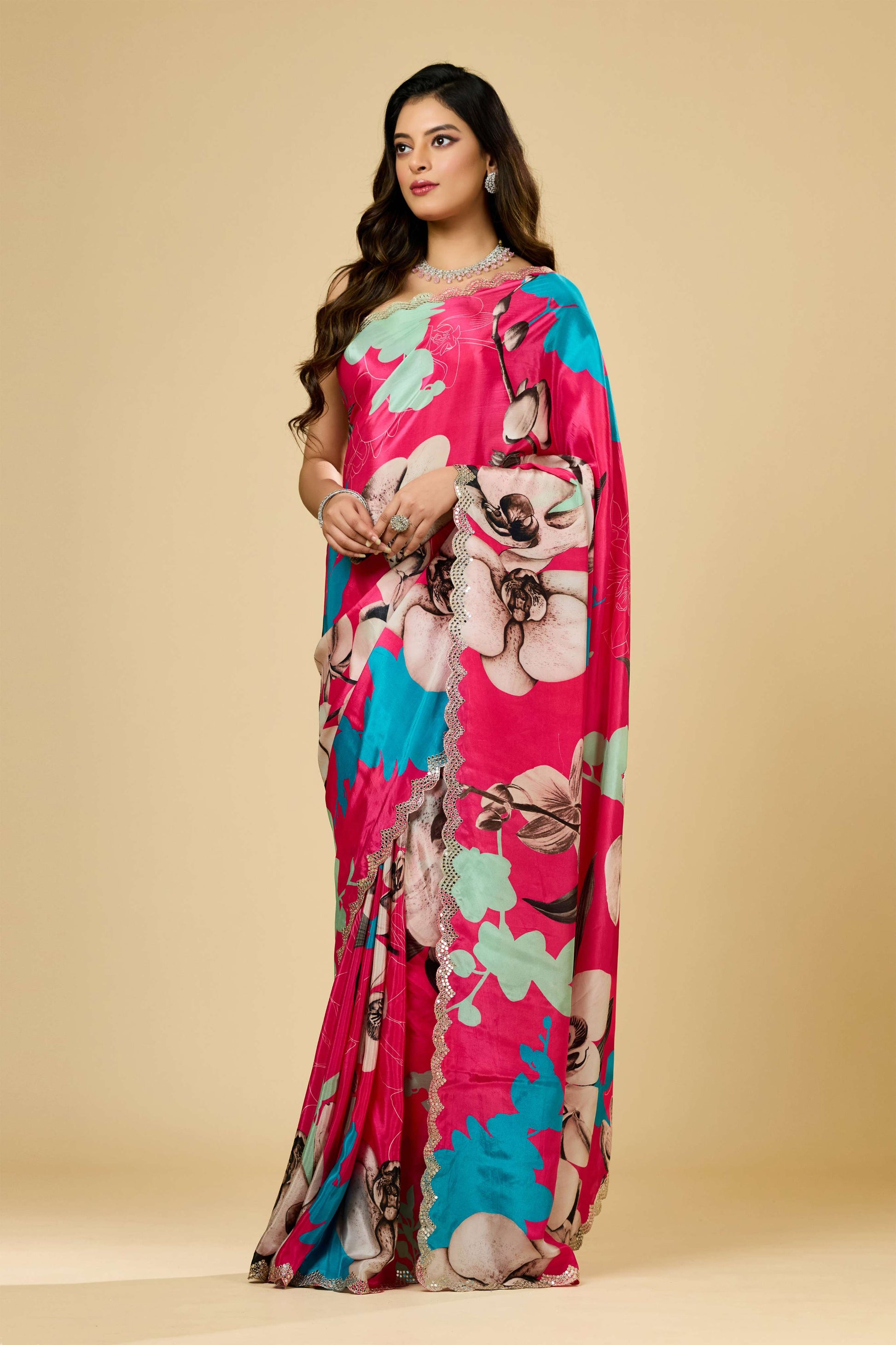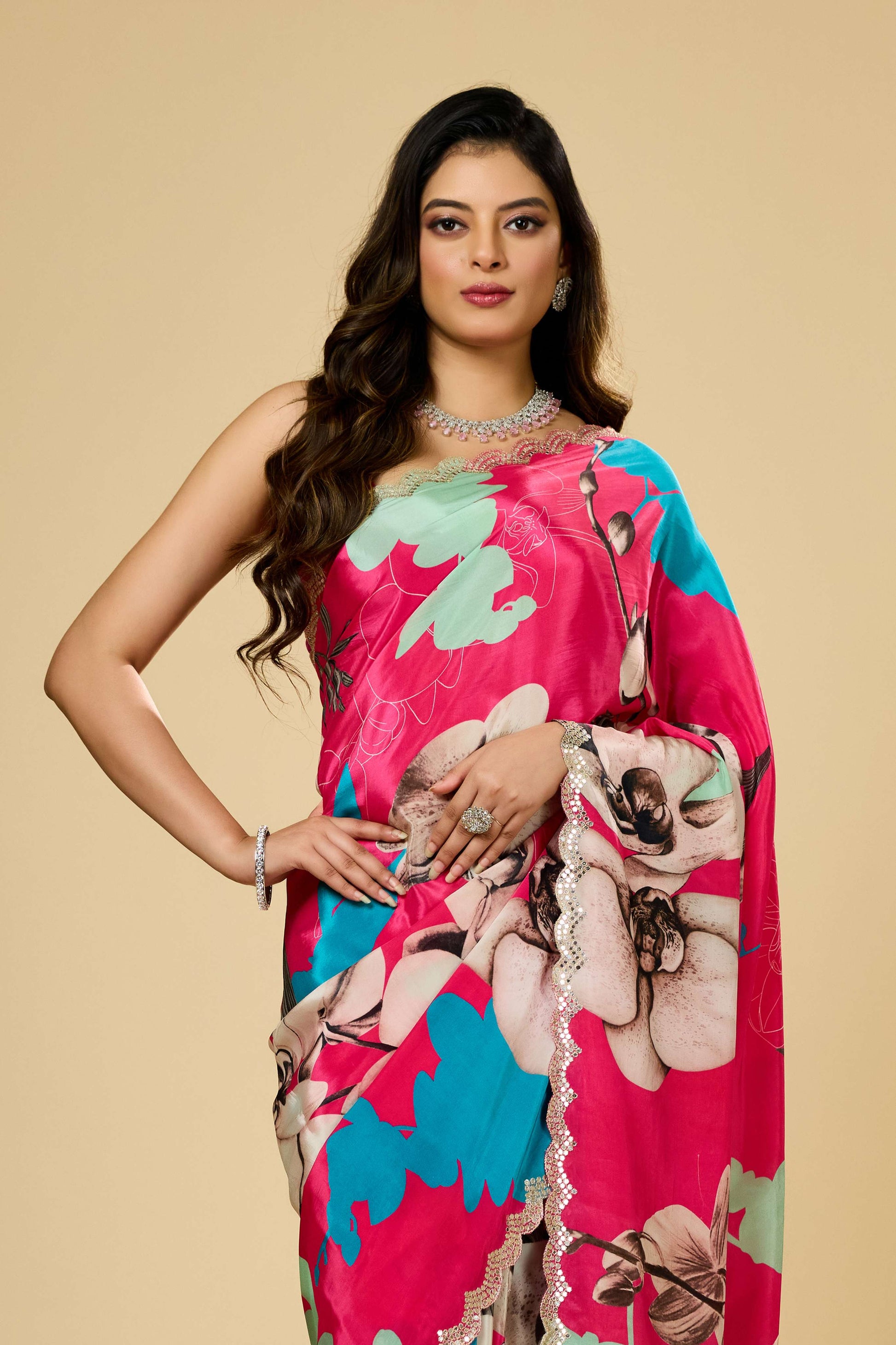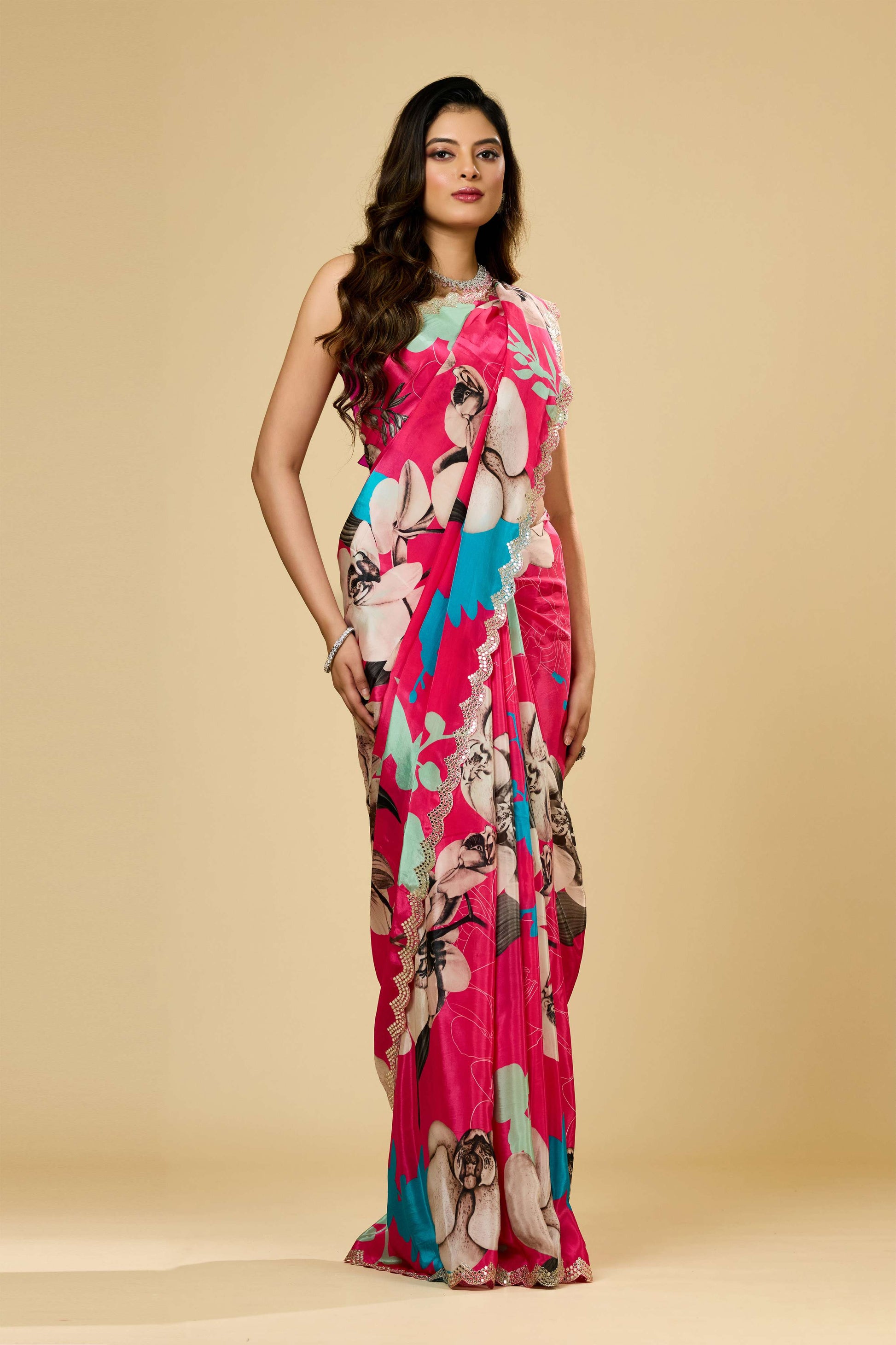 The Printed Kutch Work Semi Crepe Saree by Shreyshree beautifully merges traditional Kutch embroidery with modern semi crepe fabric. Featuring intricate printed patterns complemented by authentic Kutch craftsmanship, this saree offers a unique texture and vibrant appeal. The semi crepe material ensures a smooth, elegant drape while maintaining comfort, making it ideal for festive occasions and cultural gatherings. This piece exemplifies artisanal skill and contemporary design, perfect for those who appreciate heritage with a refined touch.